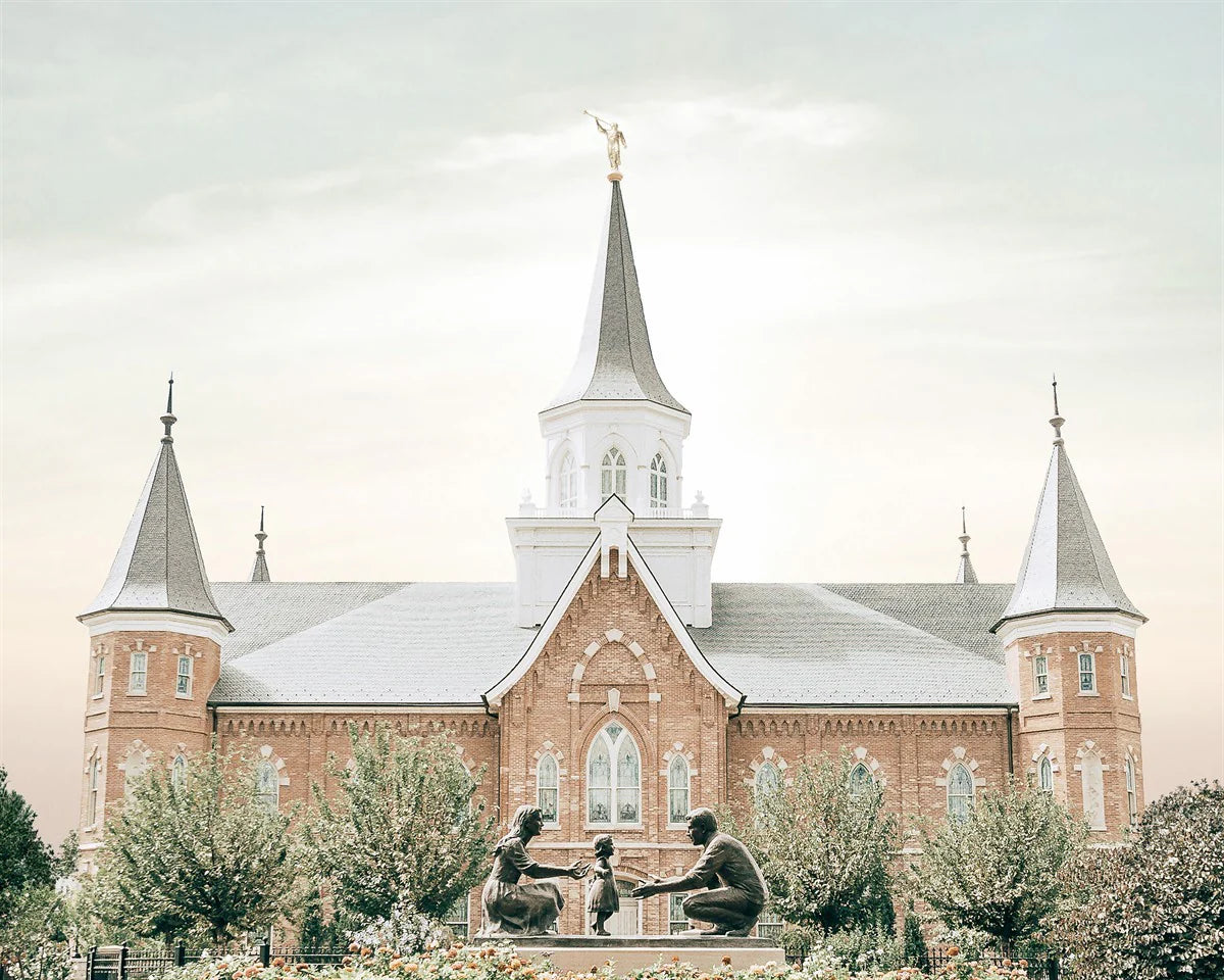 Each artistic rendition of the temple seeks to provide solitude by removing distractions while honoring its original design. Peace is found in the choice of a consistent, gentle color palette that embraces a natural, textured look and the timeless character that all great art should possess. The luminance and radiance in each image aim to infuse a heavenly ambiance into your living space.
