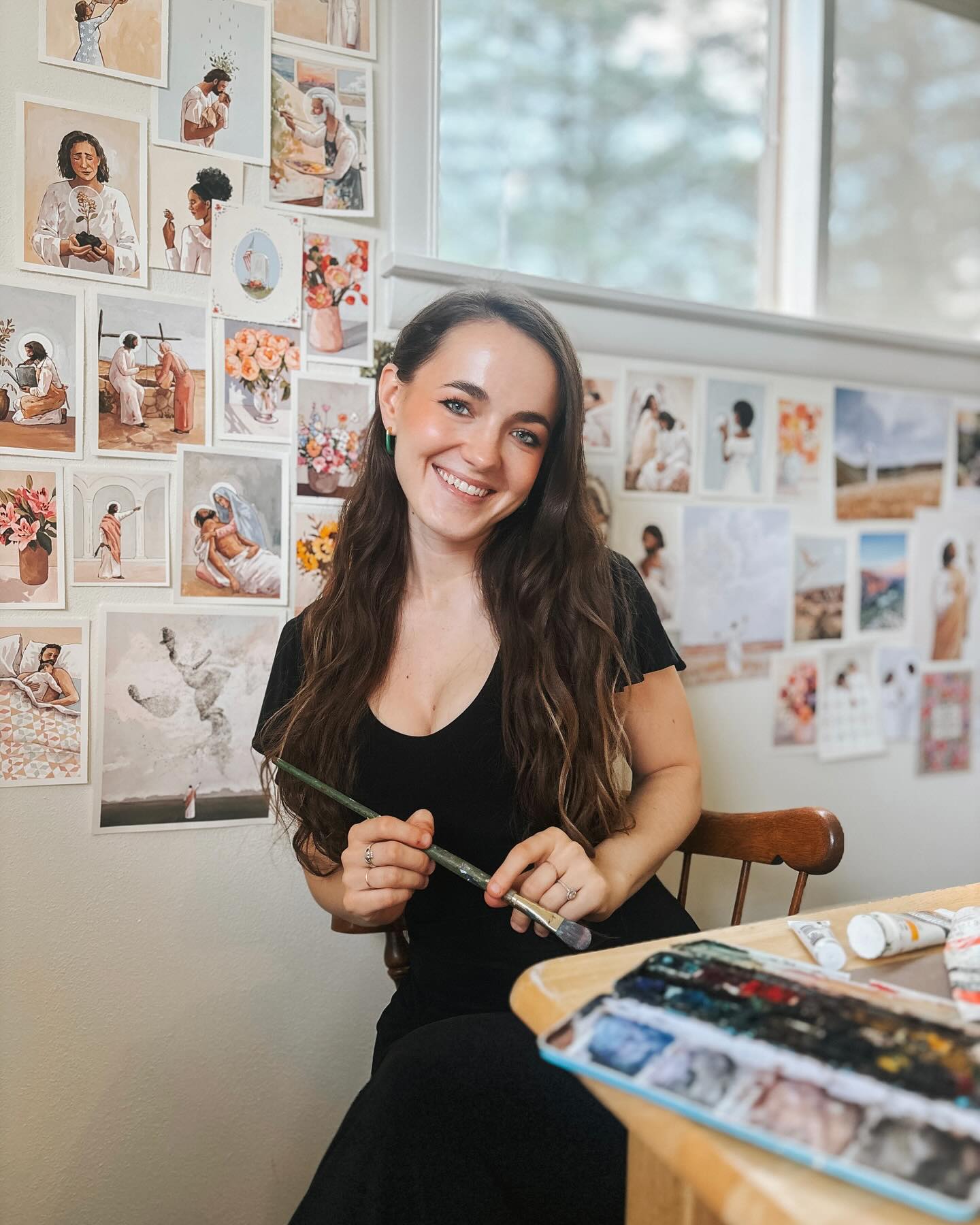 Paige Payne is an artist who discovered early in life that creativity could become a sacred refuge. After experiencing childhood trauma that led to OCD, anxiety, and depression, painting became the way she processed her emotions and found stillness. Over time, Paige came to recognize the profound connection between her mental health and her relationship with Heavenly Father and Jesus Christ. As she learned to turn to the Savior through scripture, prayer, the temple, and her God-given artistic gifts, her artwork transformed into a personal testimony of Christ’s healing power.