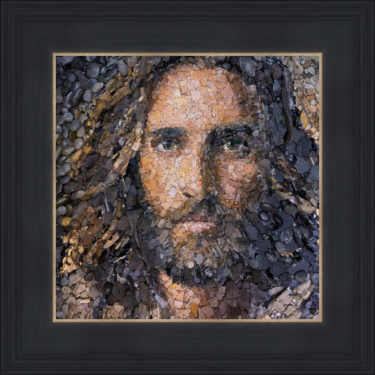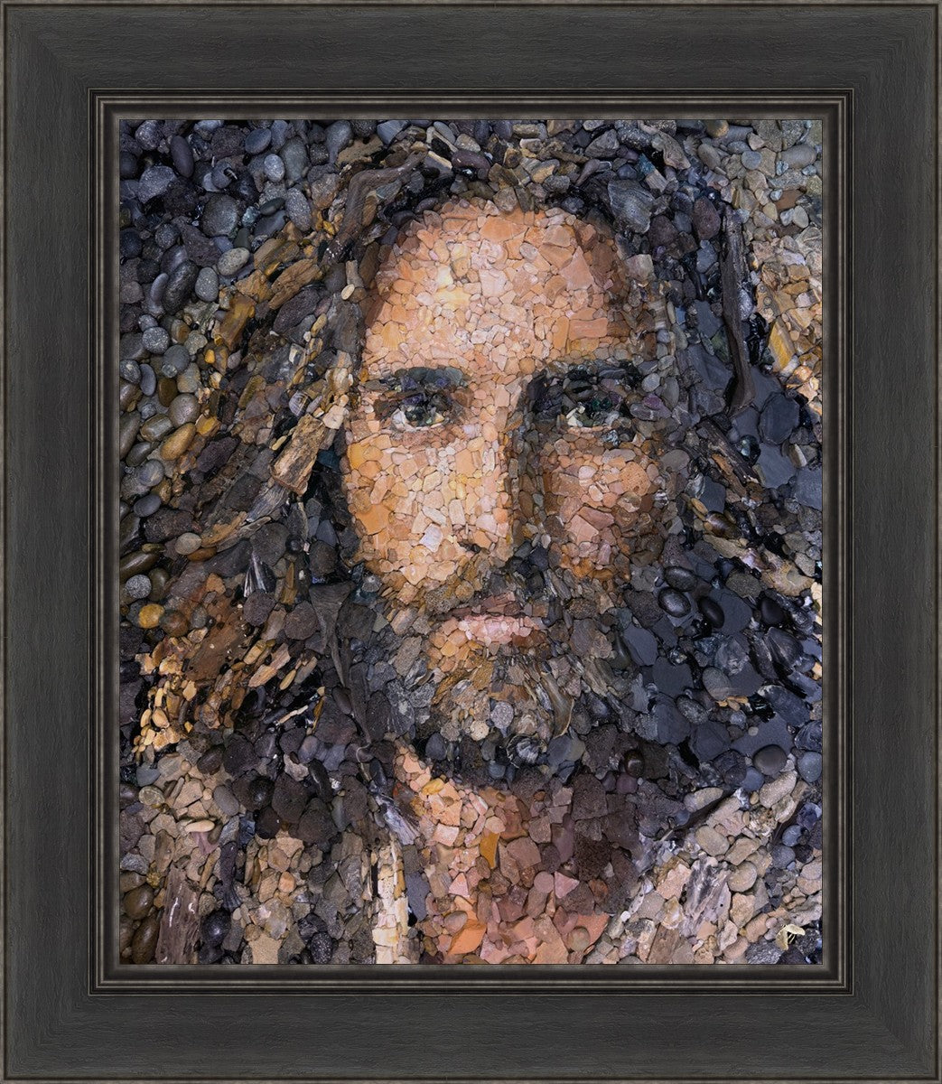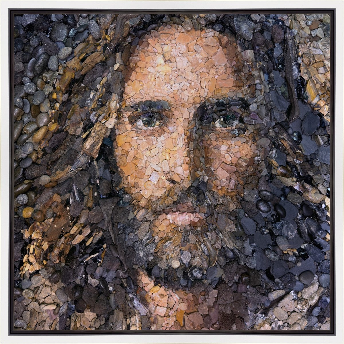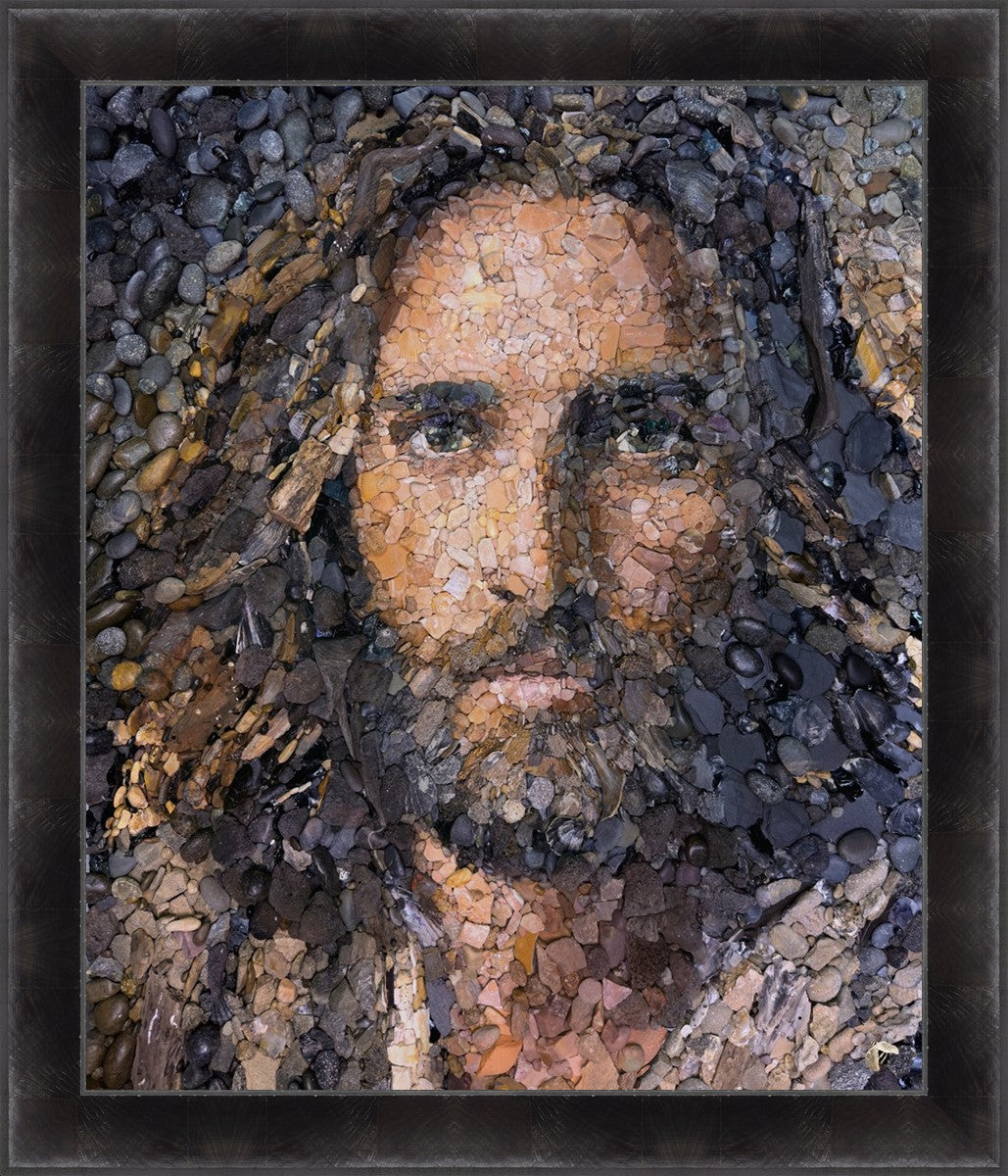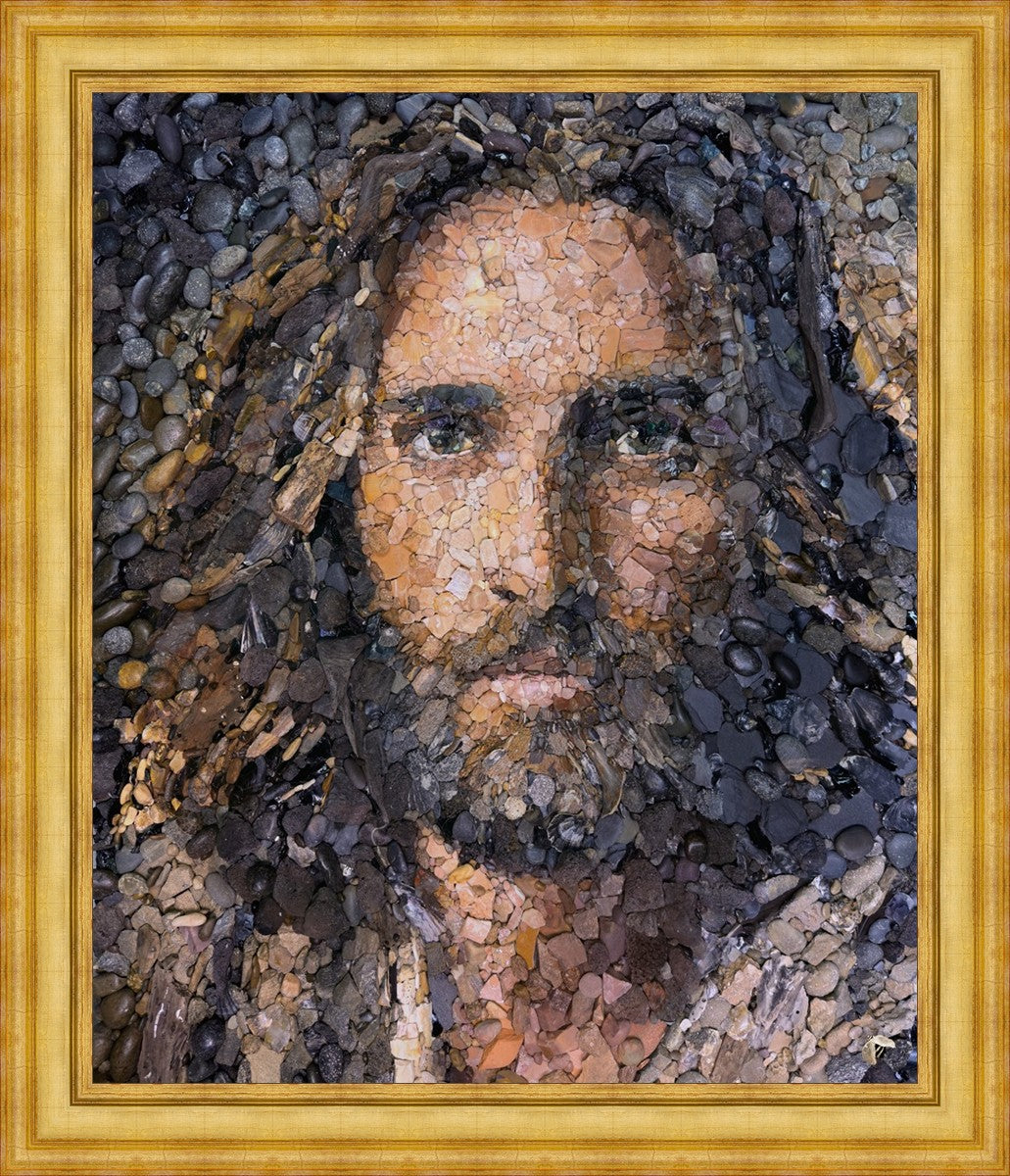 "A Sure Foundation" by Shelby Stroud is a remarkable portrait of Jesus created from a collage of stones, wood, and other earth elements, symbolizing strength and steadfastness. This unique artwork by Shelby Stroud is perfect for Christian homes and spaces, offering a powerful visual representation of faith and resilience.