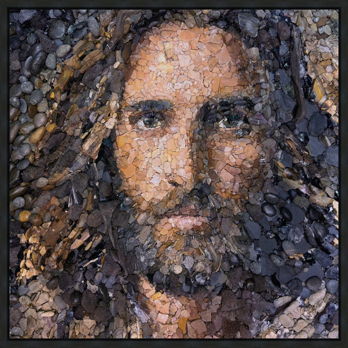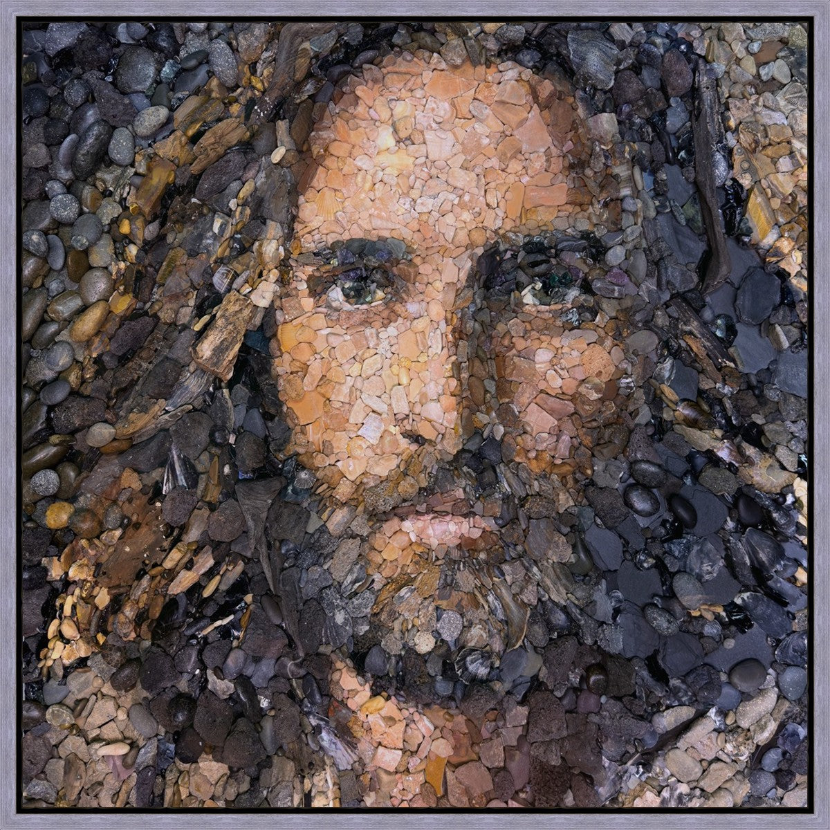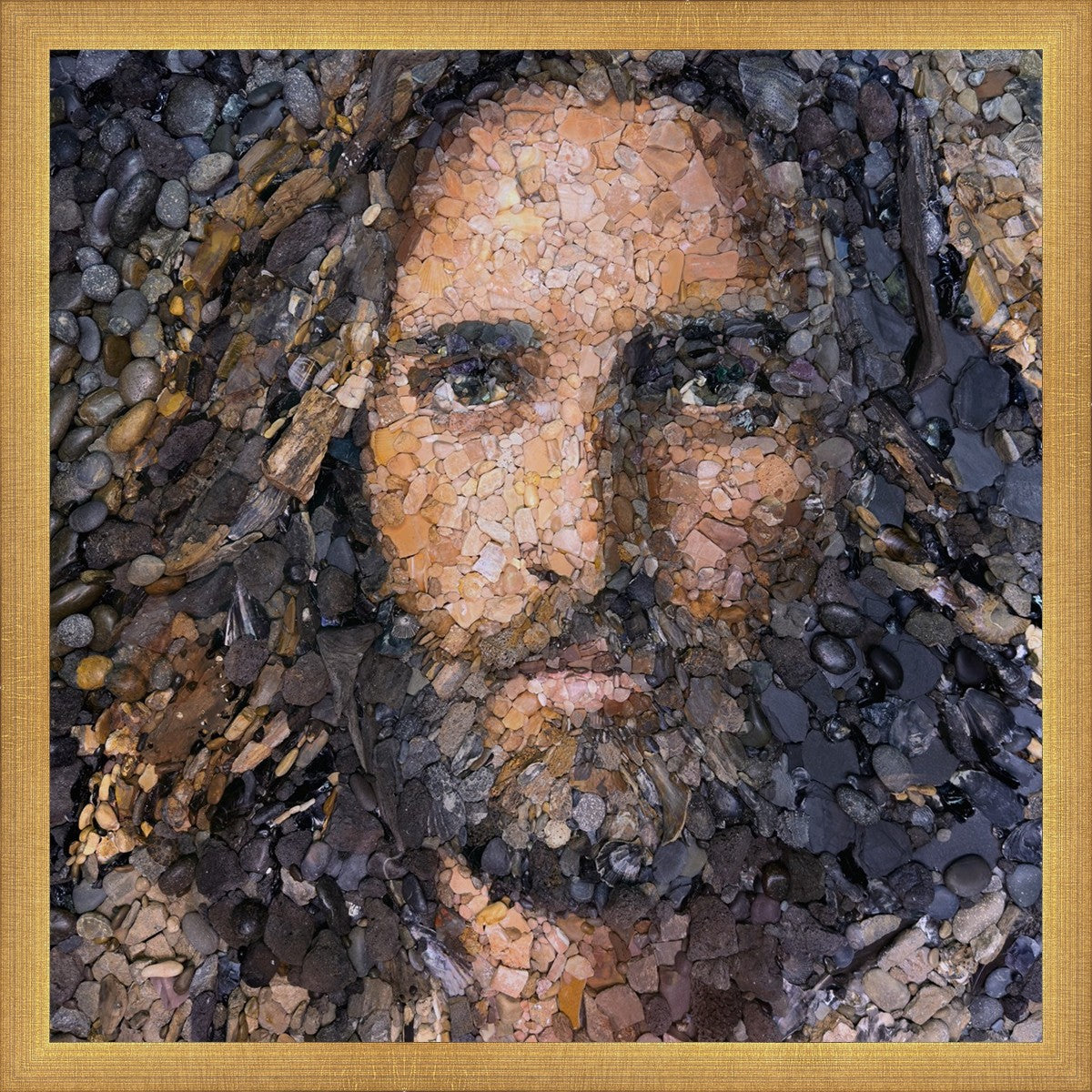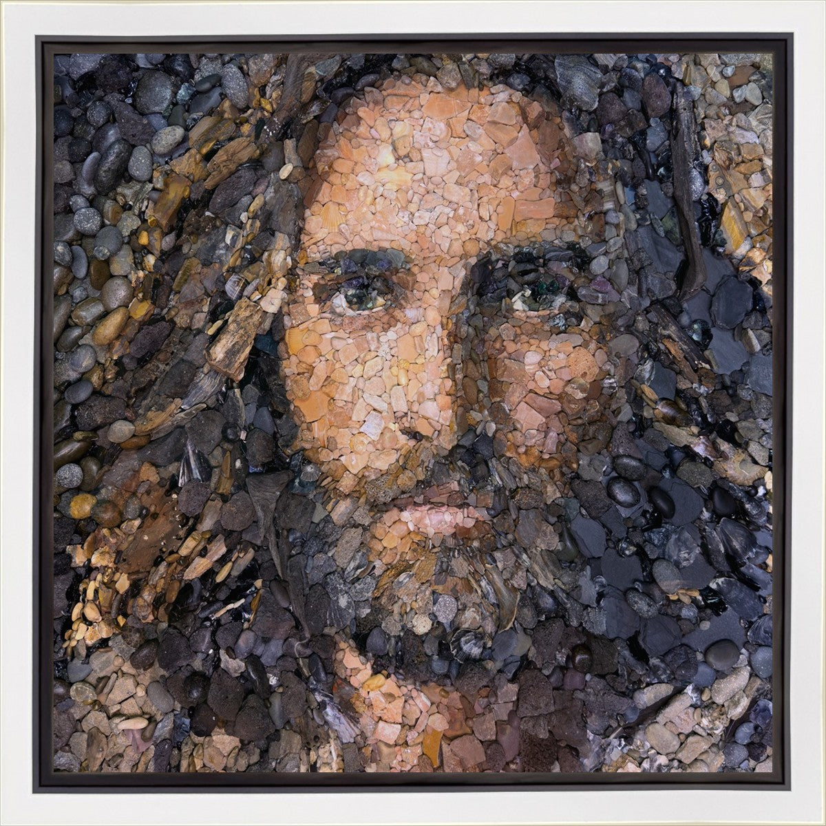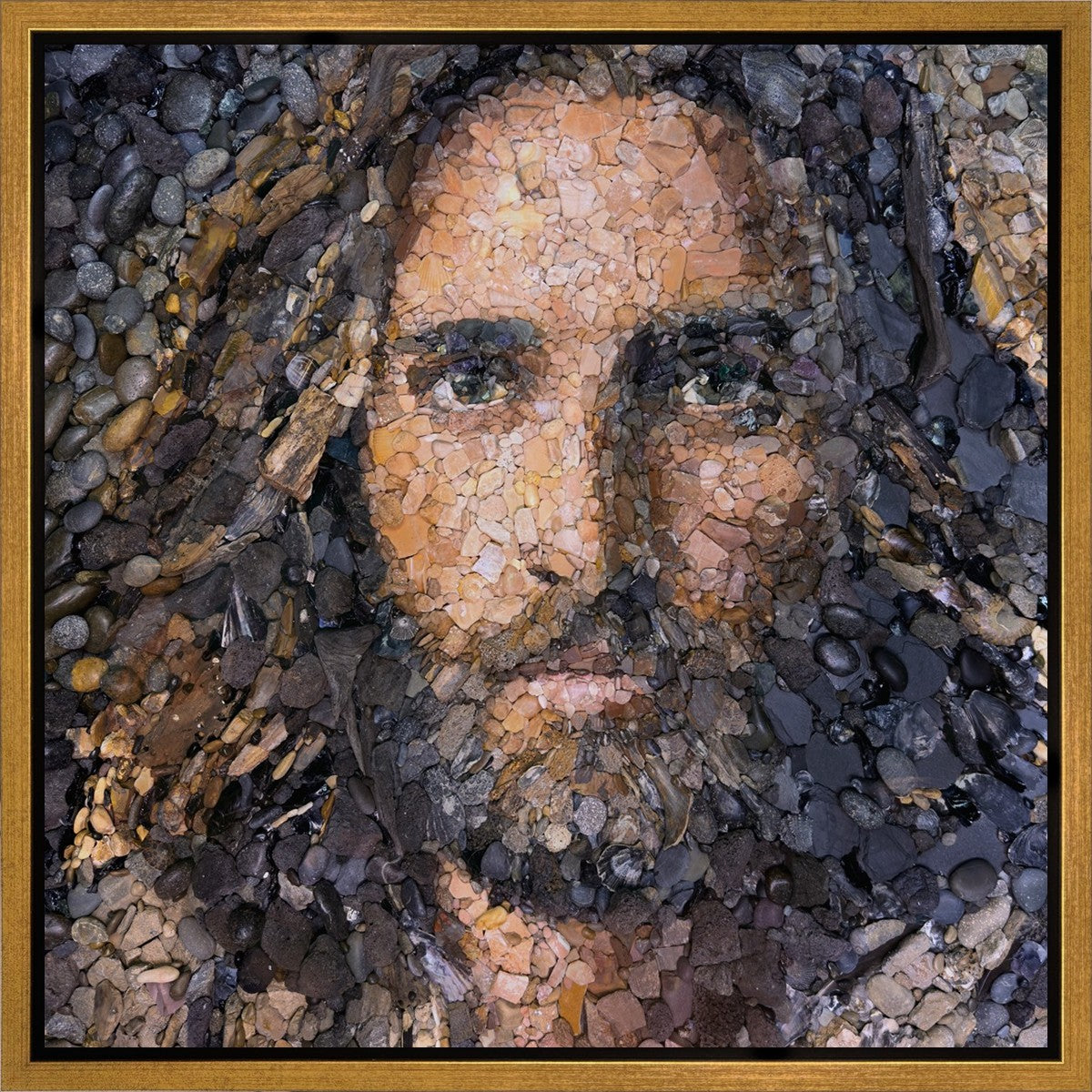 "A Sure Foundation" by Shelby Stroud is a remarkable portrait of Jesus created from a collage of stones, wood, and other earth elements, symbolizing strength and steadfastness. This unique artwork by Shelby Stroud is perfect for Christian homes and spaces, offering a powerful visual representation of faith and resilience.