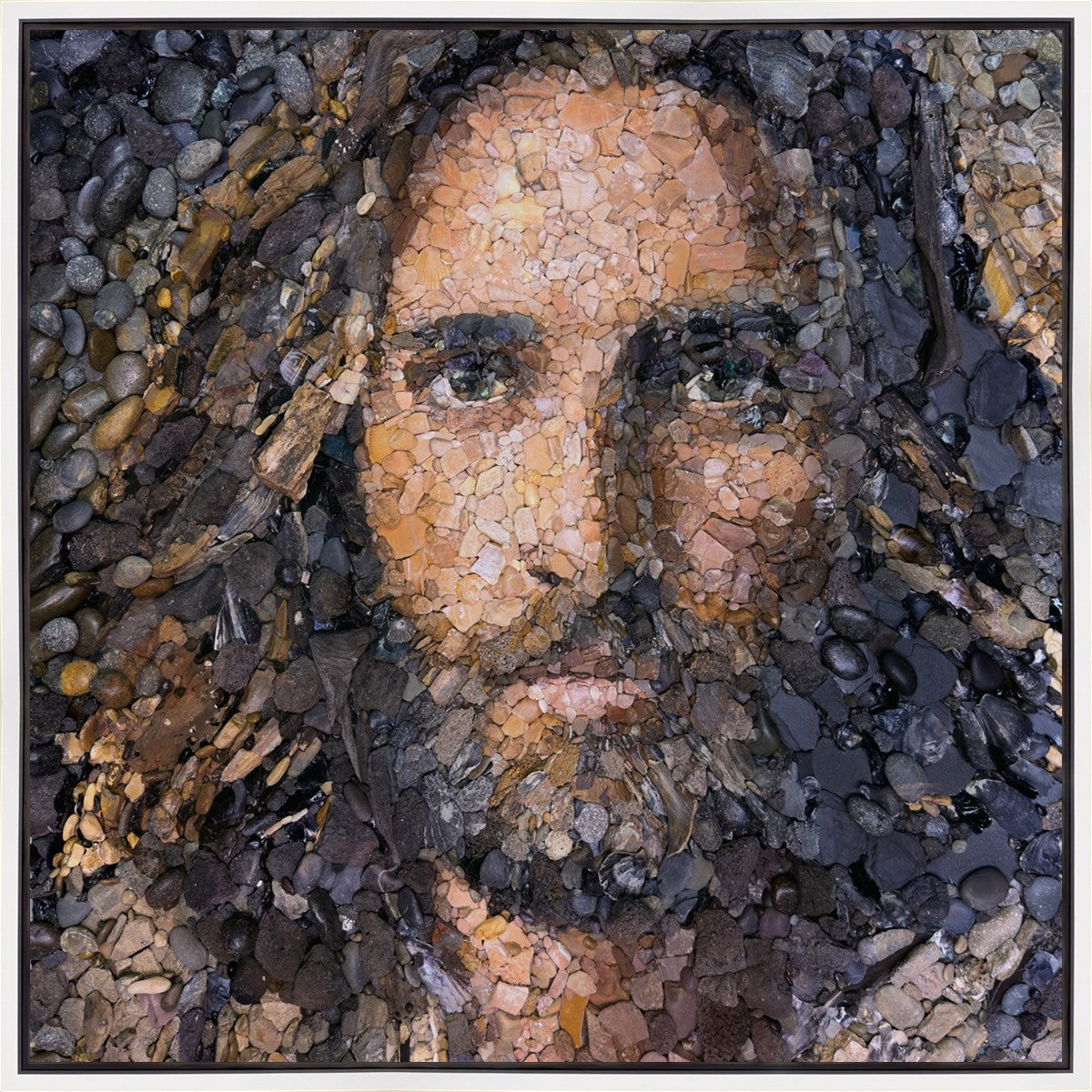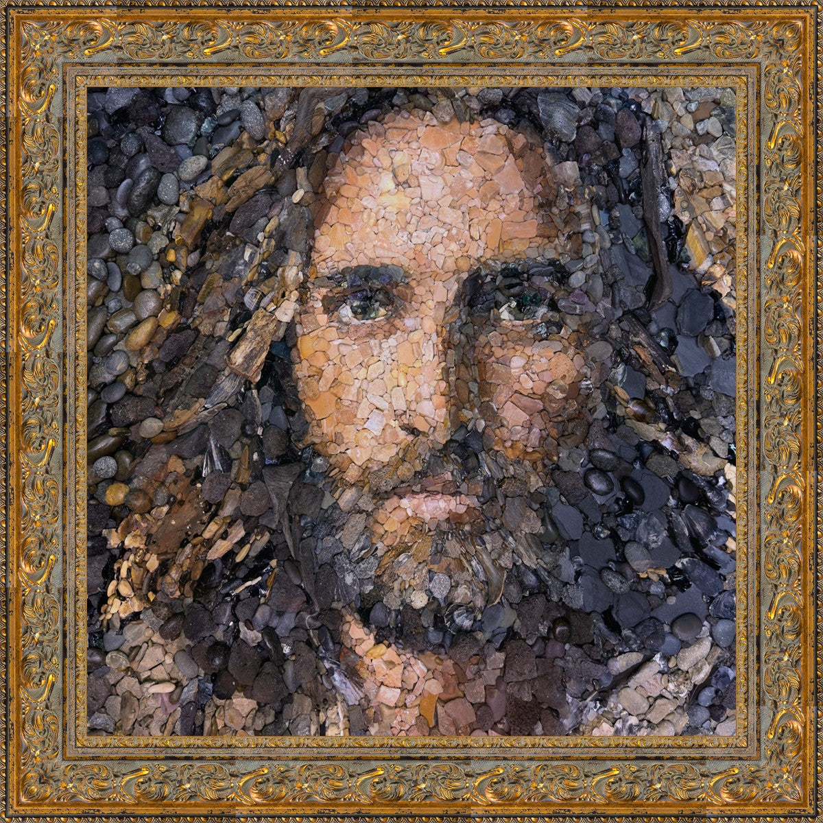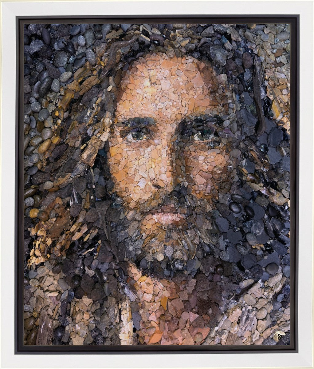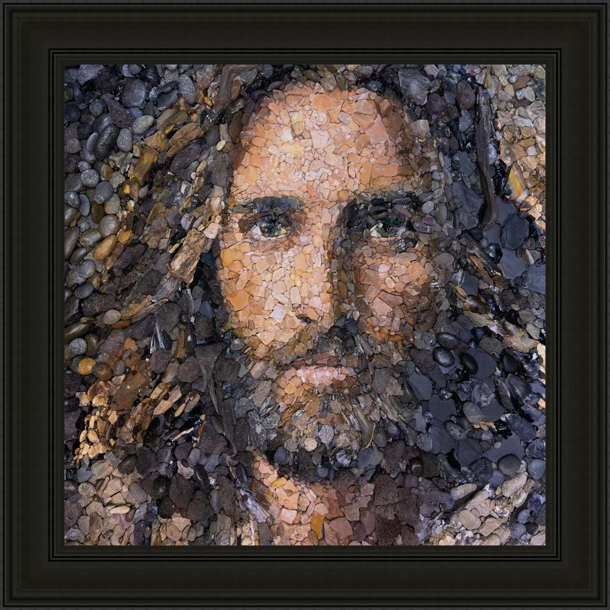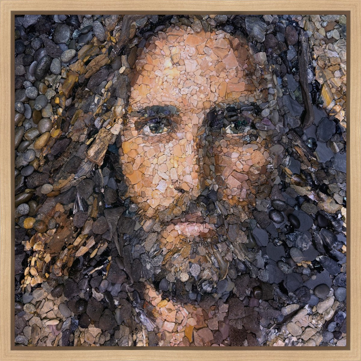 "A Sure Foundation" by Shelby Stroud is a remarkable portrait of Jesus created from a collage of stones, wood, and other earth elements, symbolizing strength and steadfastness. This unique artwork by Shelby Stroud is perfect for Christian homes and spaces, offering a powerful visual representation of faith and resilience.