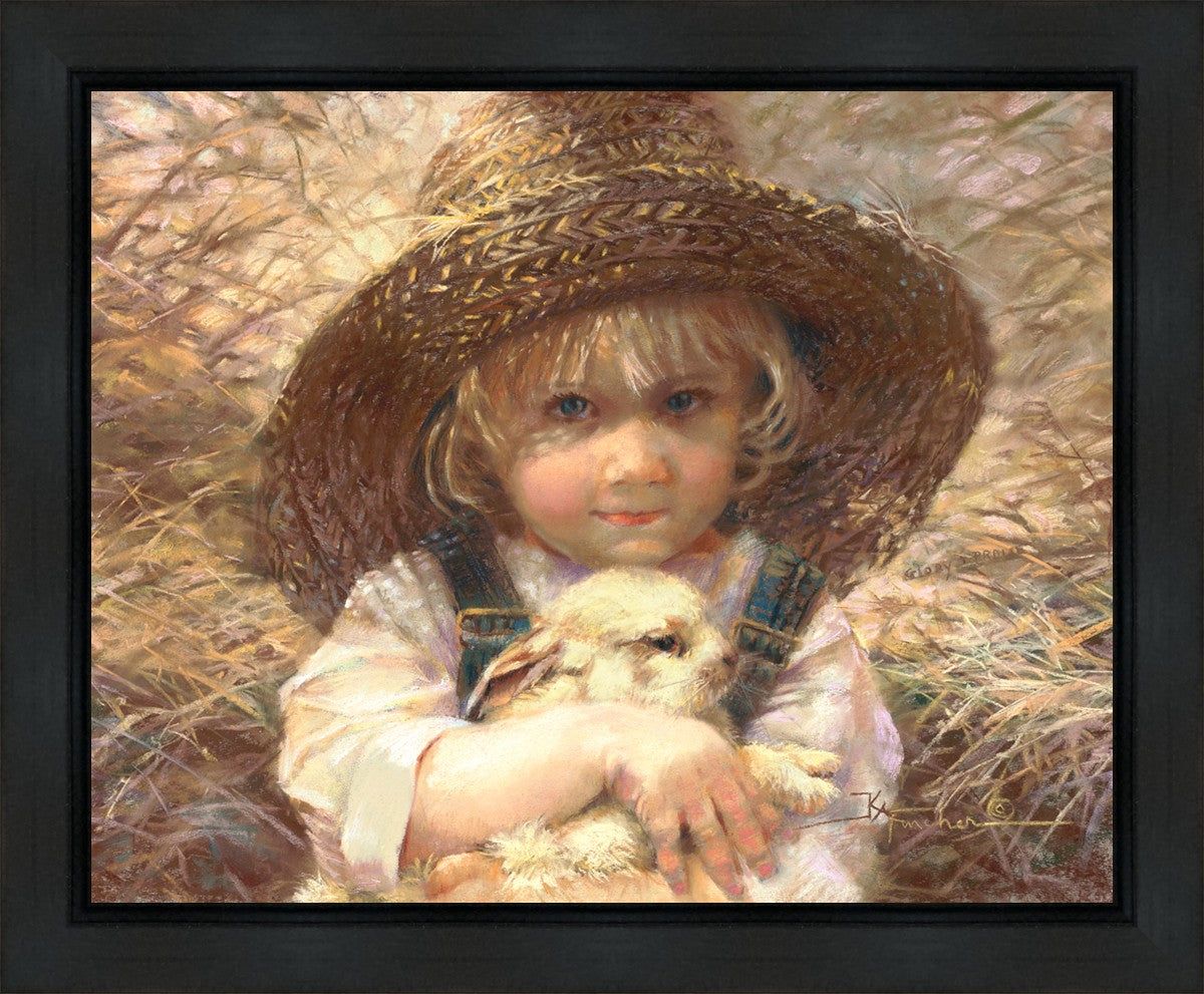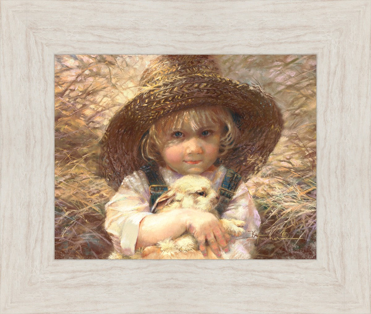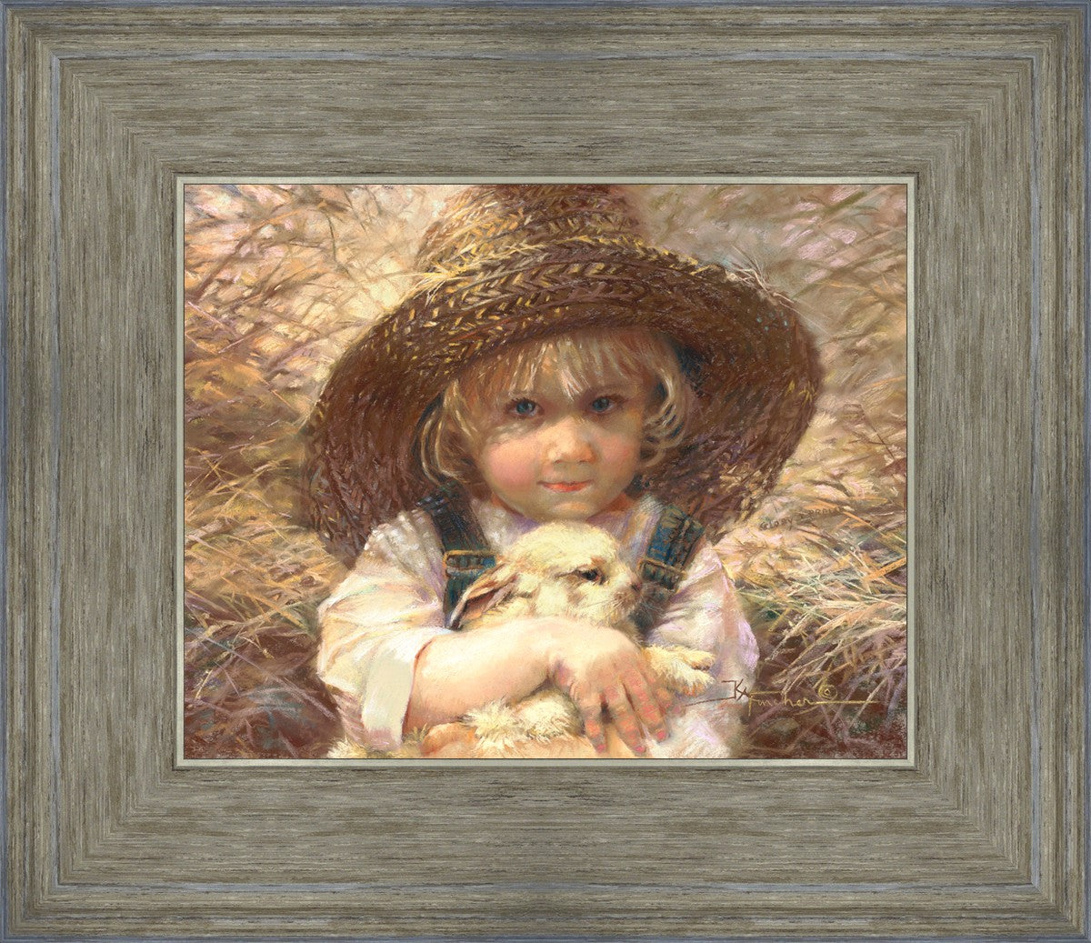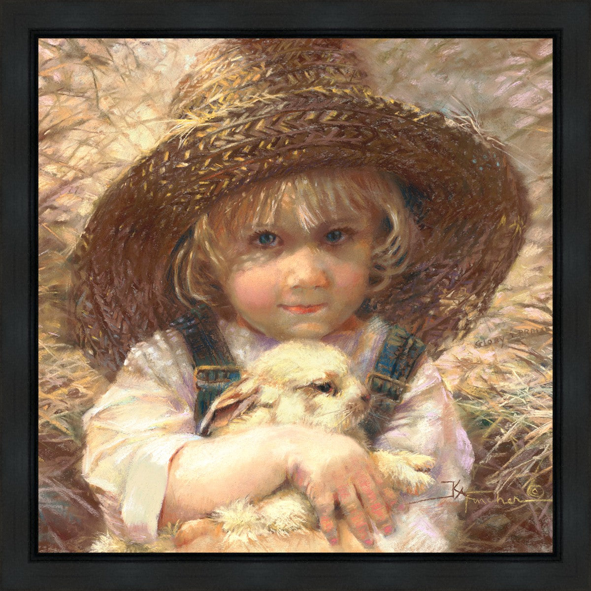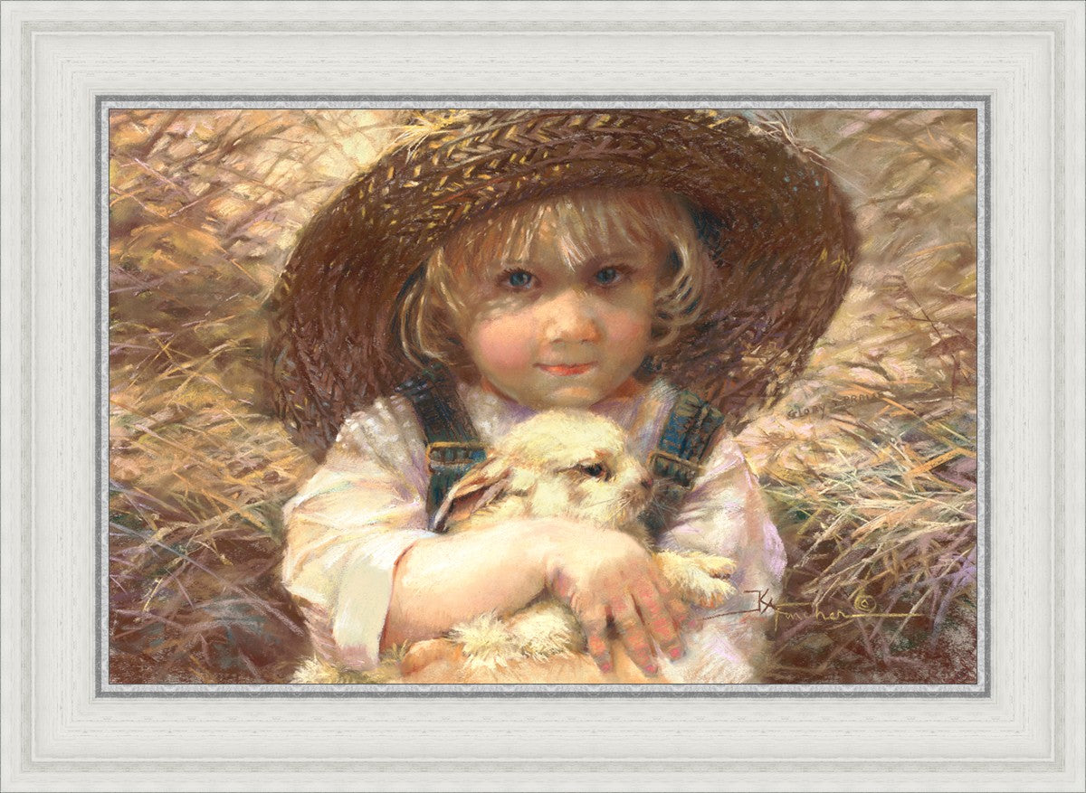 I decided to change the scene. Flowers became straw, and a prissy shirt was traded for overalls. Her blue jean hat became a large straw one. I have painted many children through the years, but if I may claim an artist’s favorite, All Mine would be it.