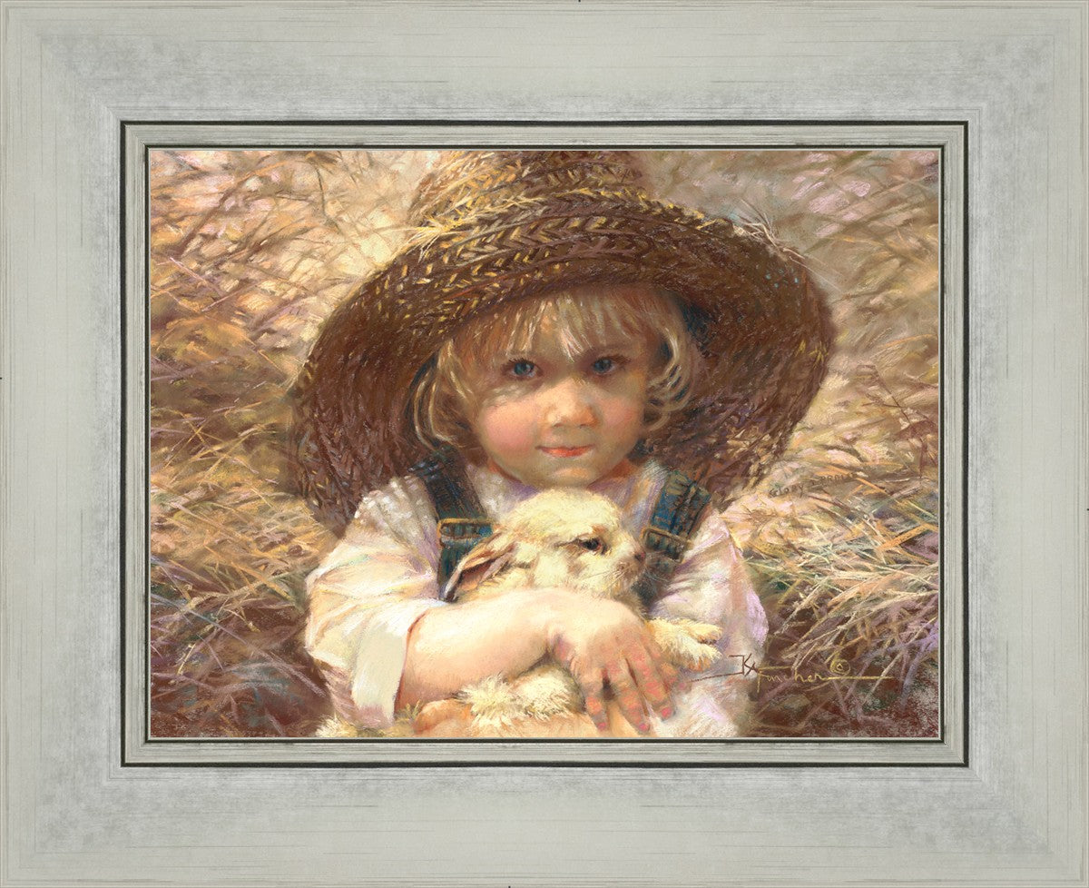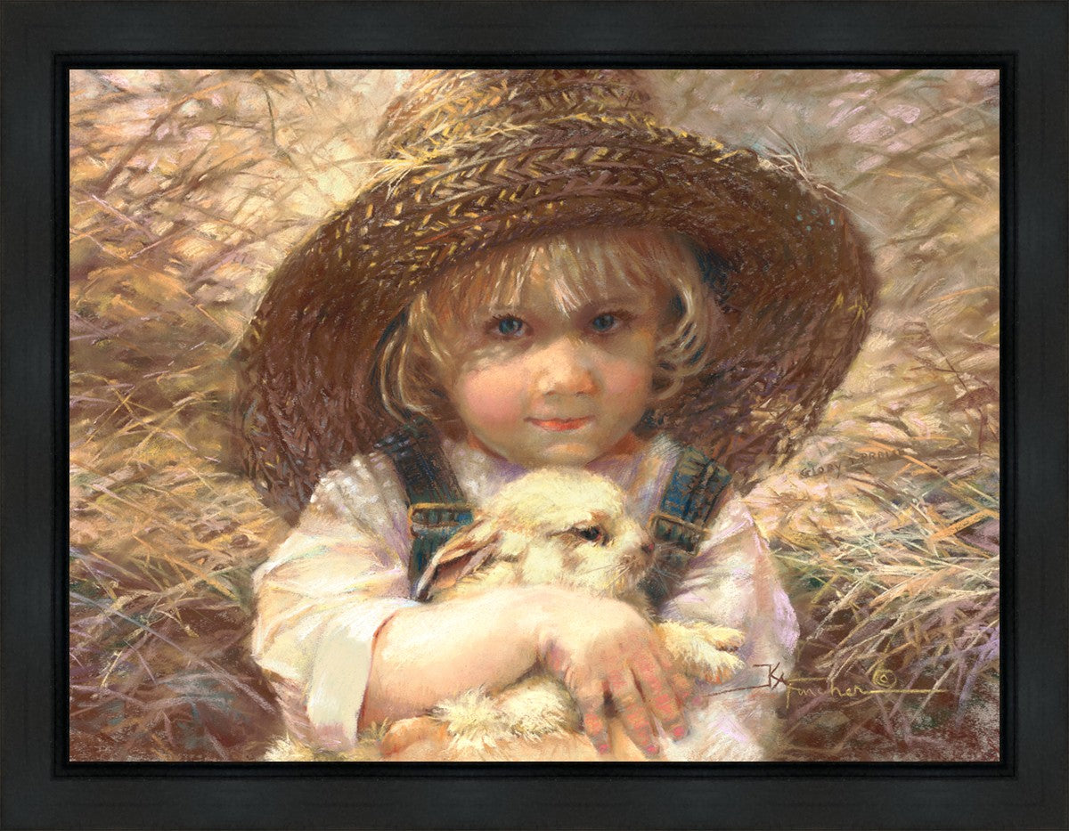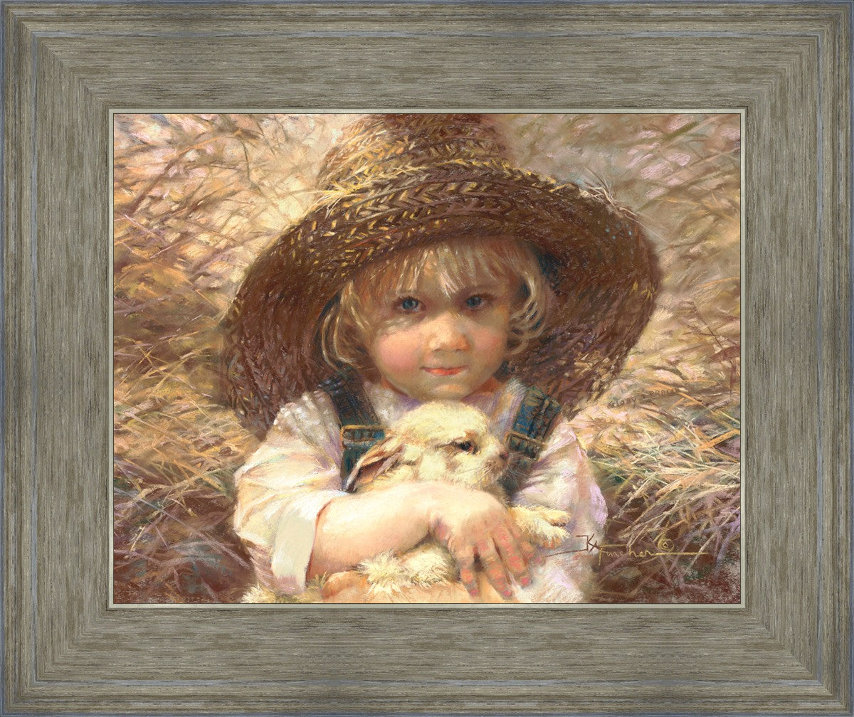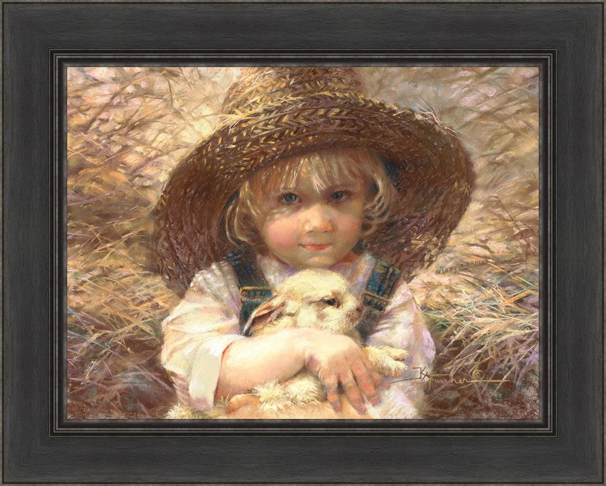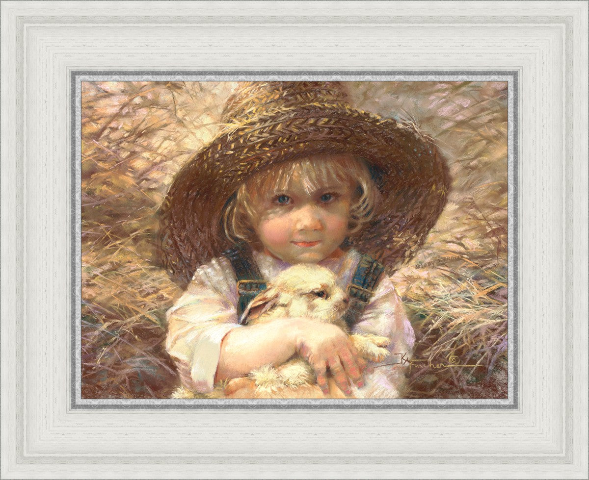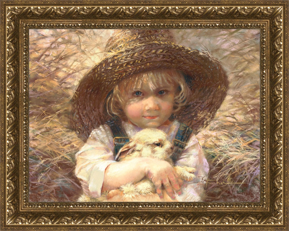 I decided to change the scene. Flowers became straw, and a prissy shirt was traded for overalls. Her blue jean hat became a large straw one. I have painted many children through the years, but if I may claim an artist’s favorite, All Mine would be it.