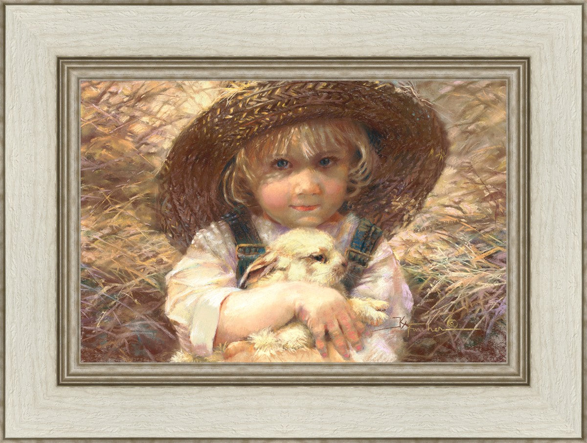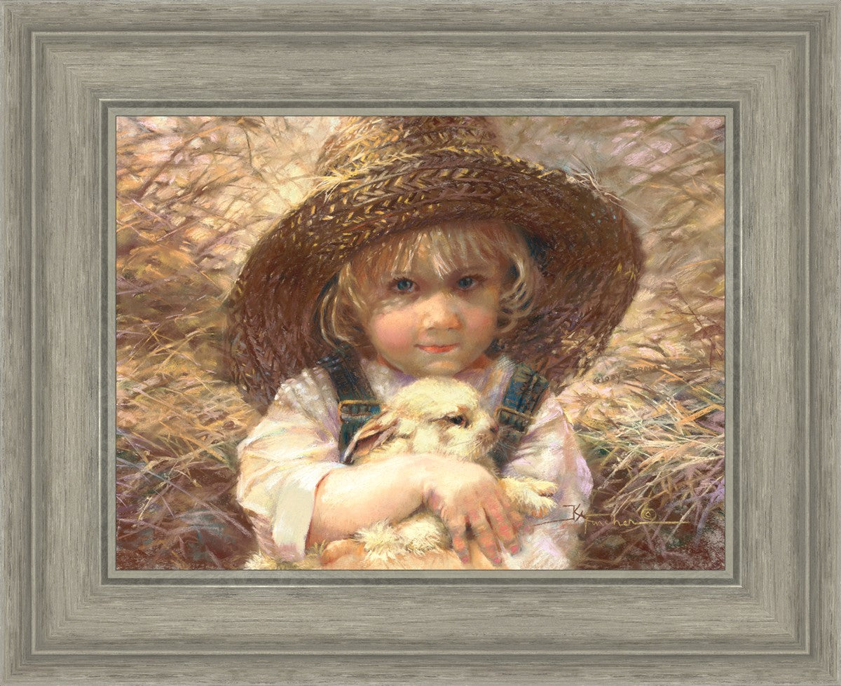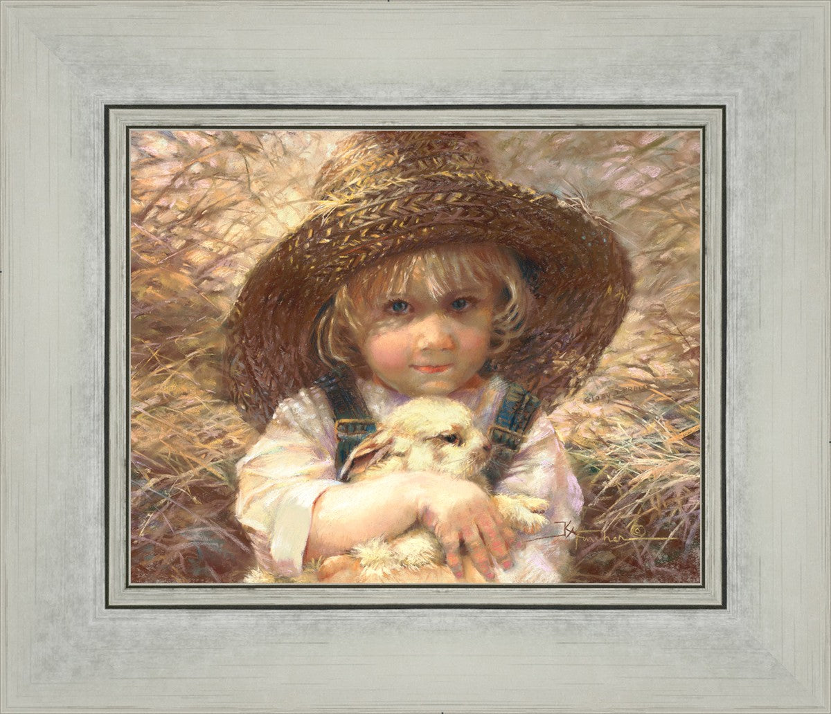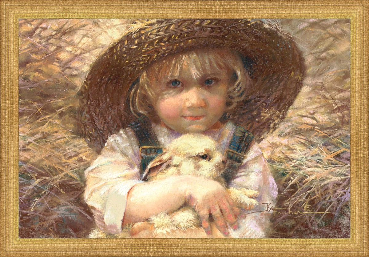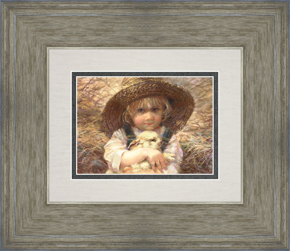 I decided to change the scene. Flowers became straw, and a prissy shirt was traded for overalls. Her blue jean hat became a large straw one. I have painted many children through the years, but if I may claim an artist’s favorite, All Mine would be it.