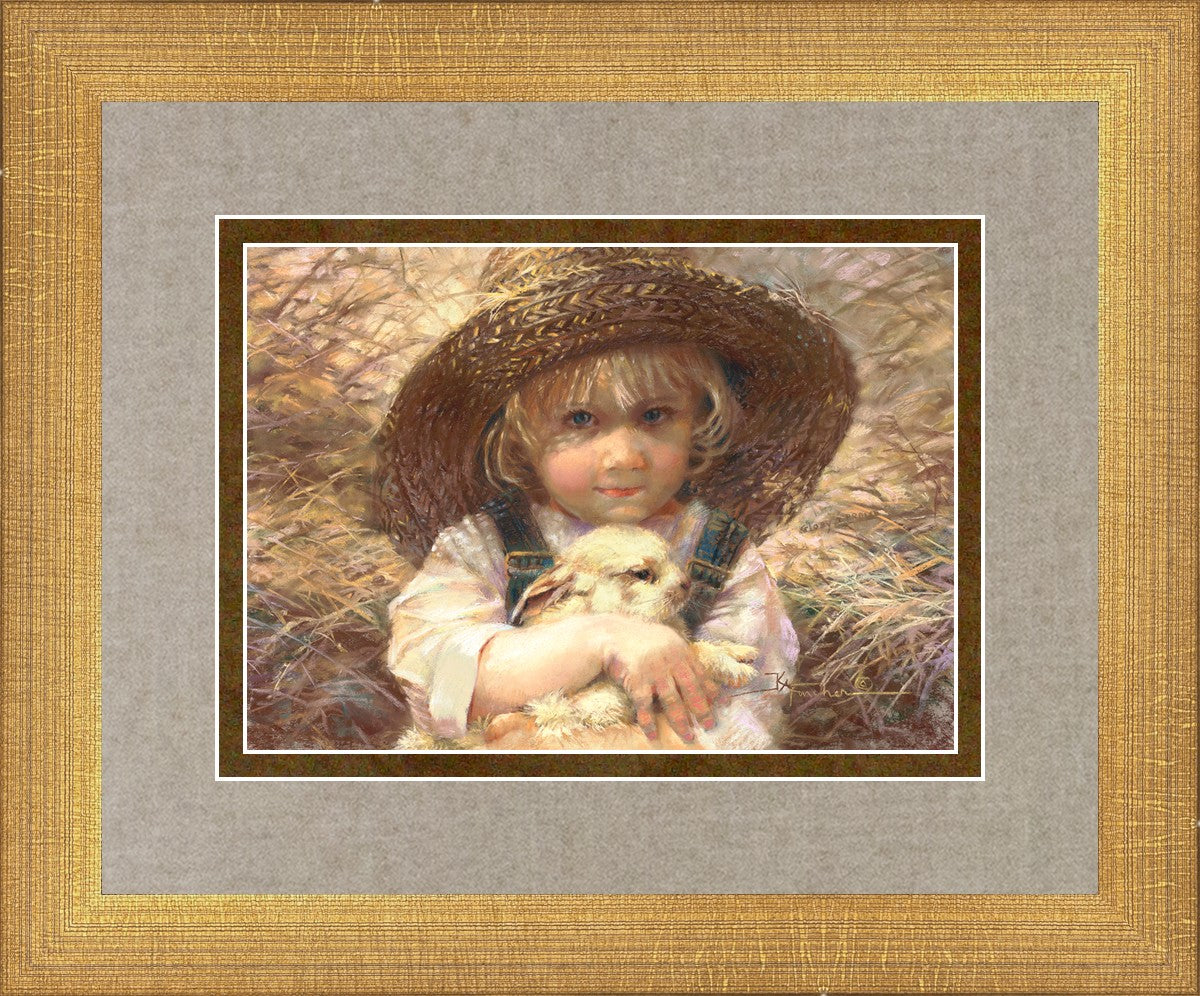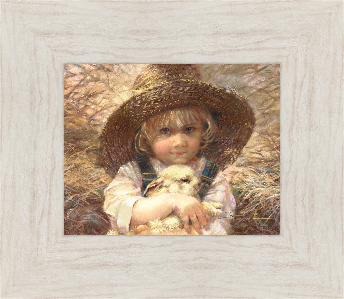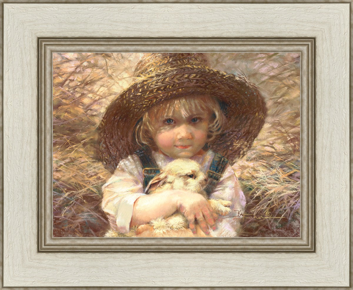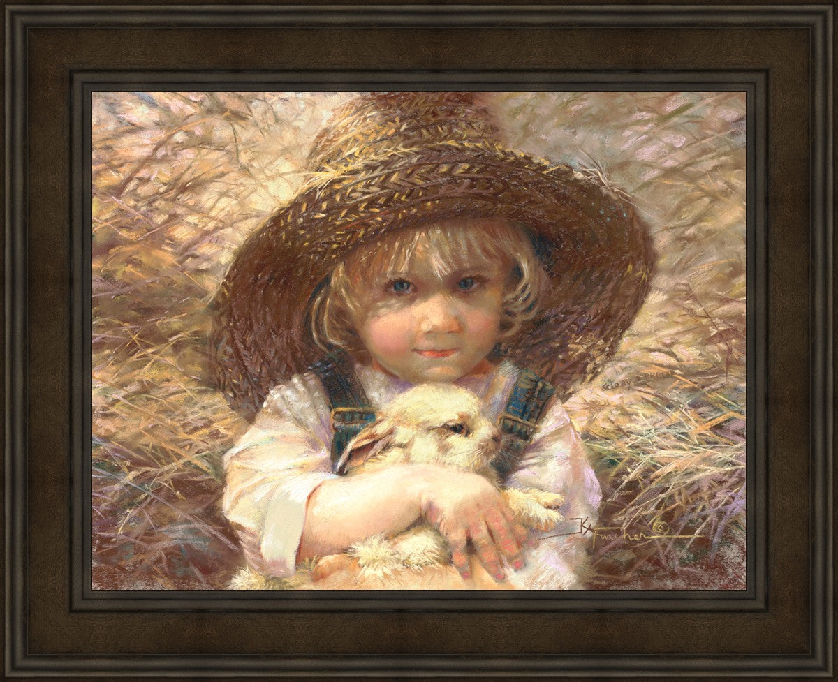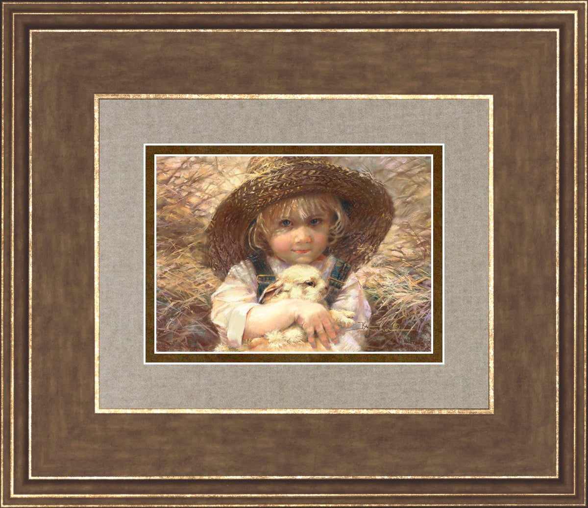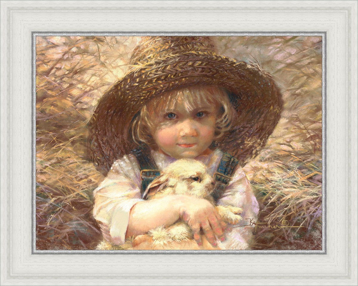 I decided to change the scene. Flowers became straw, and a prissy shirt was traded for overalls. Her blue jean hat became a large straw one. I have painted many children through the years, but if I may claim an artist’s favorite, All Mine would be it.