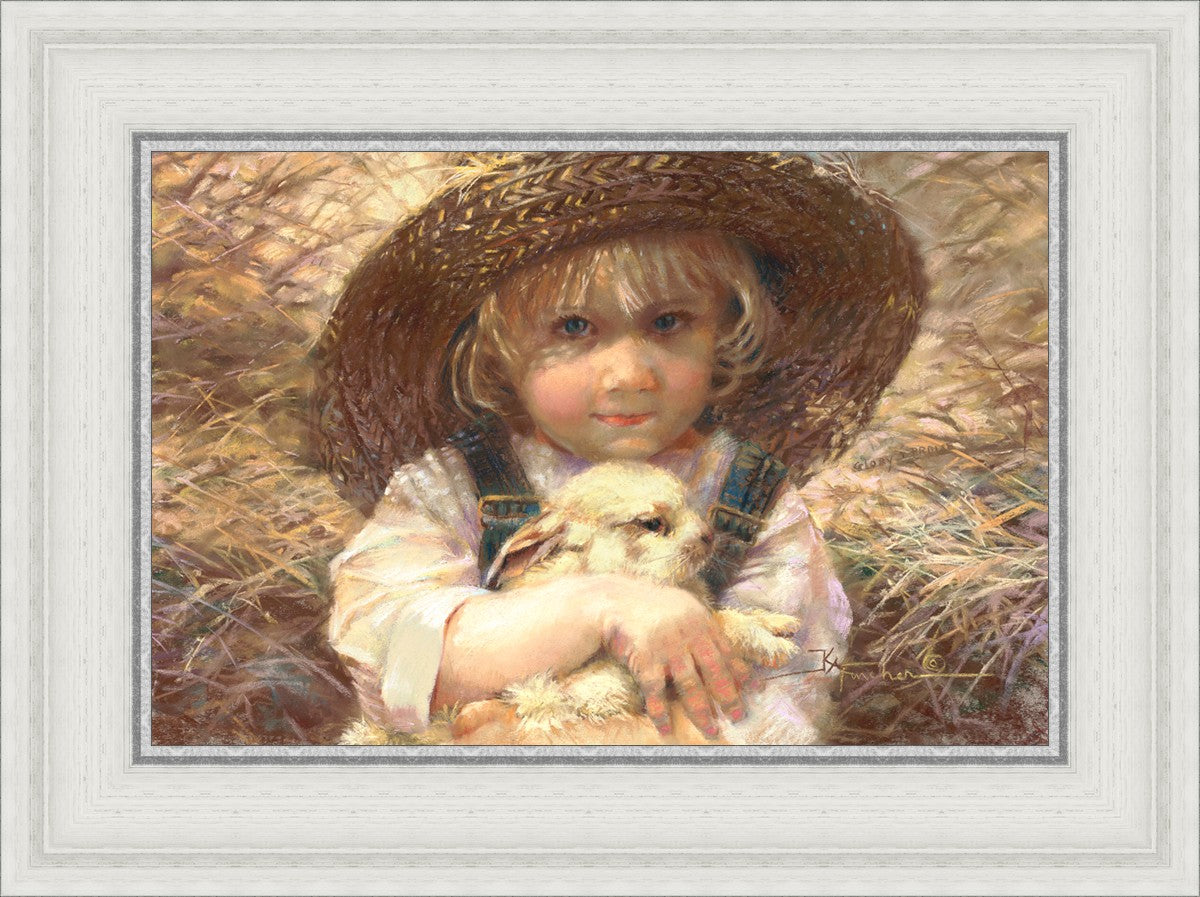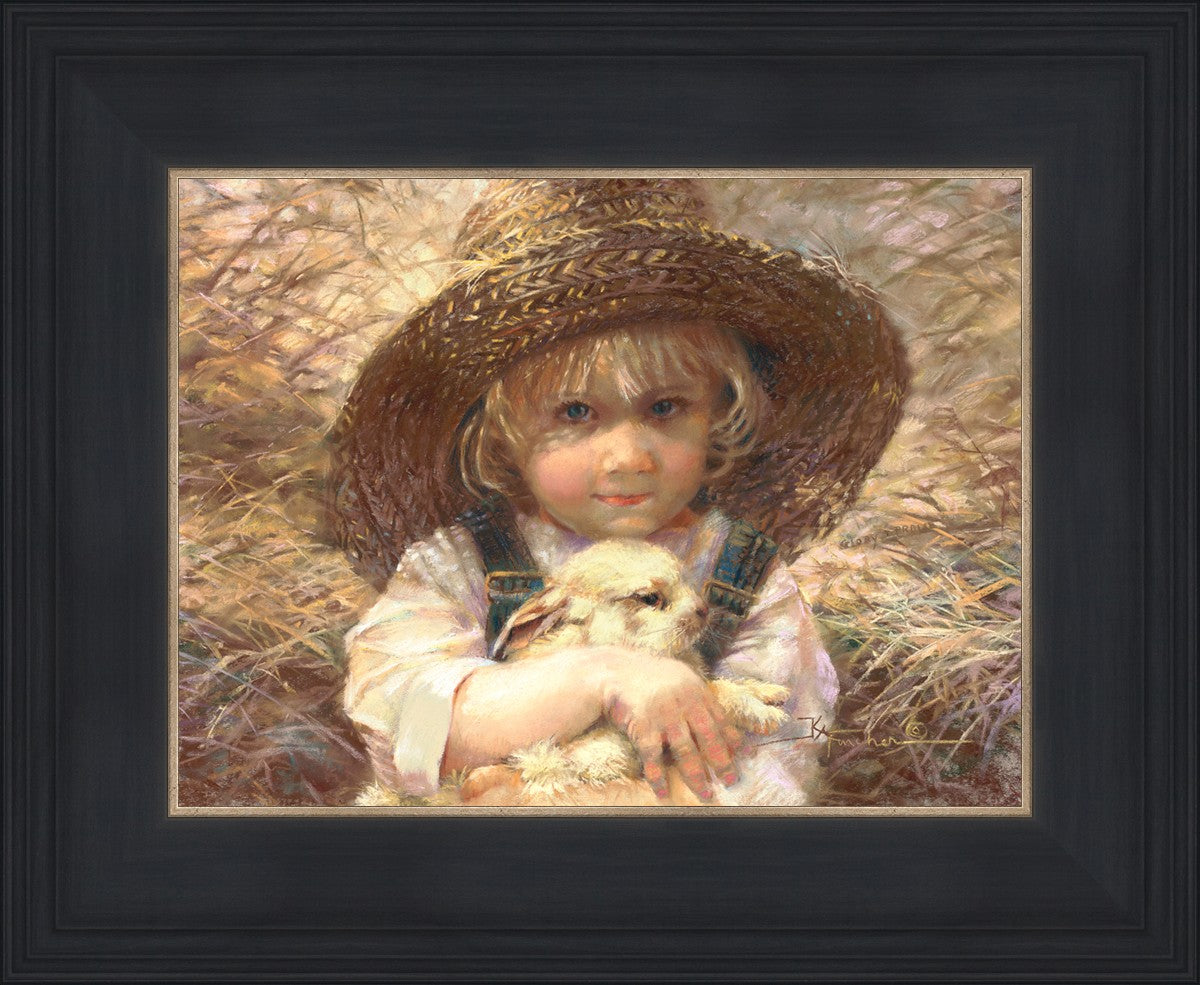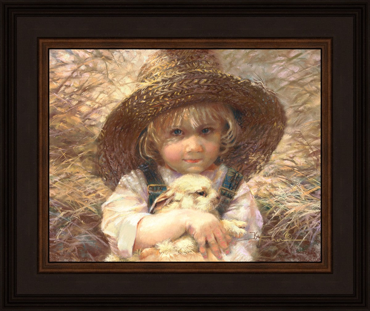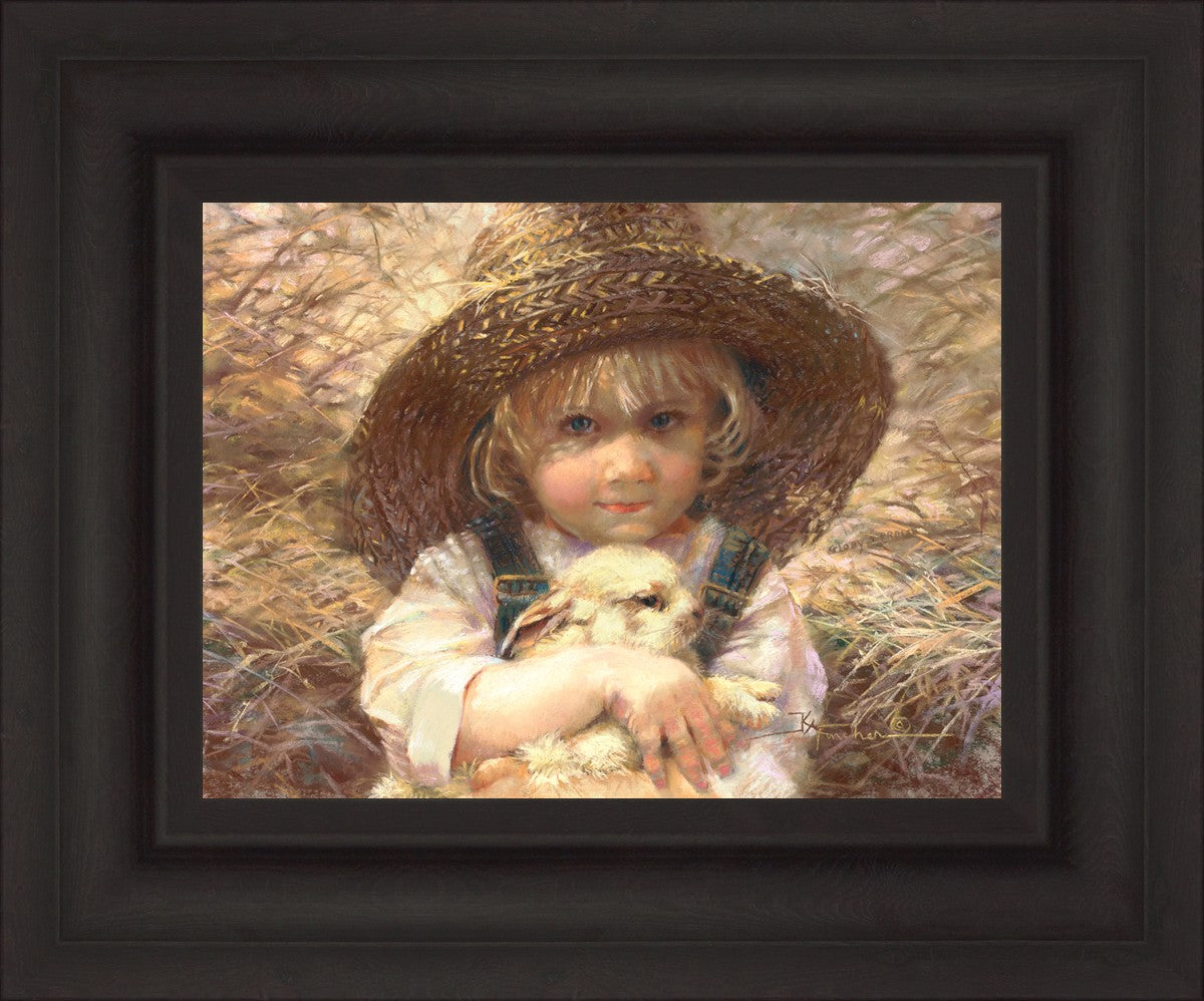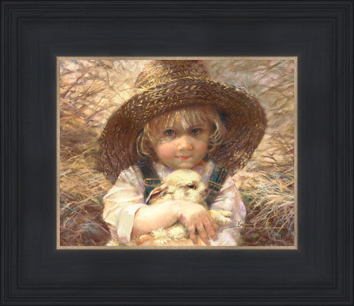 I decided to change the scene. Flowers became straw, and a prissy shirt was traded for overalls. Her blue jean hat became a large straw one. I have painted many children through the years, but if I may claim an artist’s favorite, All Mine would be it.