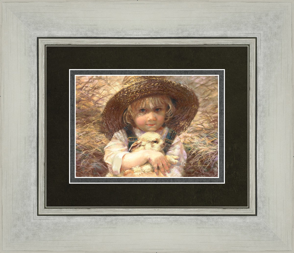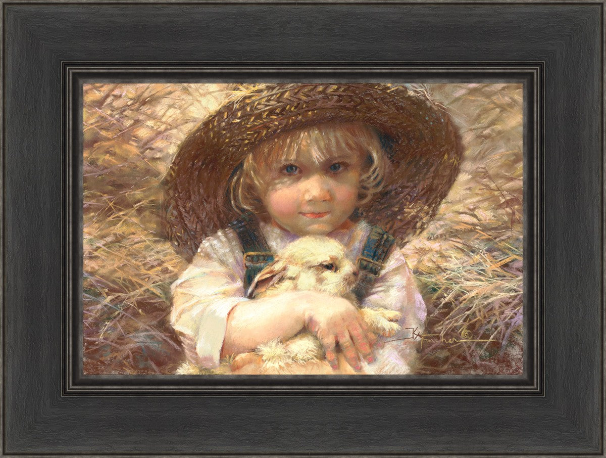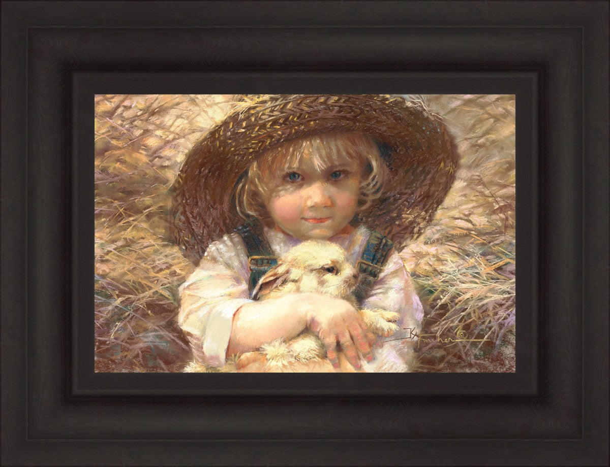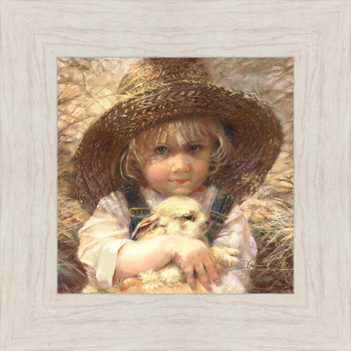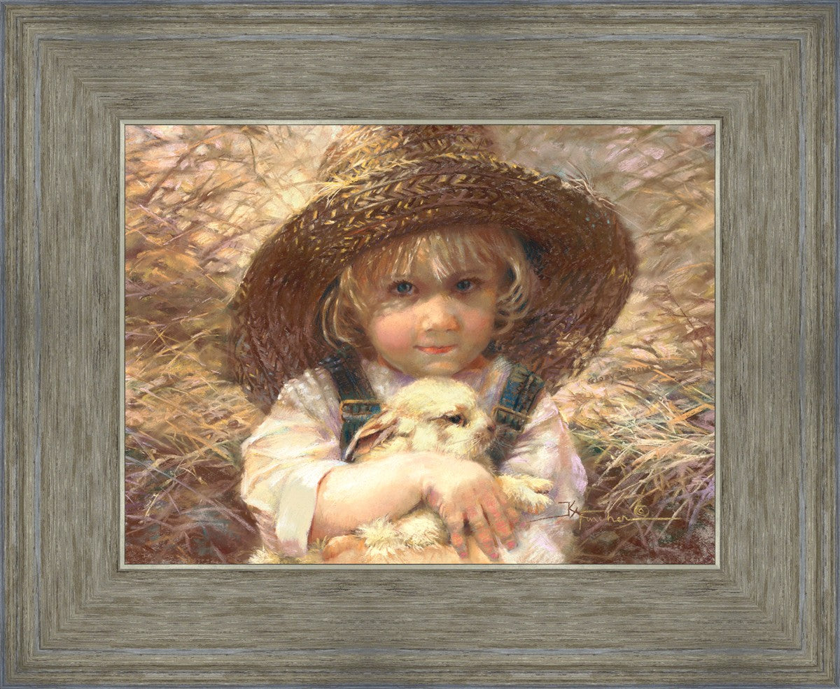 I decided to change the scene. Flowers became straw, and a prissy shirt was traded for overalls. Her blue jean hat became a large straw one. I have painted many children through the years, but if I may claim an artist’s favorite, All Mine would be it.