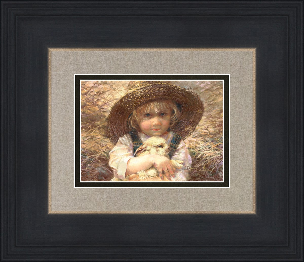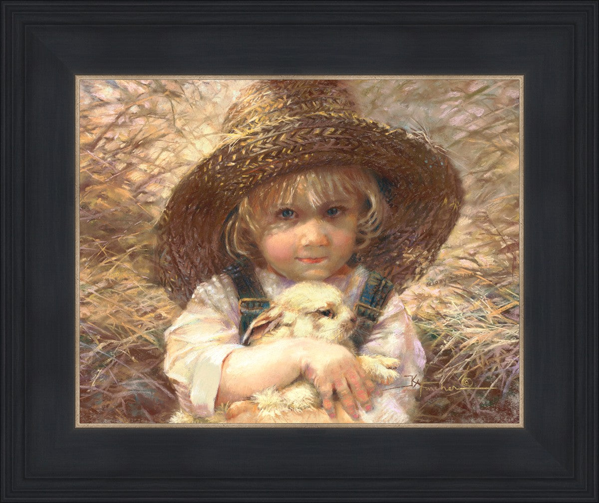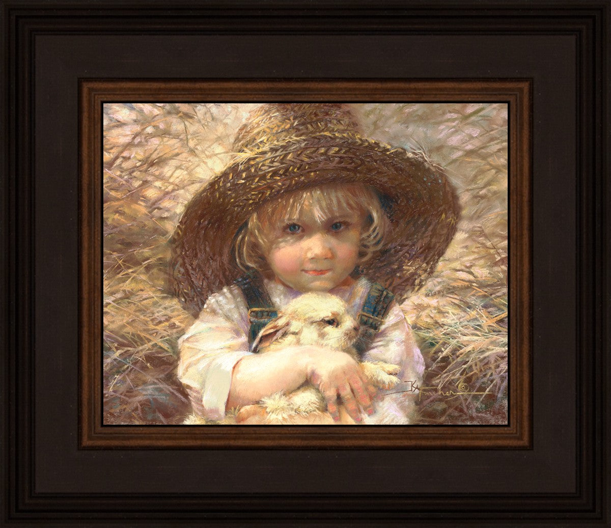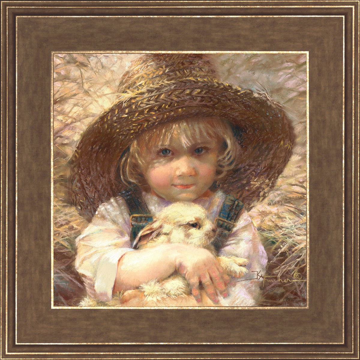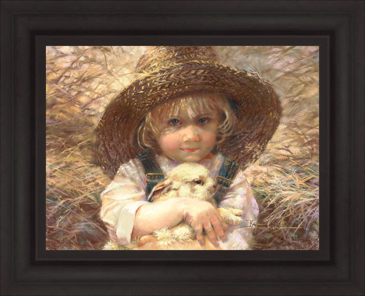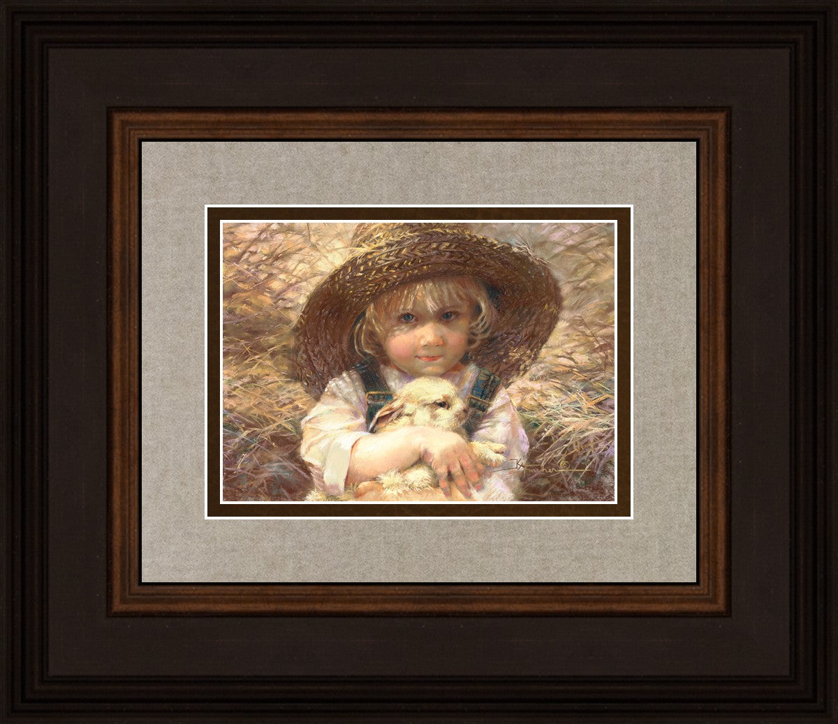 I decided to change the scene. Flowers became straw, and a prissy shirt was traded for overalls. Her blue jean hat became a large straw one. I have painted many children through the years, but if I may claim an artist’s favorite, All Mine would be it.