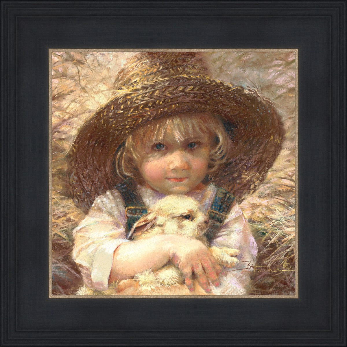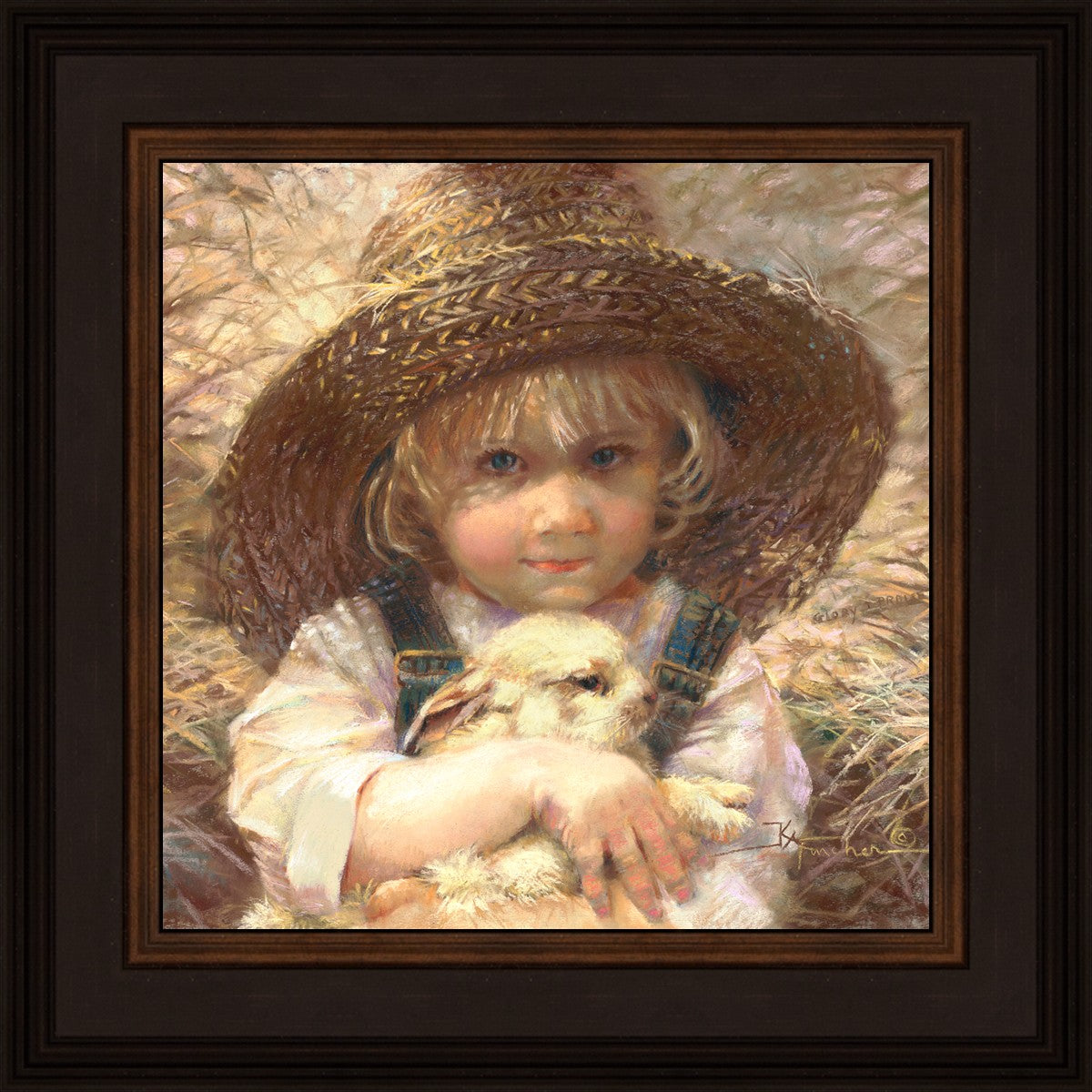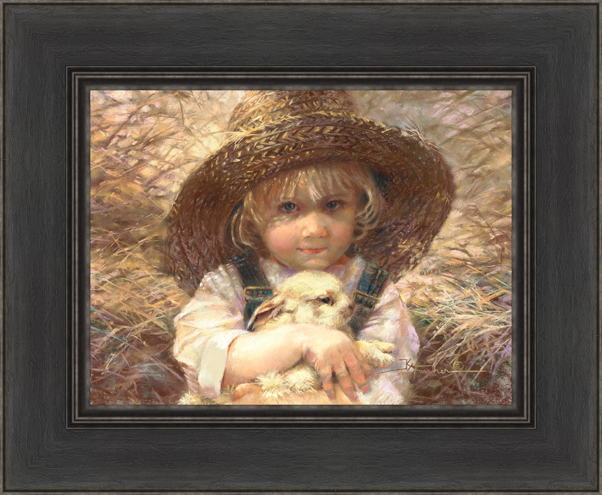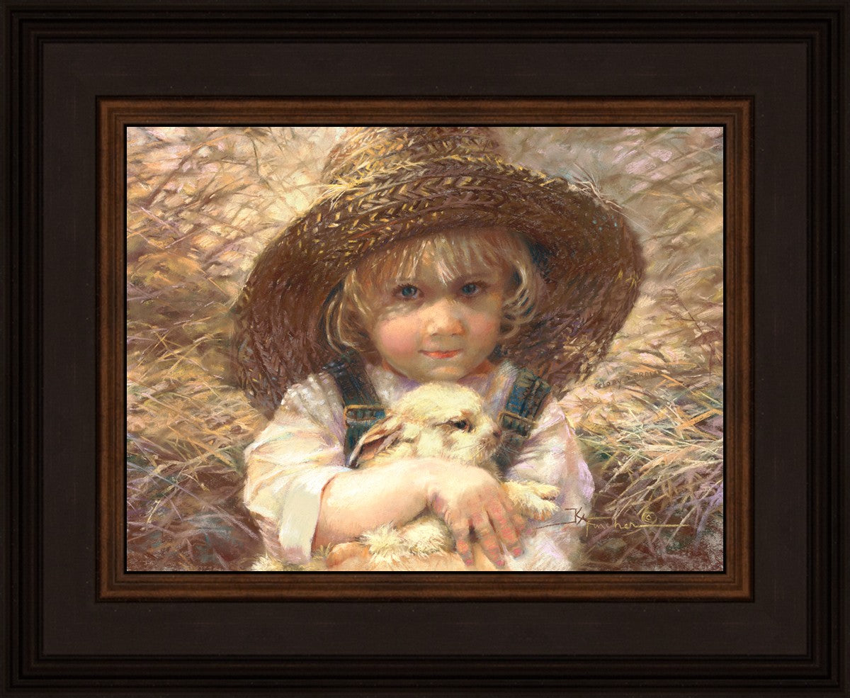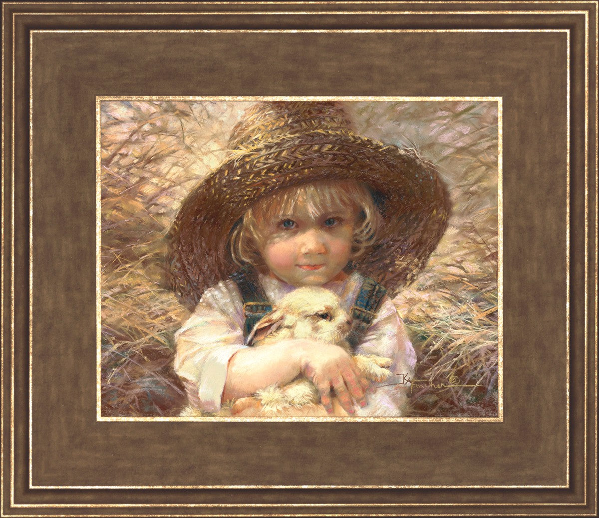 I decided to change the scene. Flowers became straw, and a prissy shirt was traded for overalls. Her blue jean hat became a large straw one. I have painted many children through the years, but if I may claim an artist’s favorite, All Mine would be it.