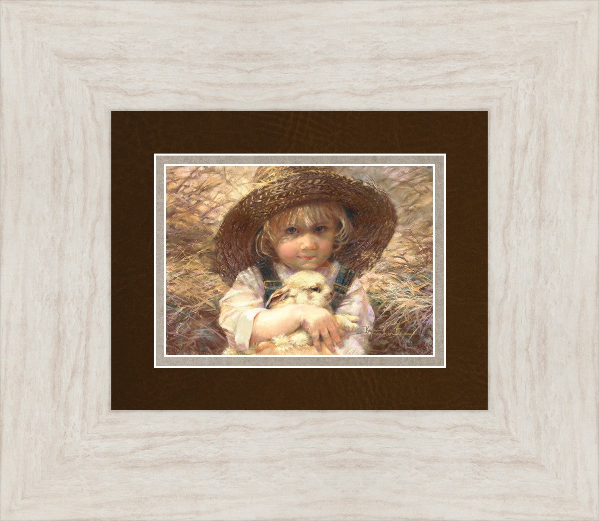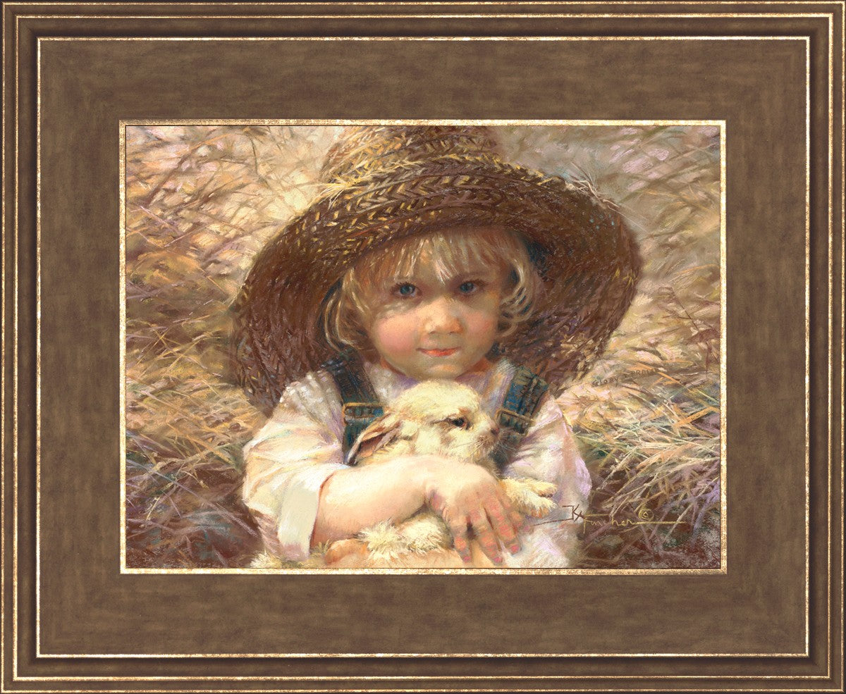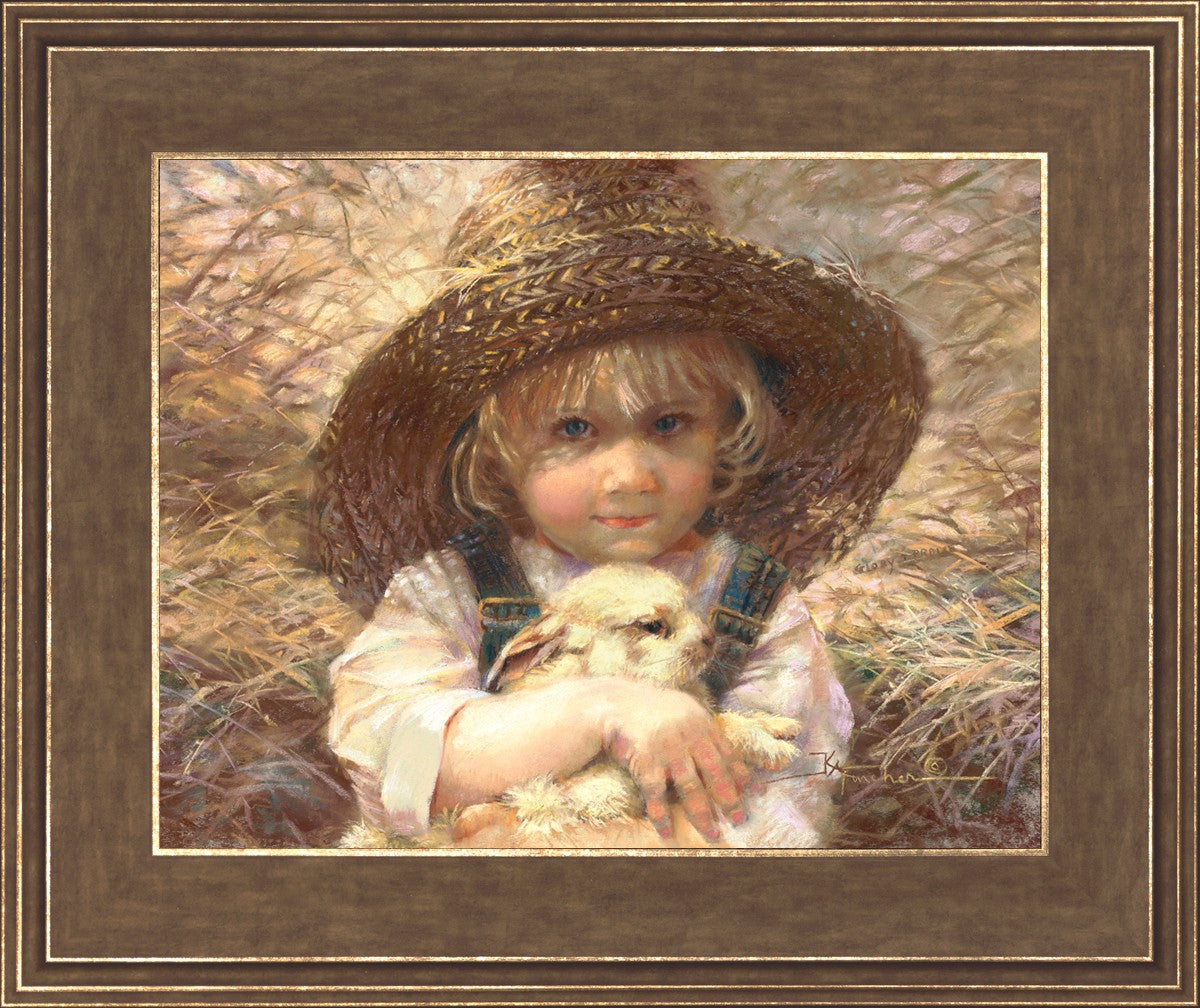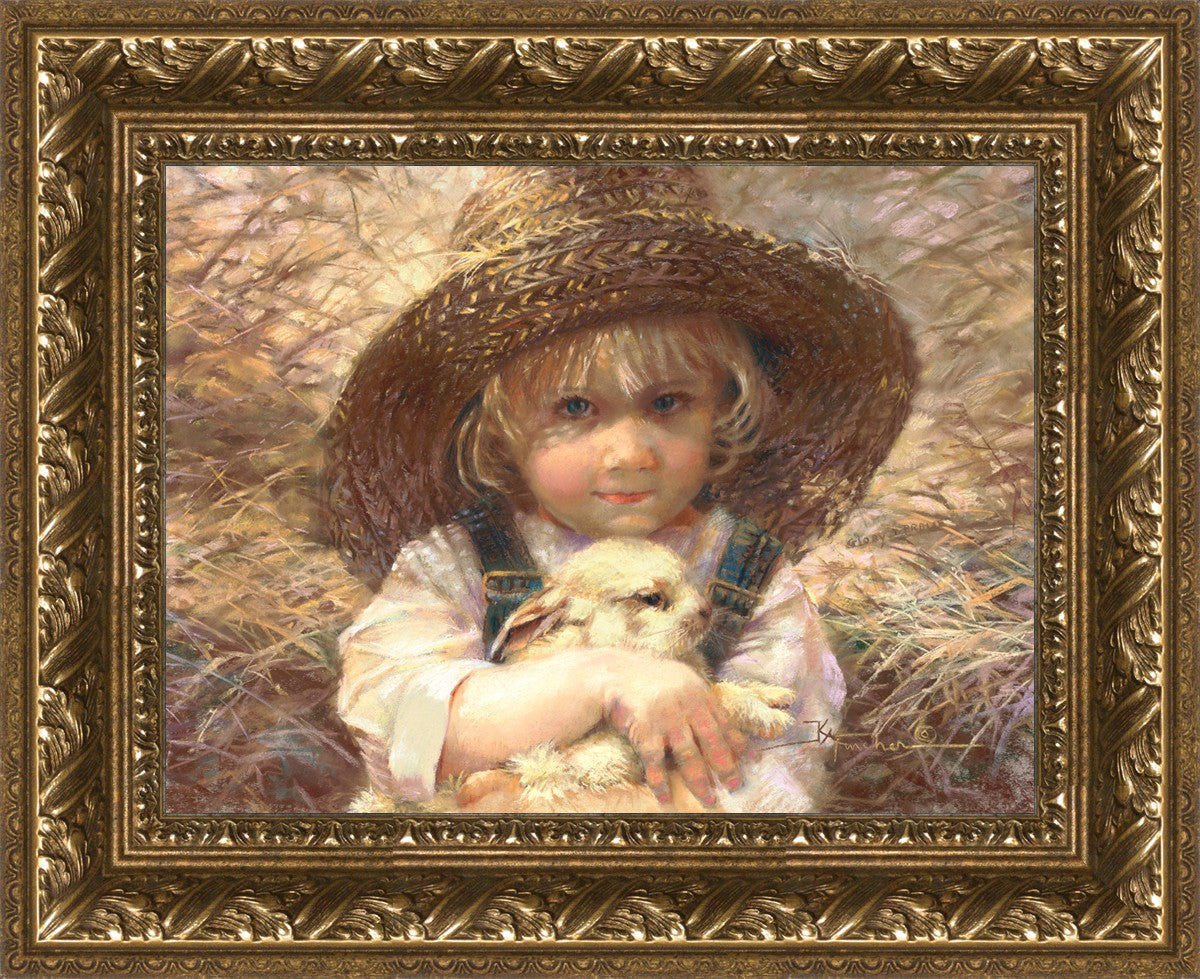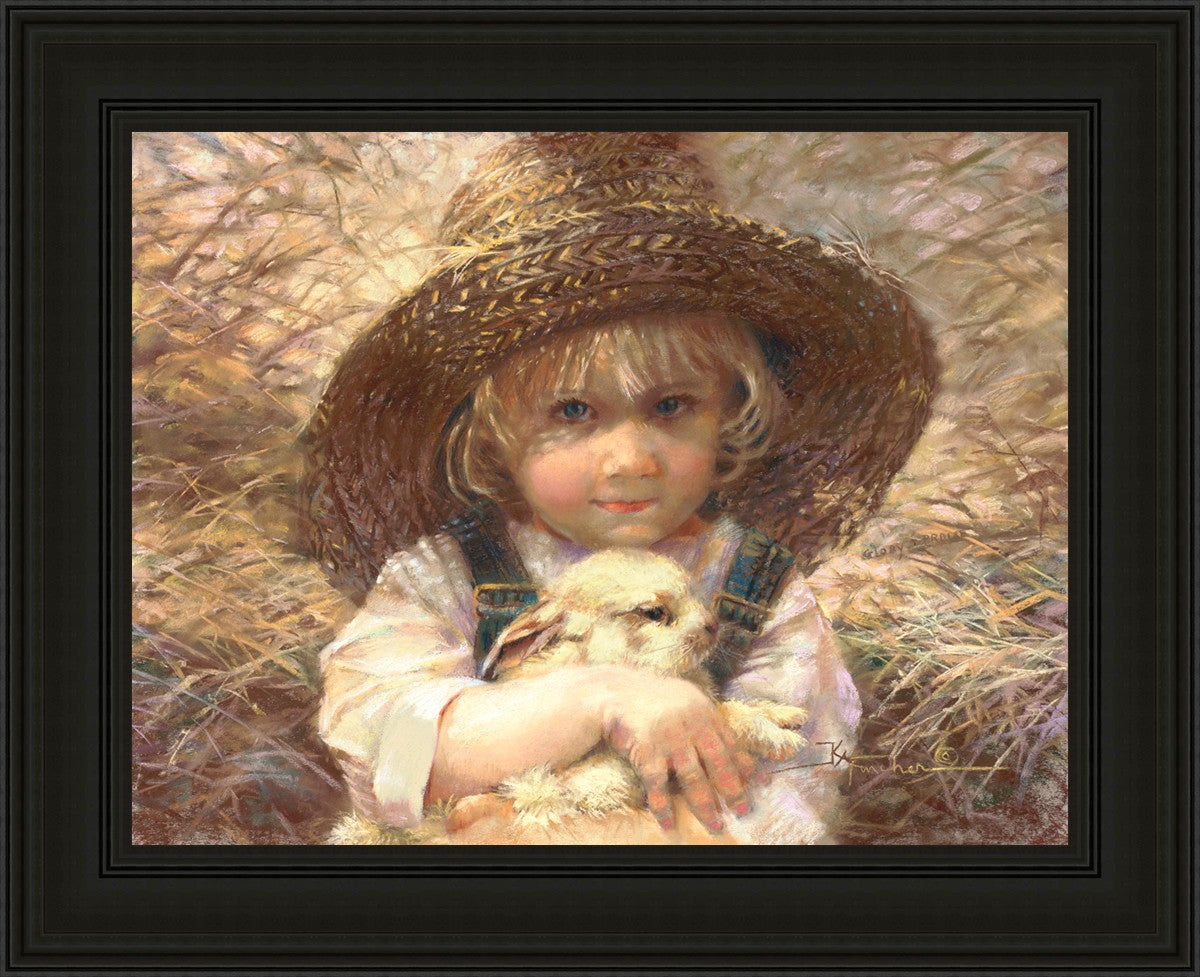 I decided to change the scene. Flowers became straw, and a prissy shirt was traded for overalls. Her blue jean hat became a large straw one. I have painted many children through the years, but if I may claim an artist’s favorite, All Mine would be it.