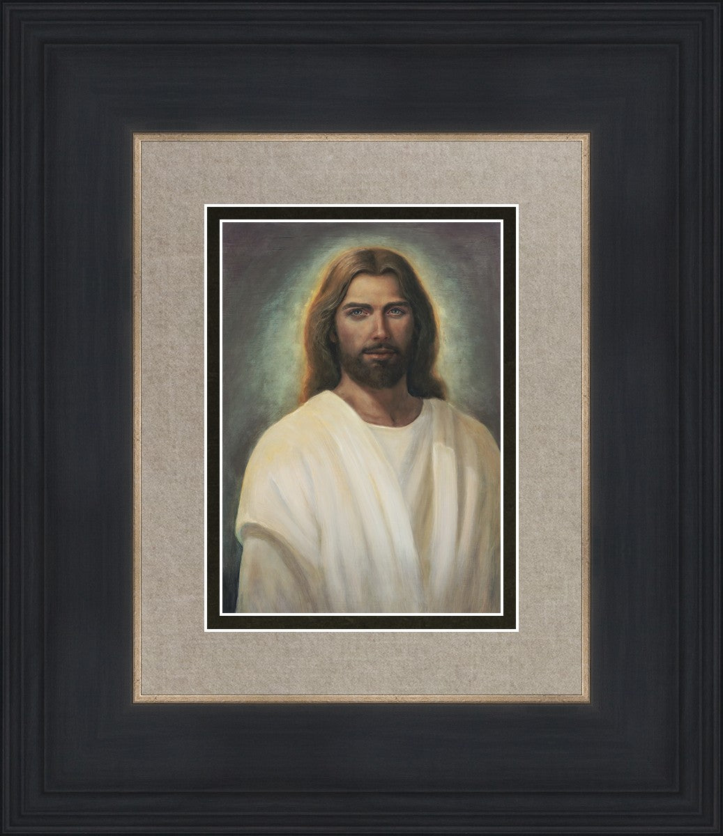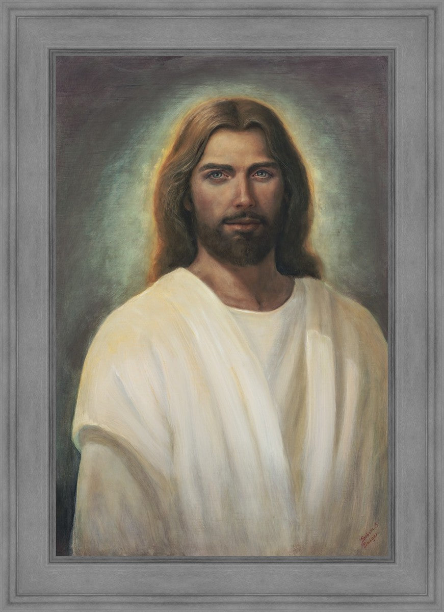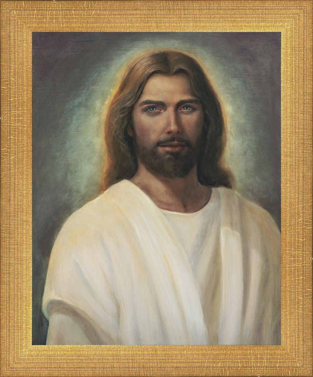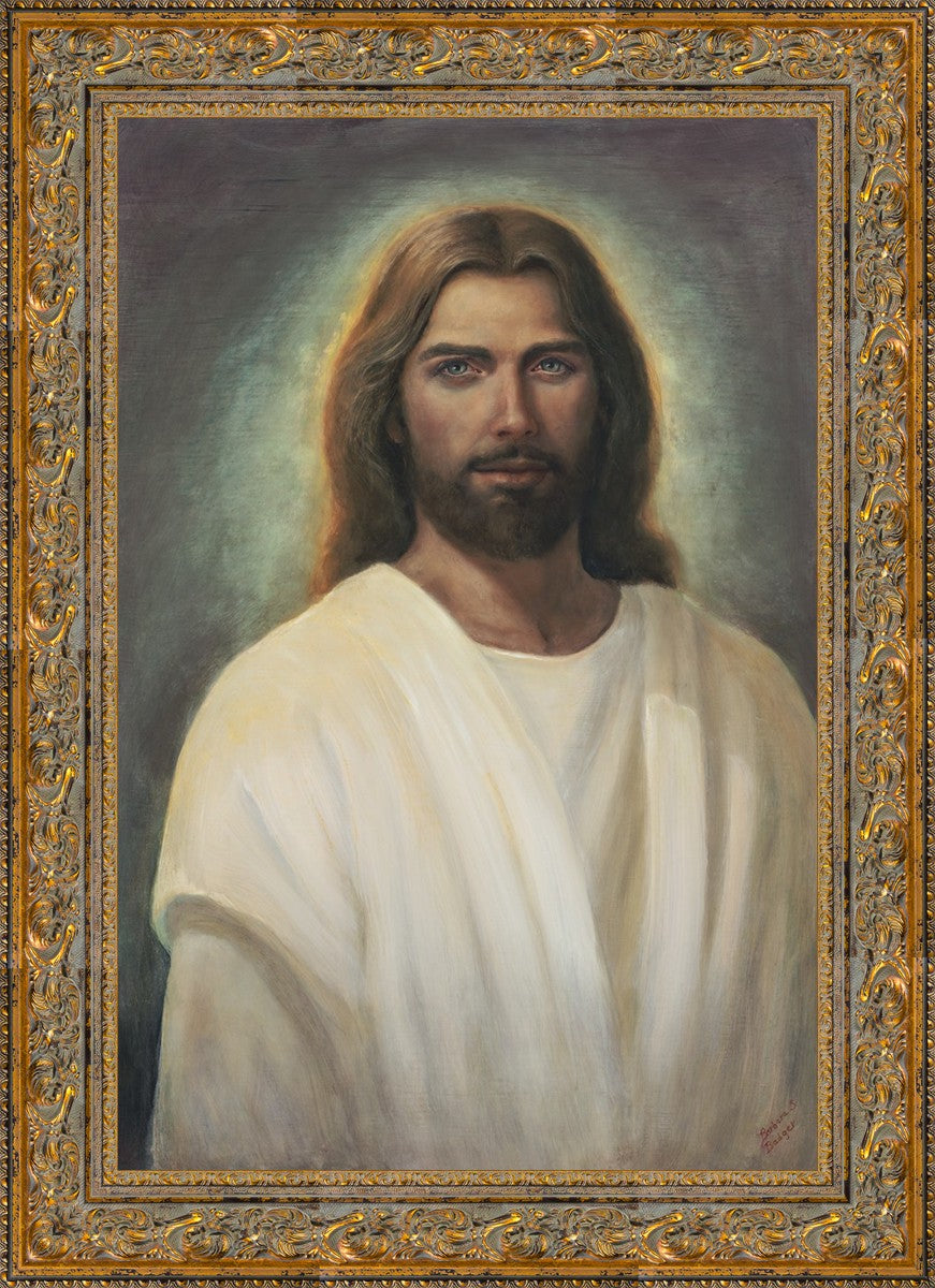 This painting took 6 months of work and struggle as I tried to capture the essence of an amazing vision I was given in church during the Sacrament. I could see with my eyes the Savior and it was so shocking and surprising to me. His eyes met mine and I was mesmerized with those amazing, love filled eyes. All other features were hardly noticed because I could never take my eyes from His gaze. He walked towards me and lifted his hands to the sides of my face and suddenly the vision was gone.