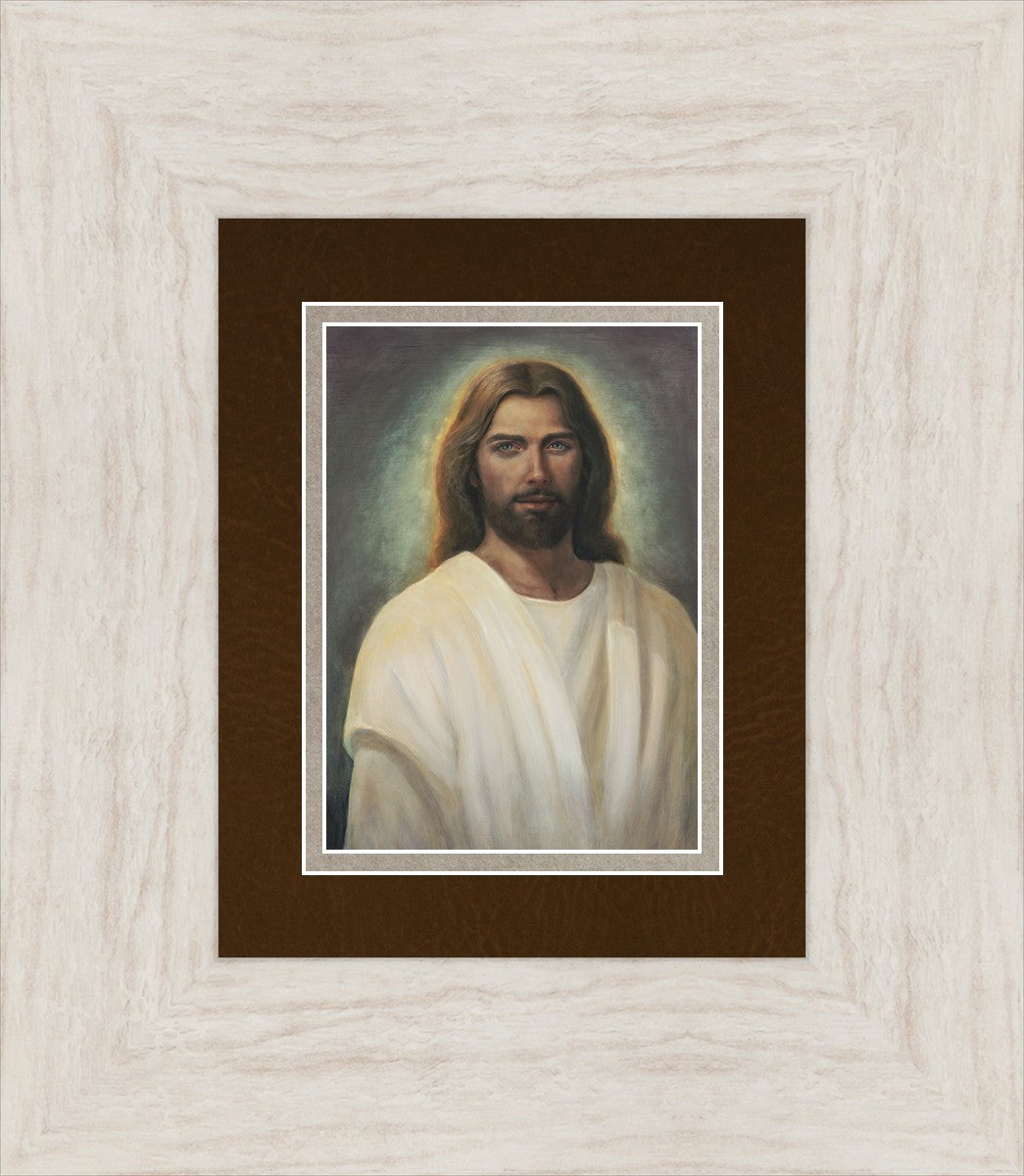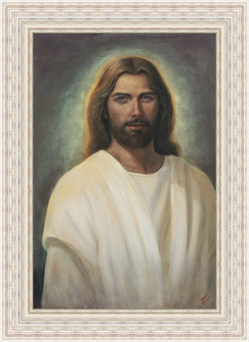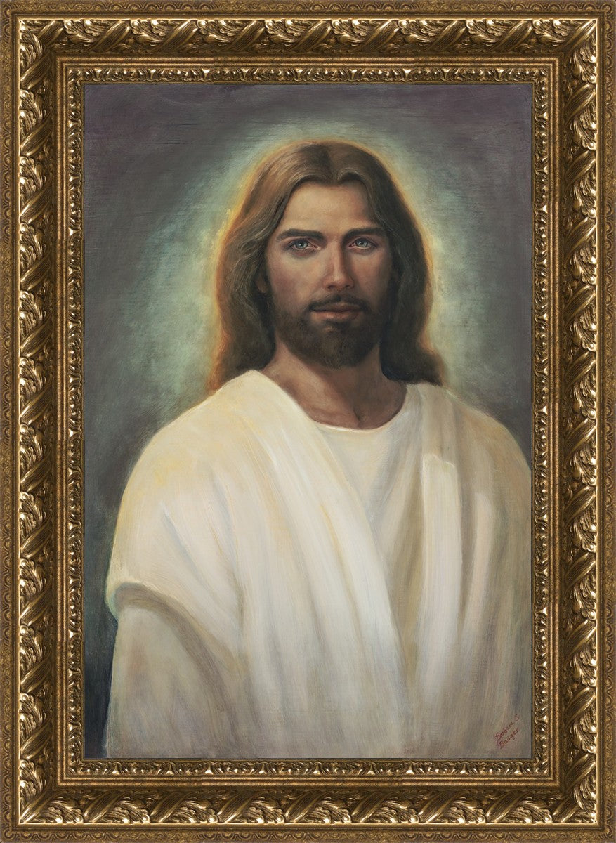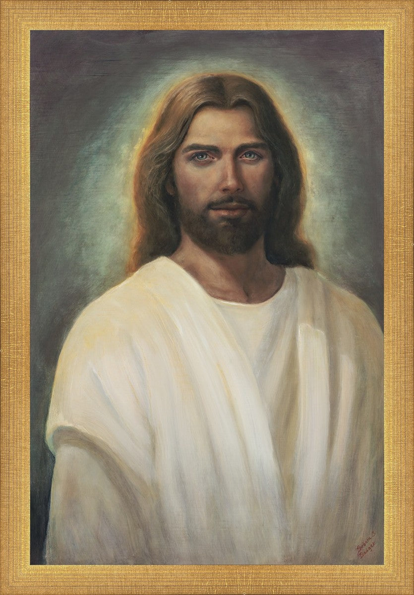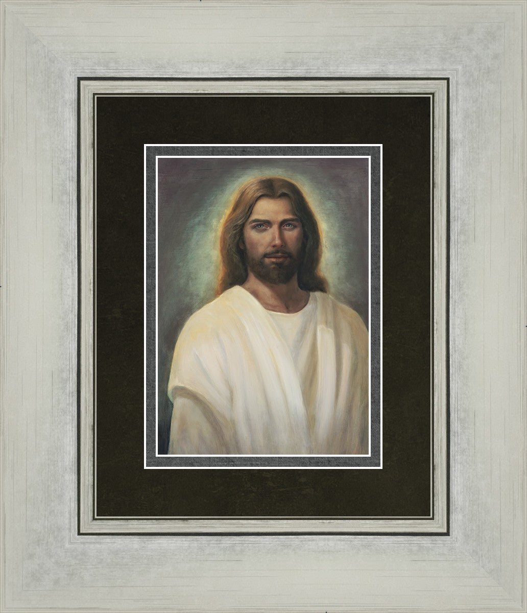 This painting took 6 months of work and struggle as I tried to capture the essence of an amazing vision I was given in church during the Sacrament. I could see with my eyes the Savior and it was so shocking and surprising to me. His eyes met mine and I was mesmerized with those amazing, love filled eyes. All other features were hardly noticed because I could never take my eyes from His gaze. He walked towards me and lifted his hands to the sides of my face and suddenly the vision was gone.