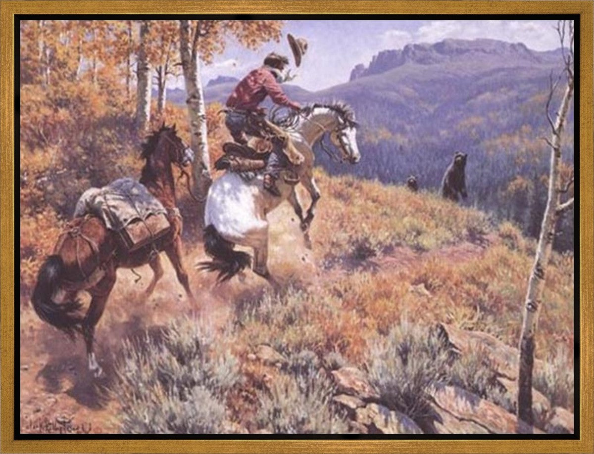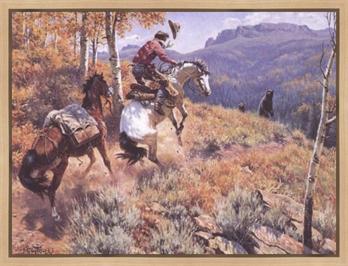 He spent his early years living in a log cabin that his parents had built in Montana. Surrounded by nature, Clark developed an appreciation for the land, as well as an ability to observe the kinds of details that many overlook. He has been able to call upon matter of his observations and experiences to create the art for which he has become known. The subject matter of his work ranges from religious to old west.