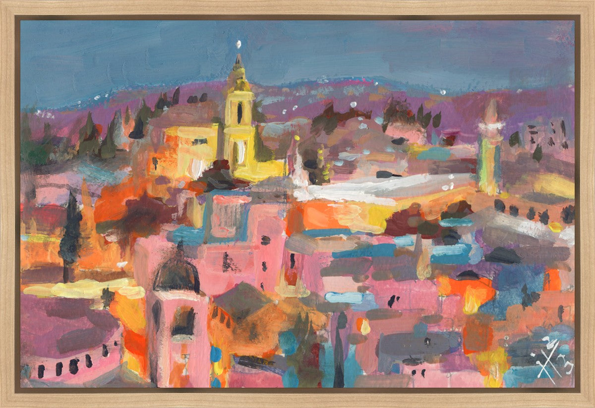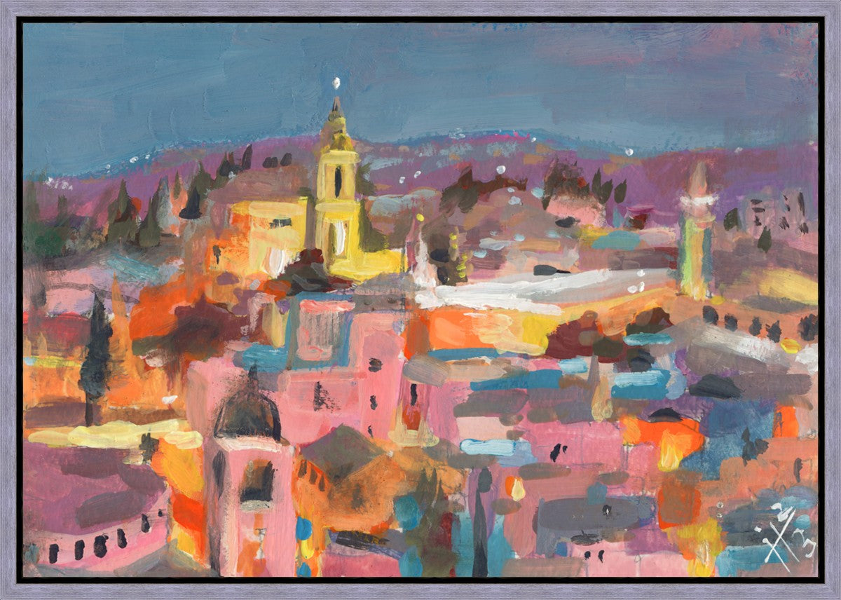 This modern and more decorative painting of Bethlehem captures the beauty and magic of this historic city. The name of Jesus, who was born here over 2,000 years ago, is still the major attraction for the people flow. His birth is the central event in history, and this painting serves as a beautiful reminder of the significance of this humble town.