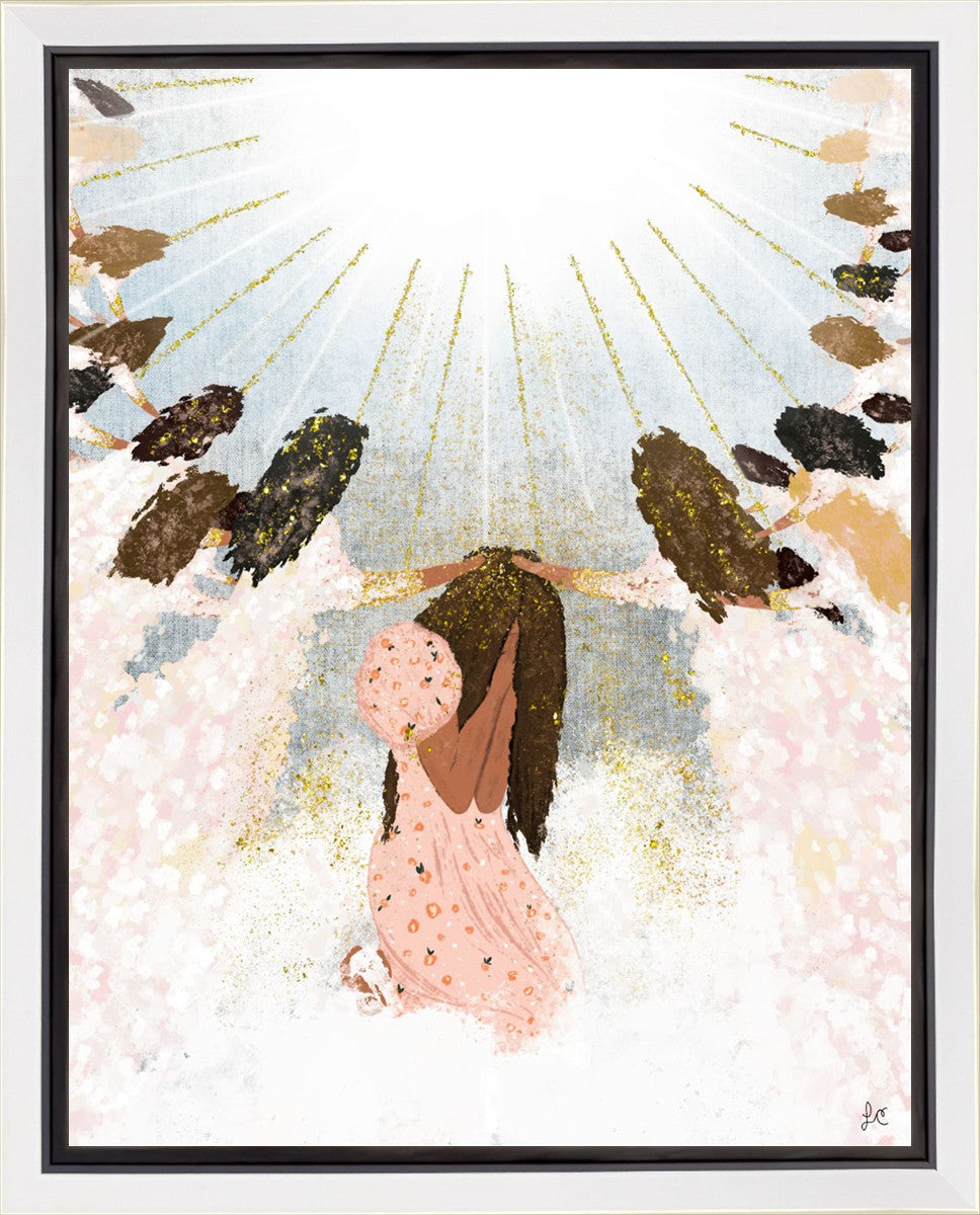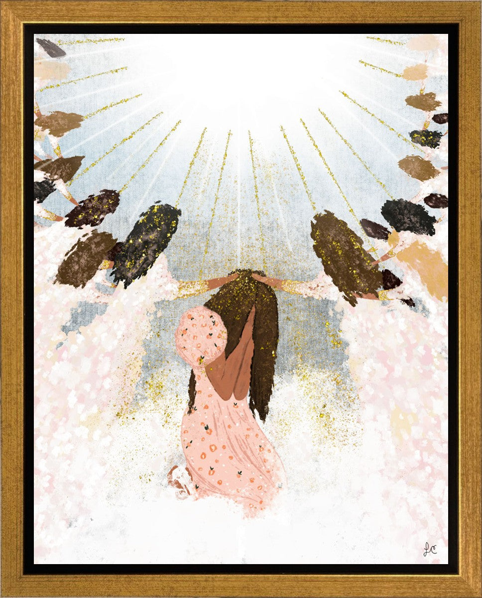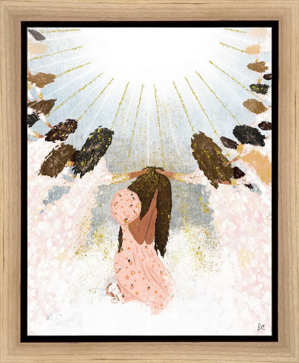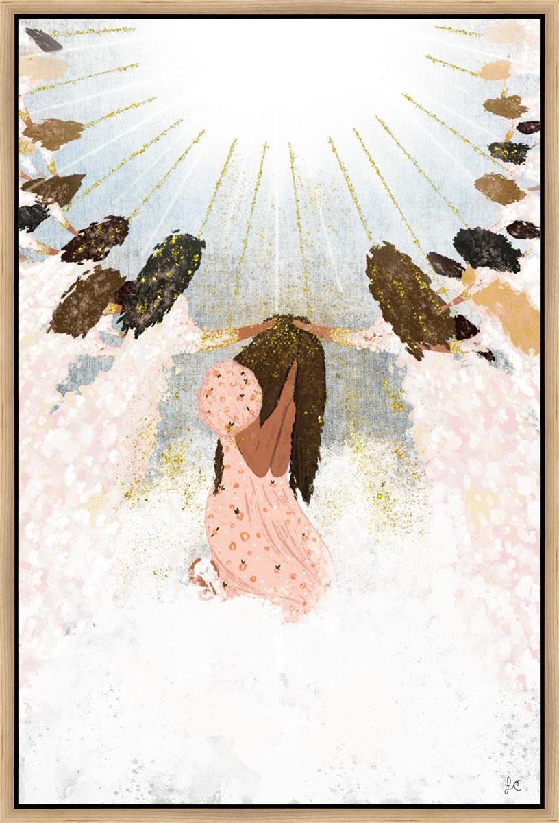 Our Float Frame is custom-made with a small gap between the frame and canvas to accentuate the edges of the artwork and give the illusion of a floating image within the frame.