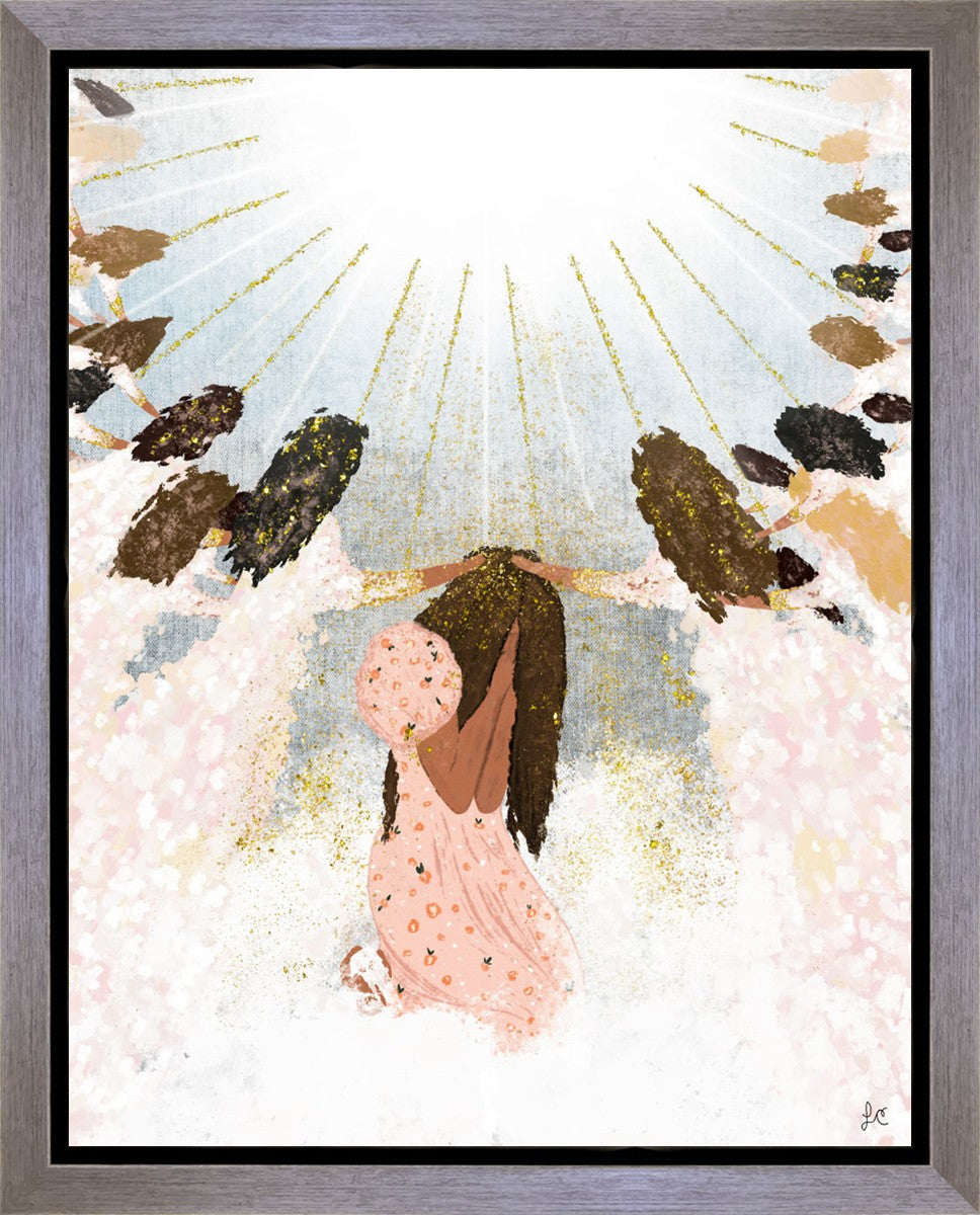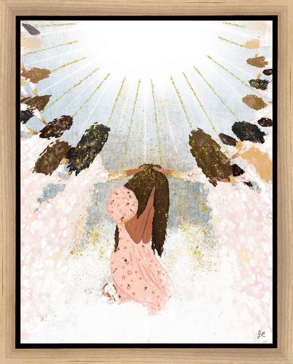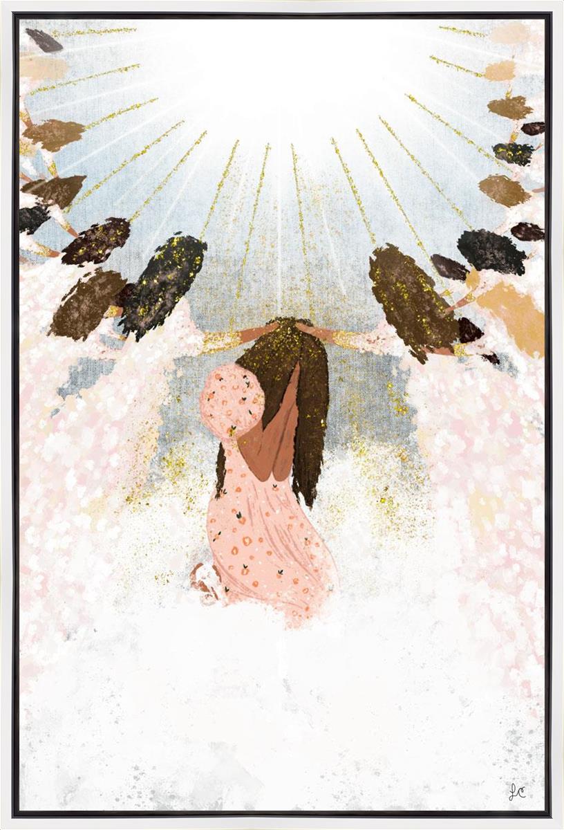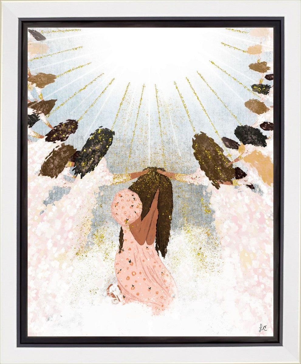 Our Float Frame is custom-made with a small gap between the frame and canvas to accentuate the edges of the artwork and give the illusion of a floating image within the frame.