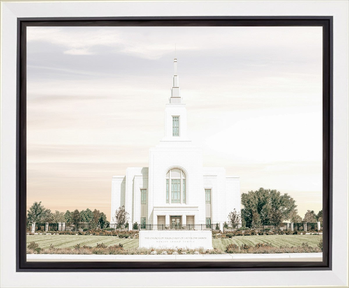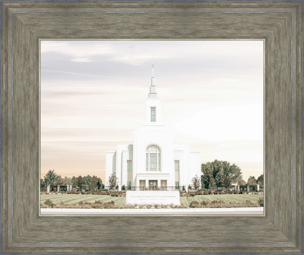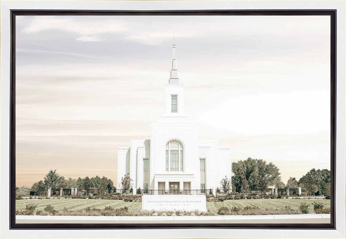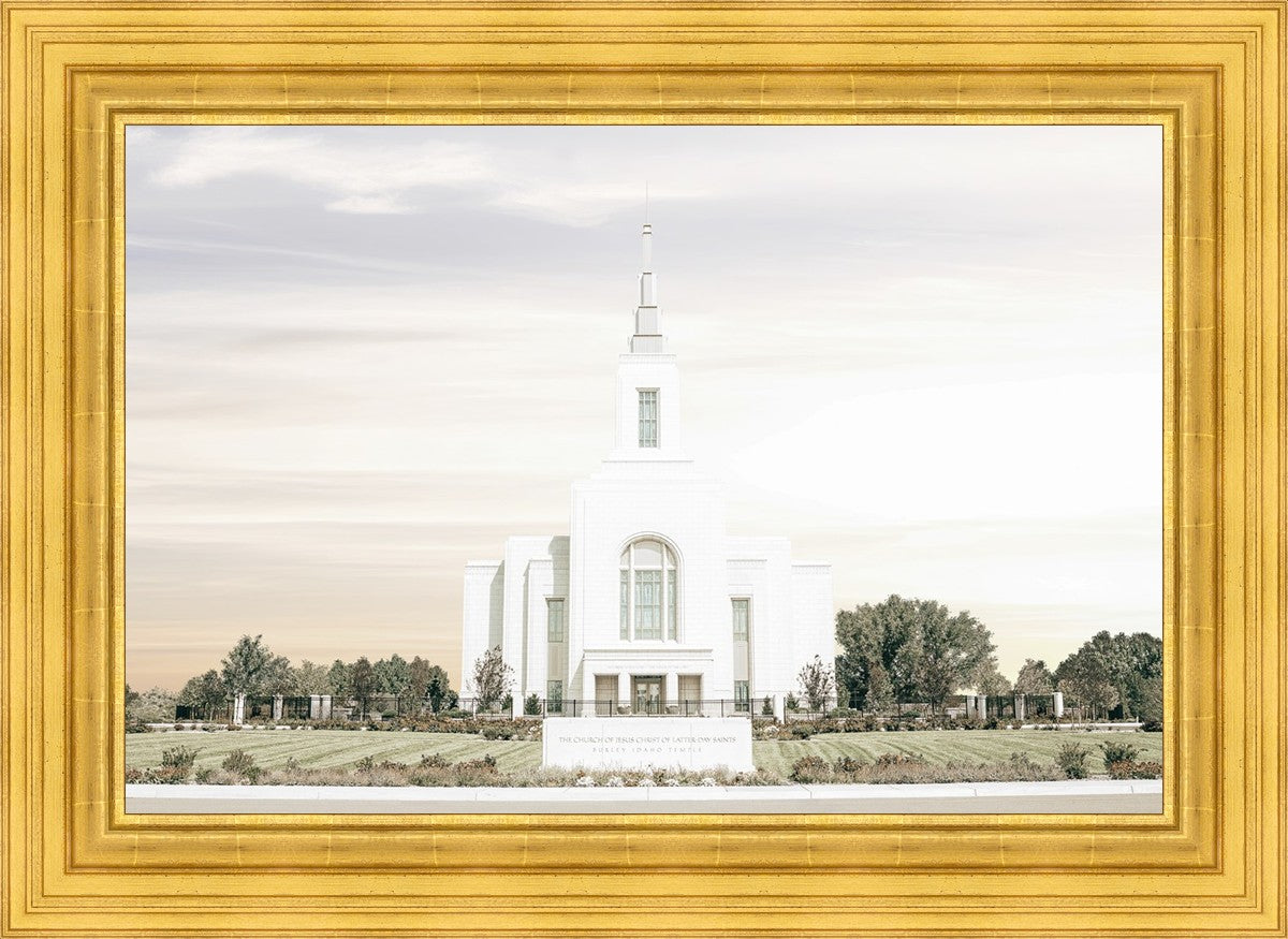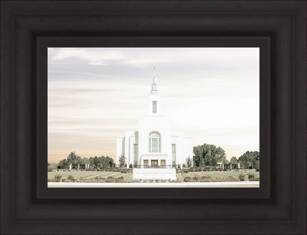 Each artistic rendition of the temple seeks to provide solitude by removing distractions while honoring its original design. Peace is found in the choice of a consistent, gentle color palette that embraces a natural, textured look and the timeless character that all great art should possess. The luminance and radiance in each image aim to infuse a heavenly ambiance into your living space.