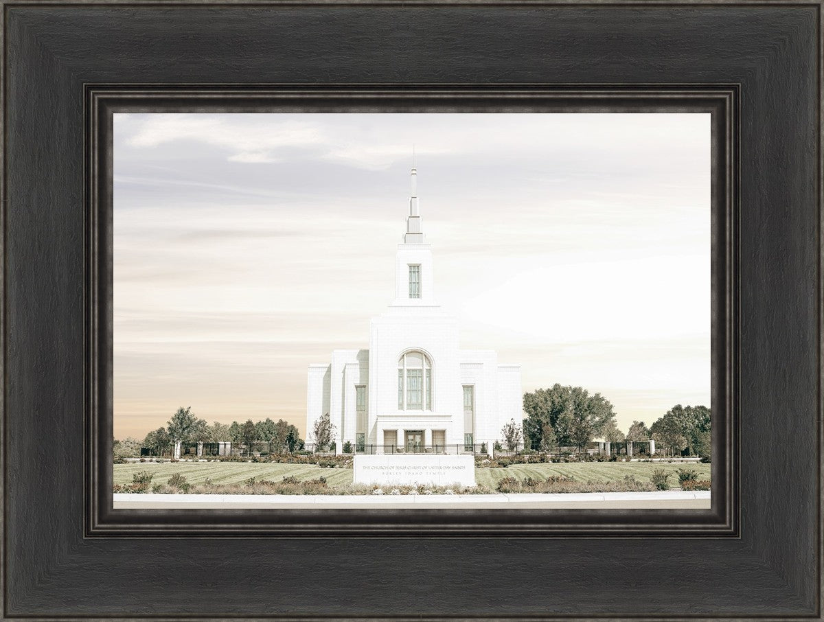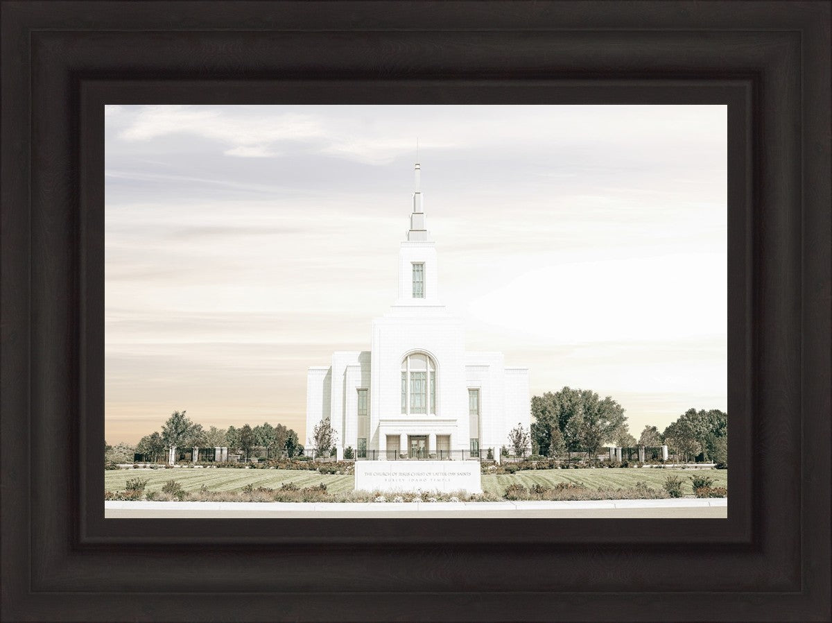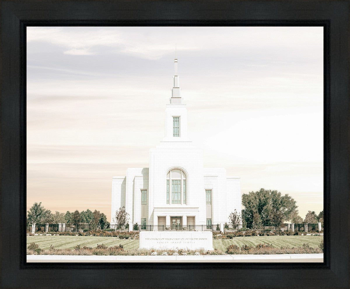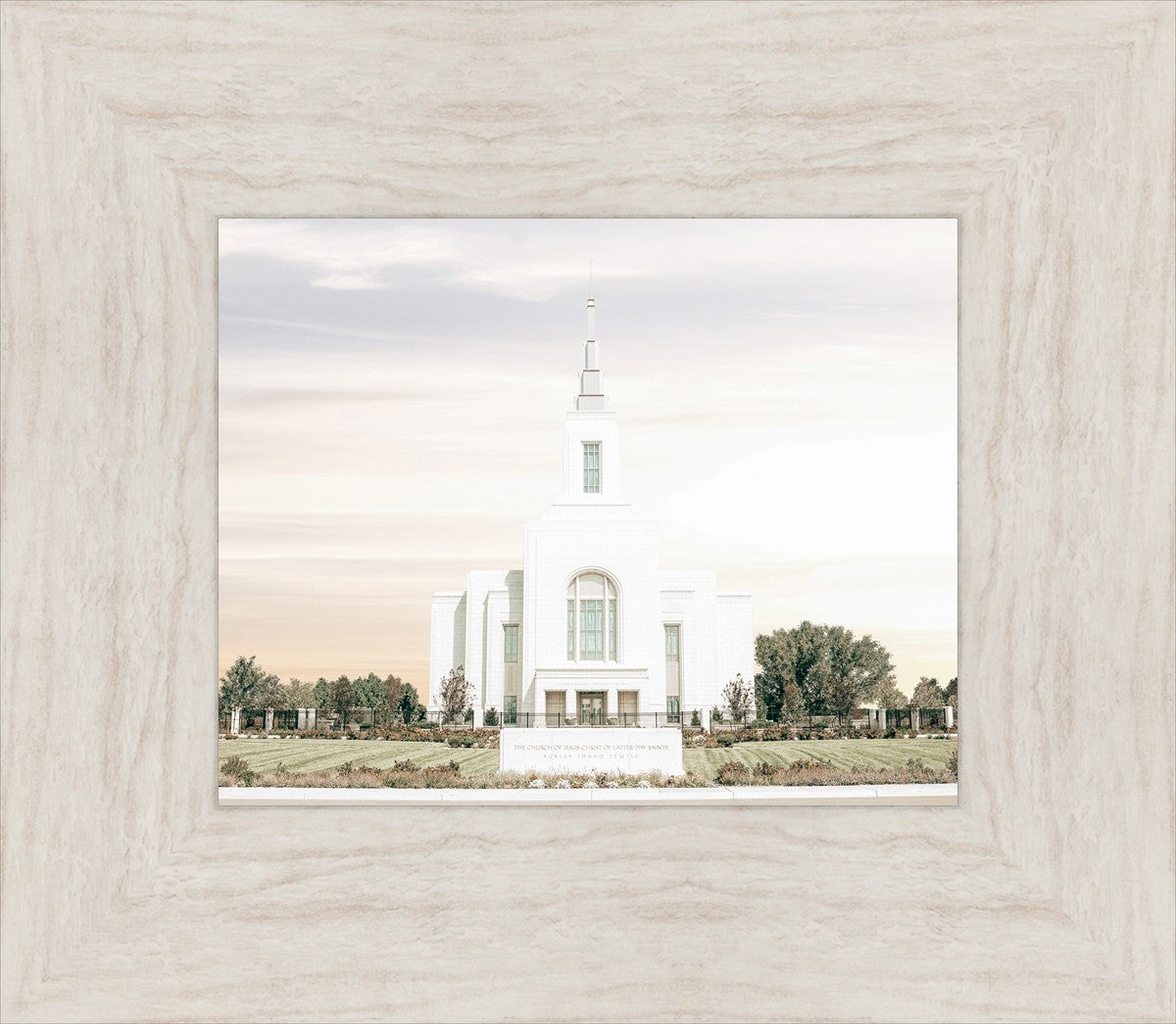 Each artistic rendition of the temple seeks to provide solitude by removing distractions while honoring its original design. Peace is found in the choice of a consistent, gentle color palette that embraces a natural, textured look and the timeless character that all great art should possess. The luminance and radiance in each image aim to infuse a heavenly ambiance into your living space.