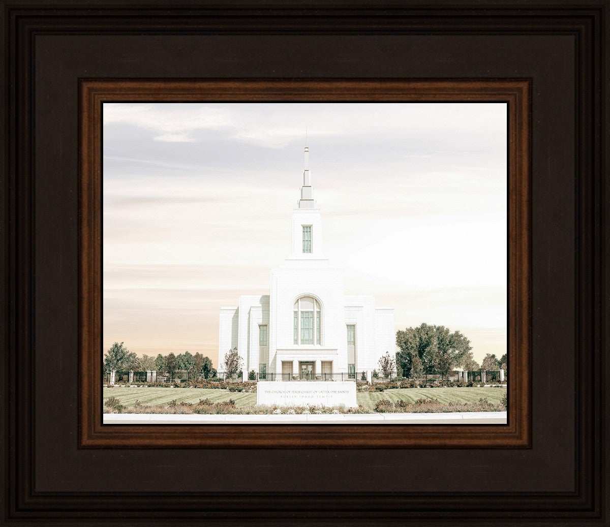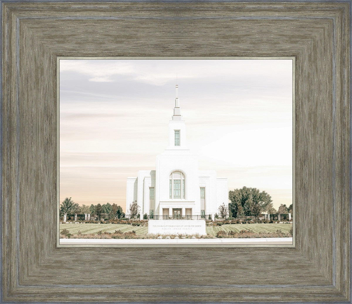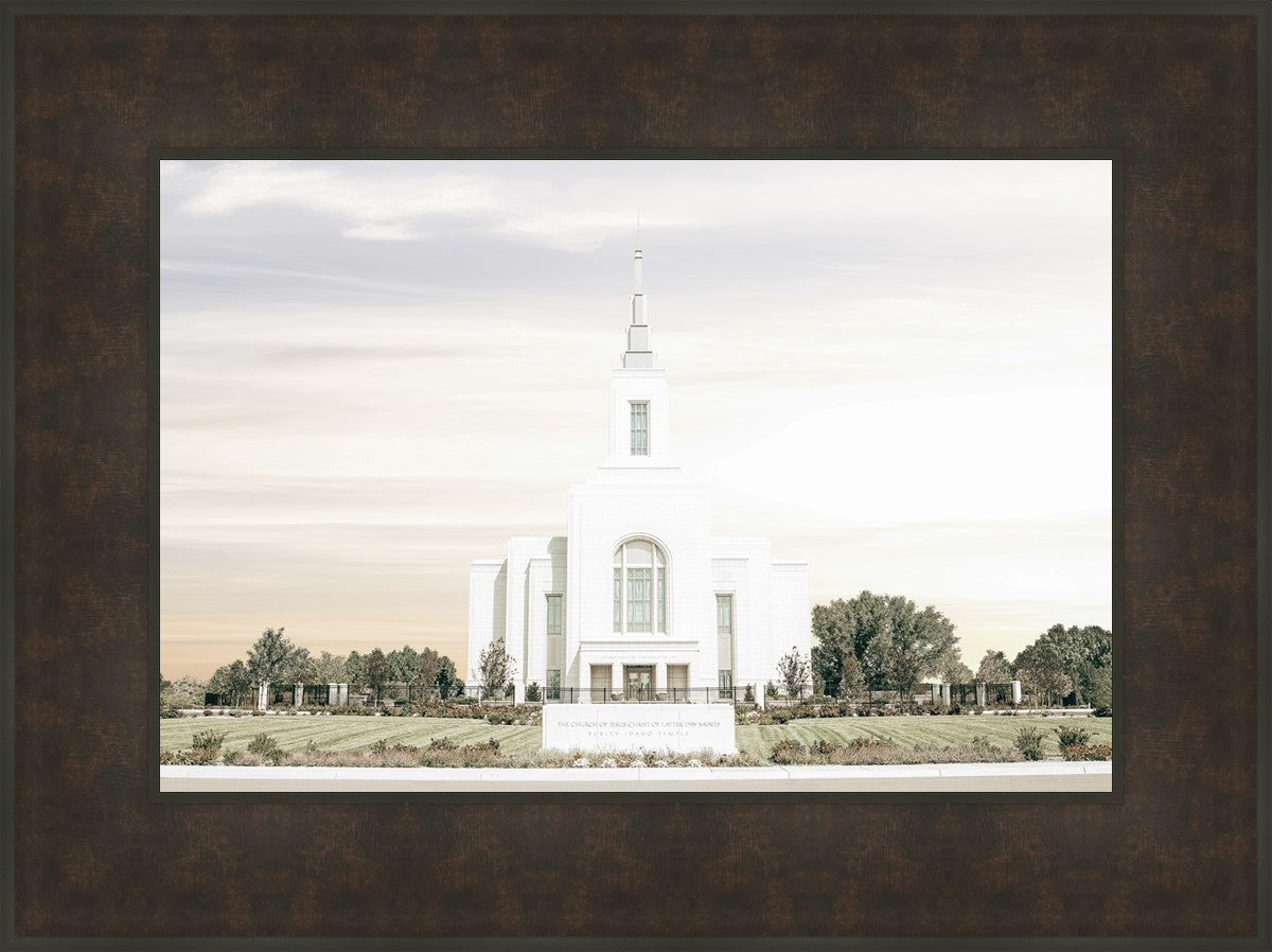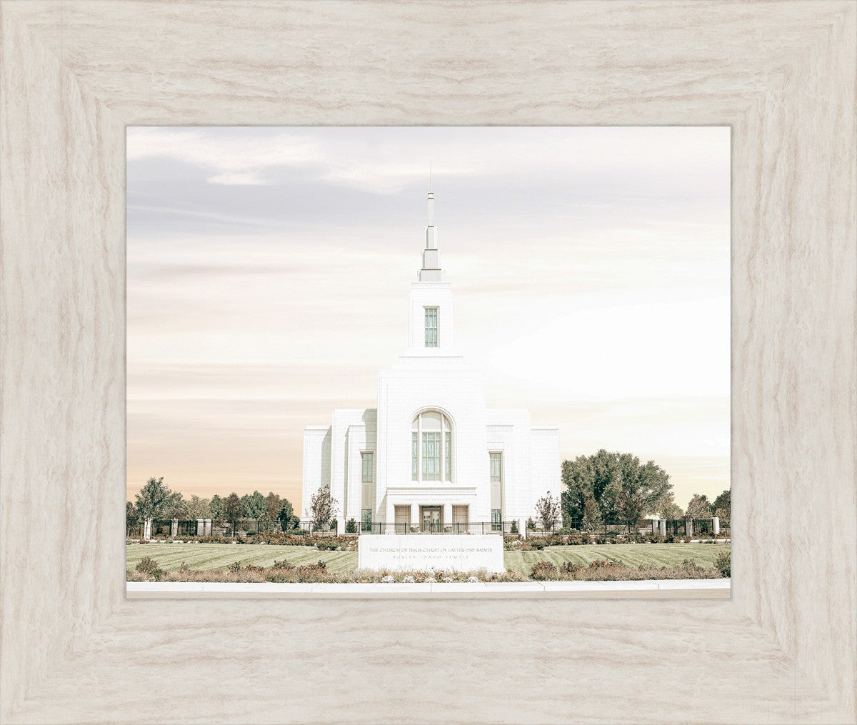 Each artistic rendition of the temple seeks to provide solitude by removing distractions while honoring its original design. Peace is found in the choice of a consistent, gentle color palette that embraces a natural, textured look and the timeless character that all great art should possess. The luminance and radiance in each image aim to infuse a heavenly ambiance into your living space.