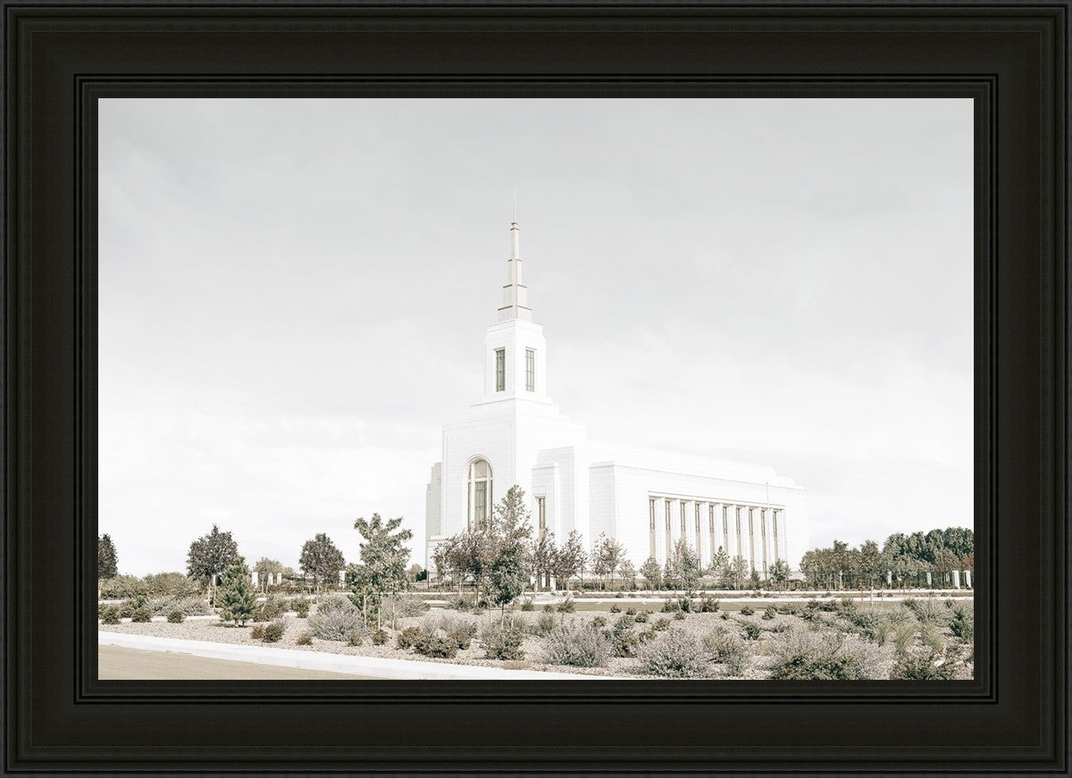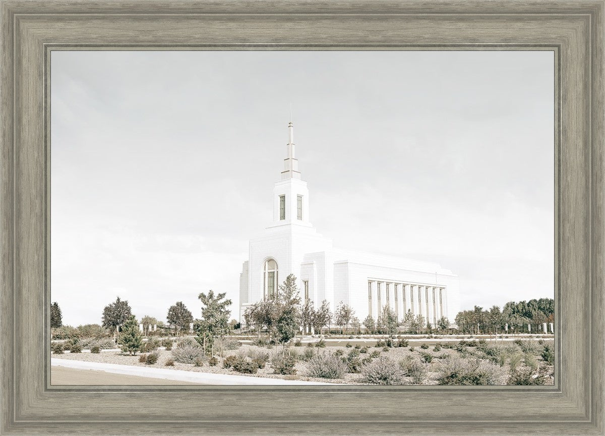 Each artistic rendition of the temple seeks to provide solitude by removing distractions while honoring its original design. Peace is found in the choice of a consistent, gentle color palette that embraces a natural, textured look and the timeless character that all great art should possess. The luminance and radiance in each image aim to infuse a heavenly ambiance into your living space.