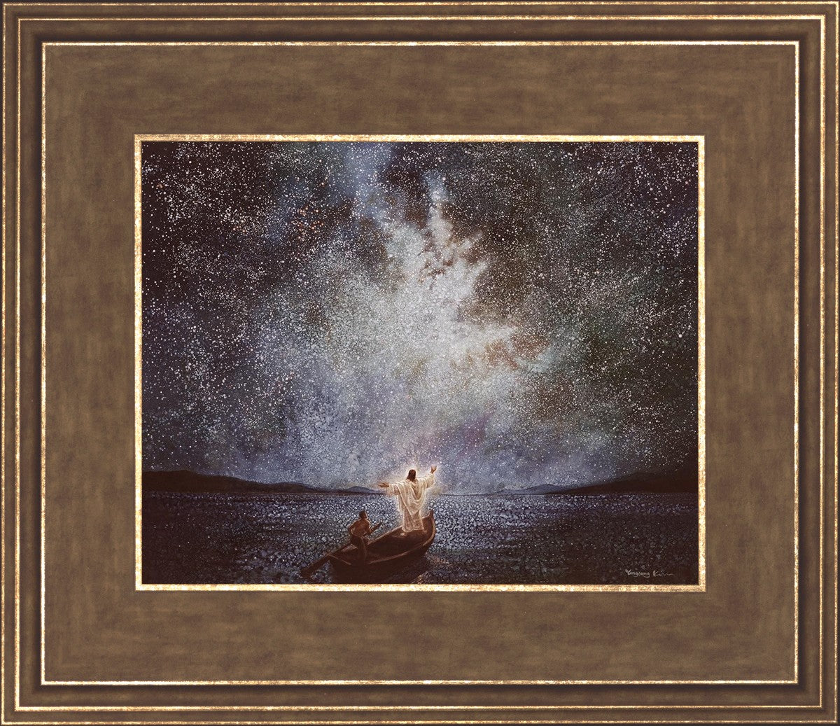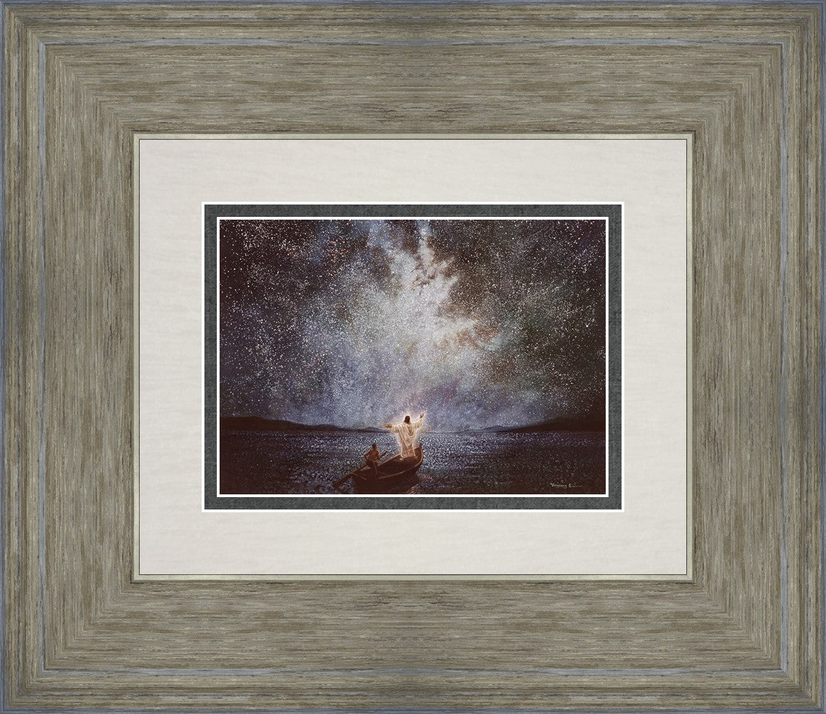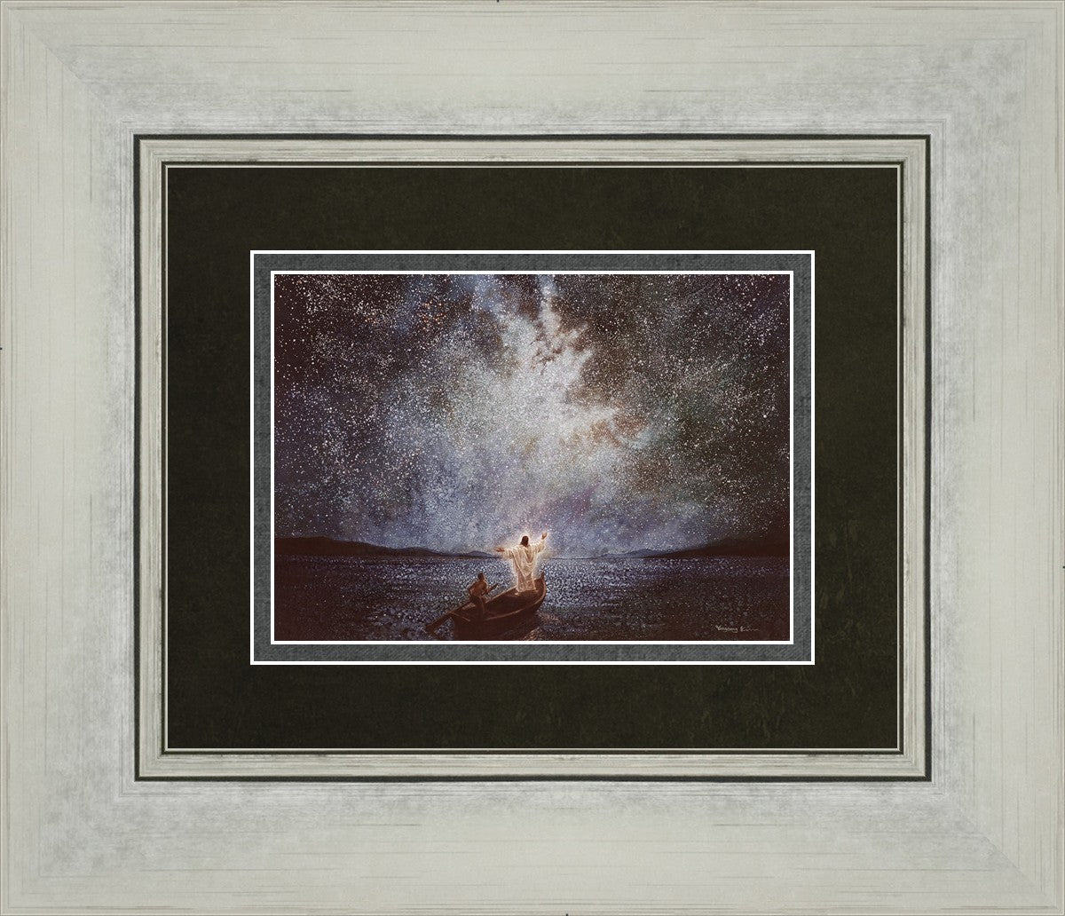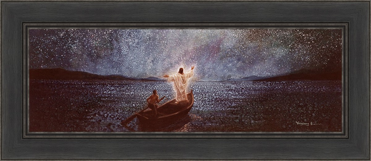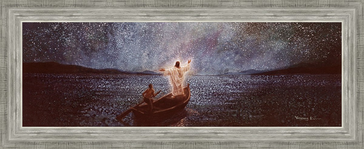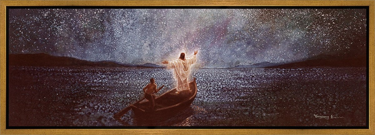 When Yongsung Kim envisioned the Calm and Stars painting, he was envisioning the power and grandeur of God. The Calm and Stars painting depicts Jesus calming the seas during a great storm, & then seeing stars and galaxies after the calm. How amazing it would have been to be one of the disciples on the boat when Christ calmed the raging seas. This painting by Yongsung Kim teaches us that if Christ can calm the raging seas and showcase stars and galaxies within a matter of minutes; Christ can surely calm the raging seas in our own personal lives. This painting by Yongsung Kim gives hope, courage, and peace to all who see it.