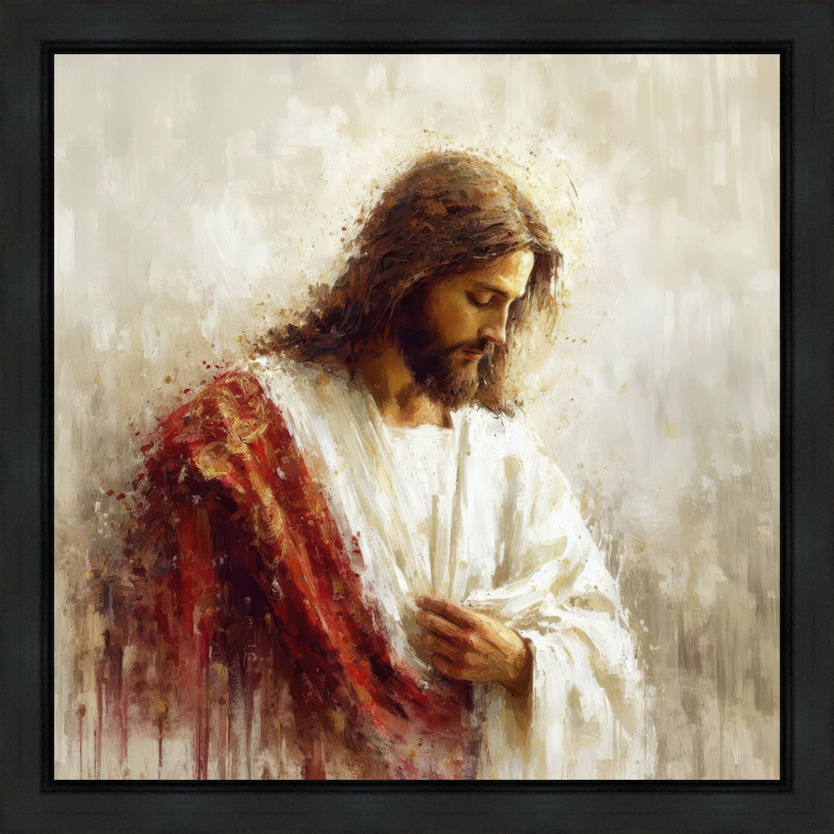 The red robes serve as a reminder of His atoning sacrifice, each fold representing the wounds He bore to redeem and heal us. Through this piece, we hope to invite others to reflect on His grace—the source of peace, strength, and transformation. May it serve as a reminder that Christ has already carried our burdens and that through Him, we can find true healing.
