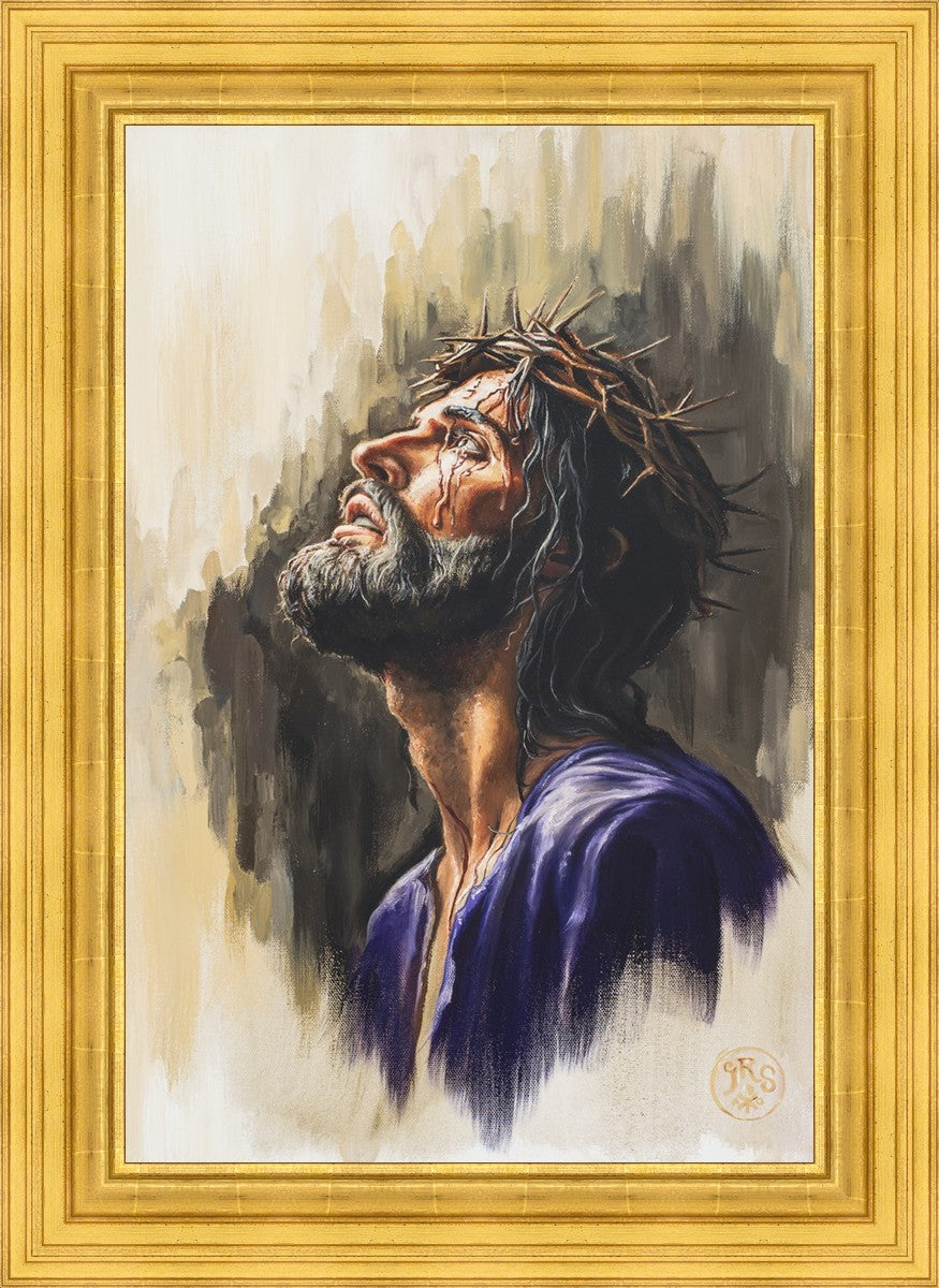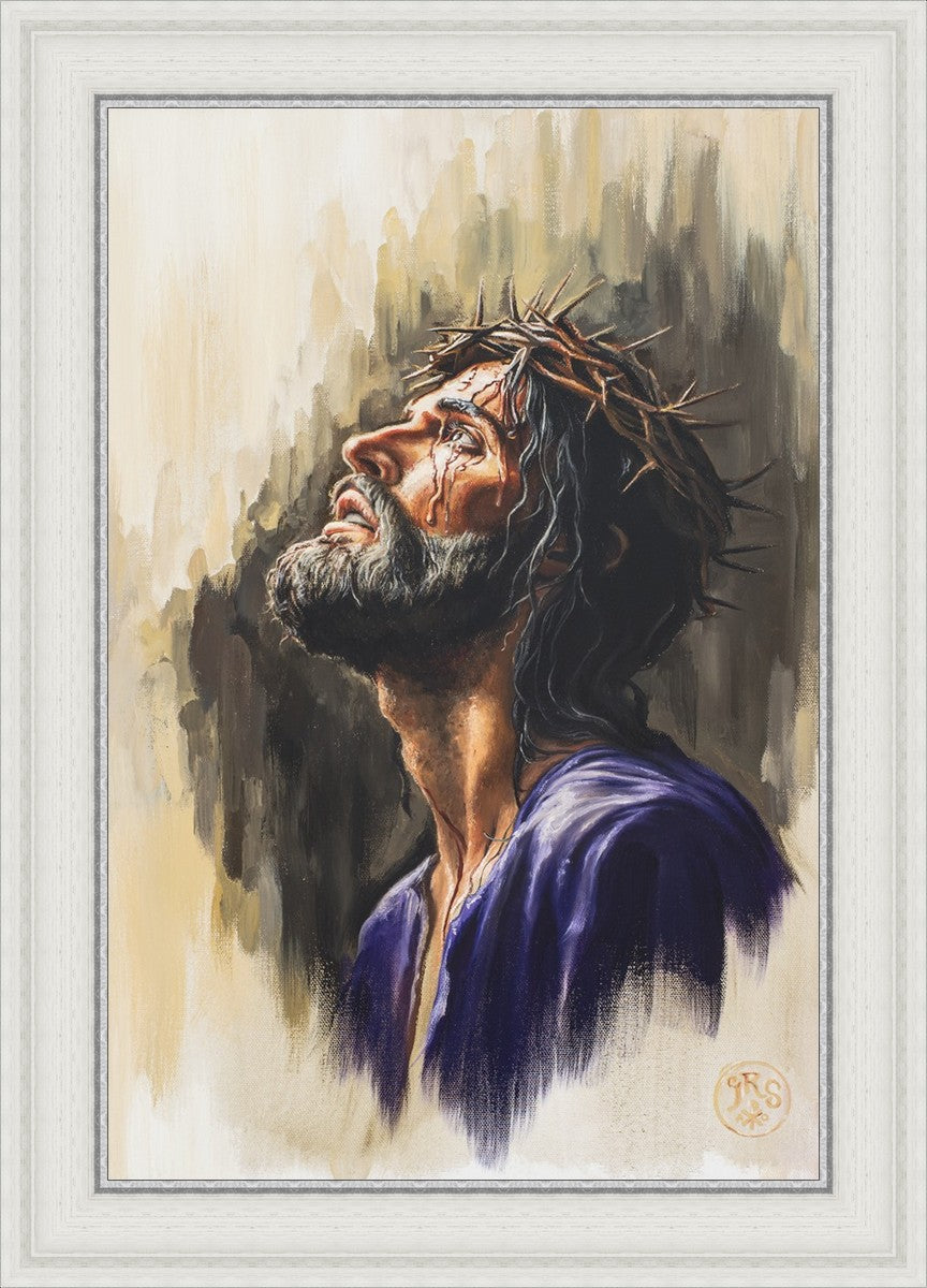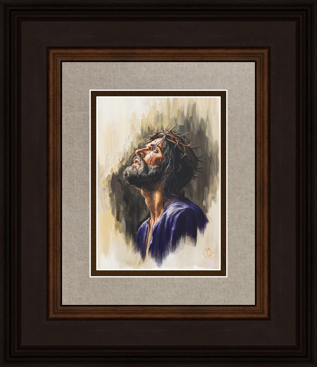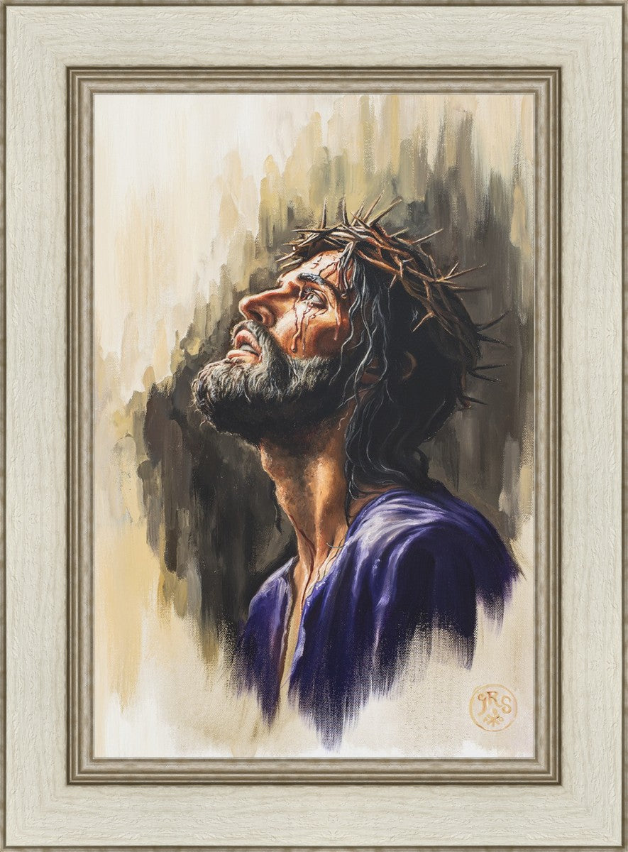 "Coronation II" is a depiction of Christ with the crown of thorns being placed upon his head by the roman soldiers. In this artwork, Christ is depicted with his chin held high. This choice in posing demonstrates how even while bearing the most painful form of tortuous murder in the ancient world, Christ, as our sovereign Lord, has not been overcome by those who oppose him, but rather is actively submitting himself to these abuses as a means for expiating the sins of the world.