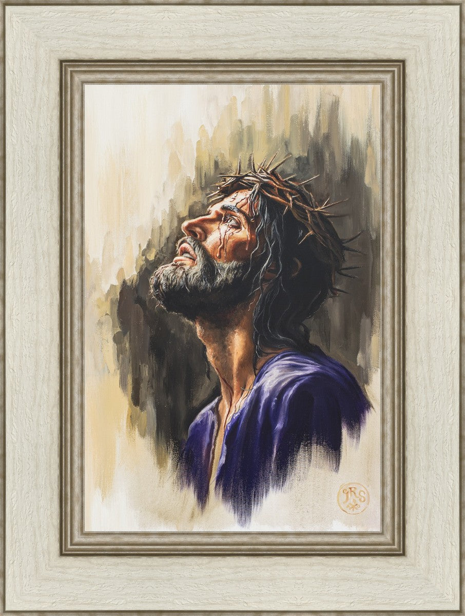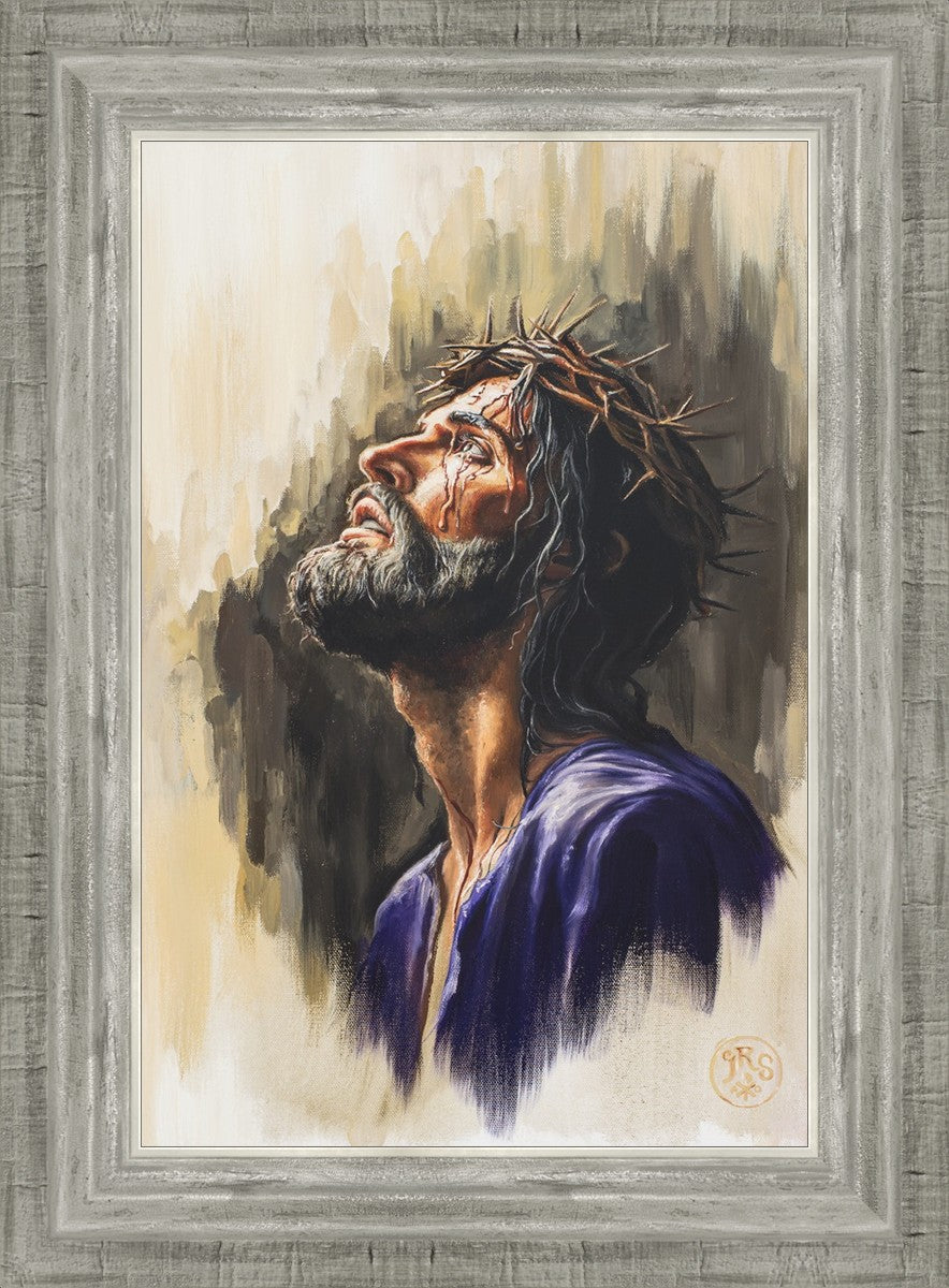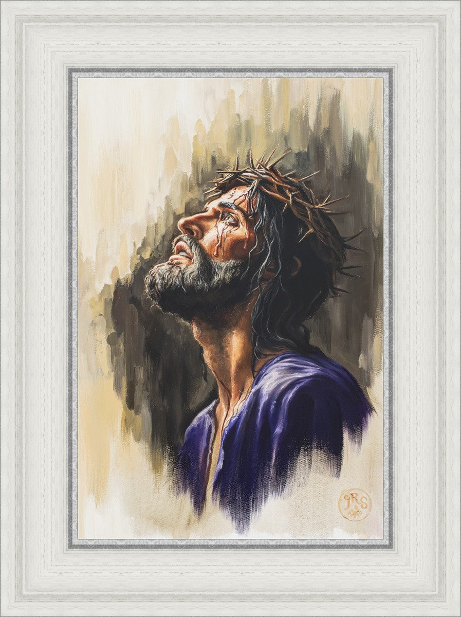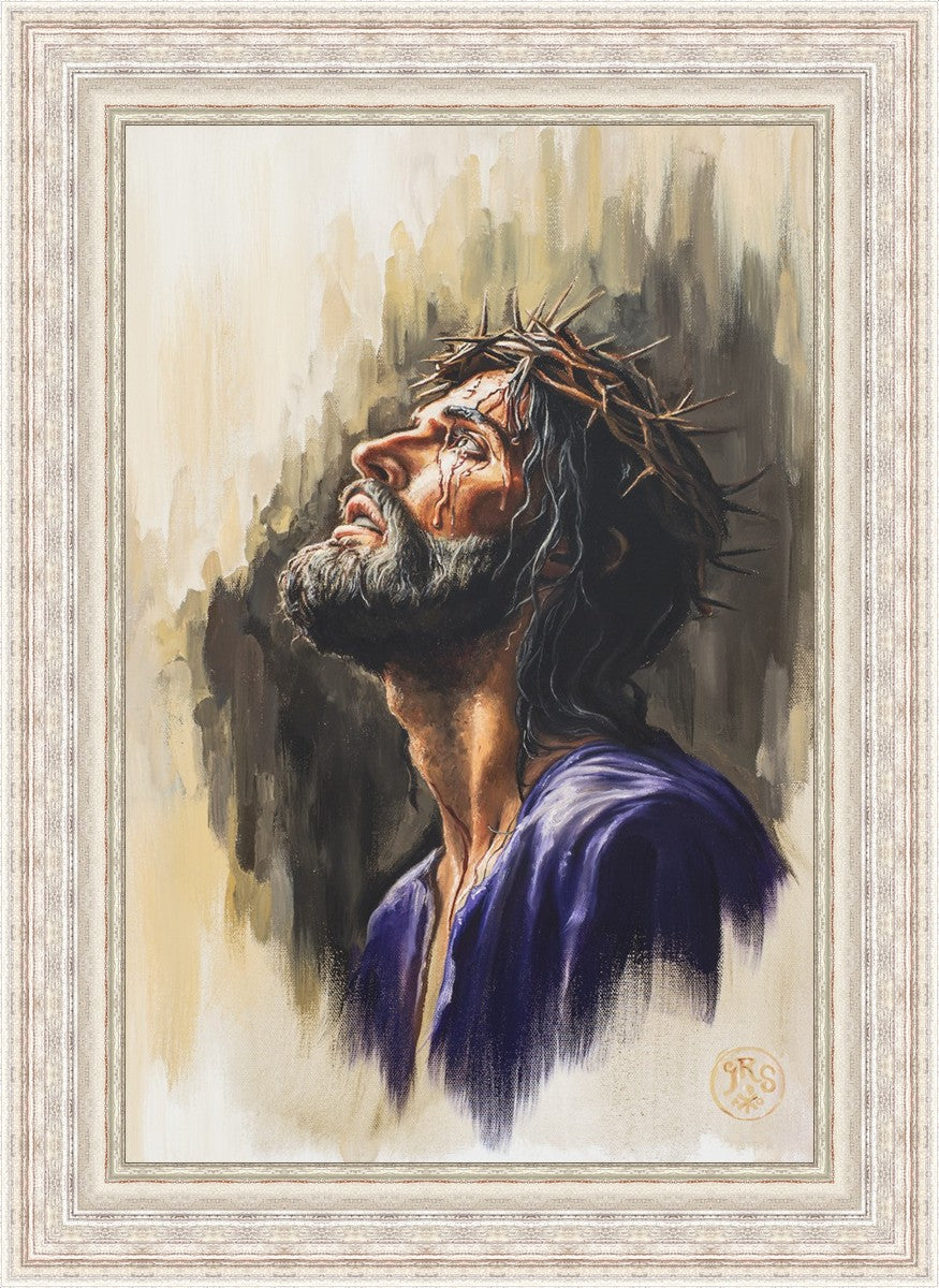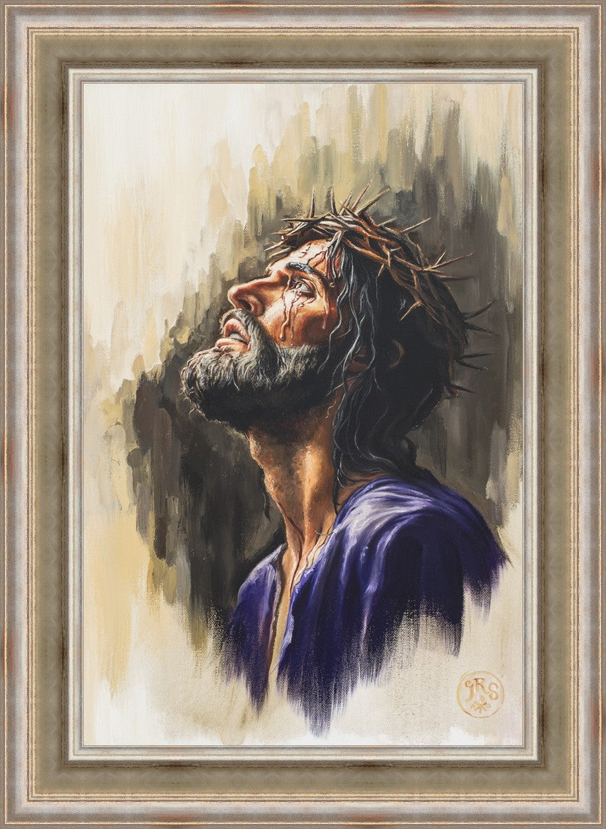 "Coronation II" is a depiction of Christ with the crown of thorns being placed upon his head by the roman soldiers. In this artwork, Christ is depicted with his chin held high. This choice in posing demonstrates how even while bearing the most painful form of tortuous murder in the ancient world, Christ, as our sovereign Lord, has not been overcome by those who oppose him, but rather is actively submitting himself to these abuses as a means for expiating the sins of the world.