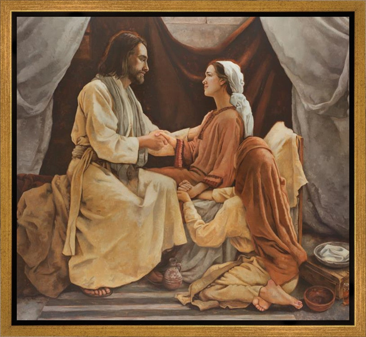A preeminent realist painter, Sandy – as do all great masters – carries on the traditions and canons of classical art ideology practiced from the Renaissance down through 19th century. Her paintings and drawings demonstrate her virtuosity, a manifestation of unparalleled technical excellence, which result in great works of lasting beauty. Sandy’s unsurpassed knowledge of anatomy, color theory and design, facilitate her portrayal of the human condition – in all its complexities – with breathtaking elegance and mastery. Sandy’s feels privileged to paint her testimony through her love of the scriptures, and passion for religious figurative painting.