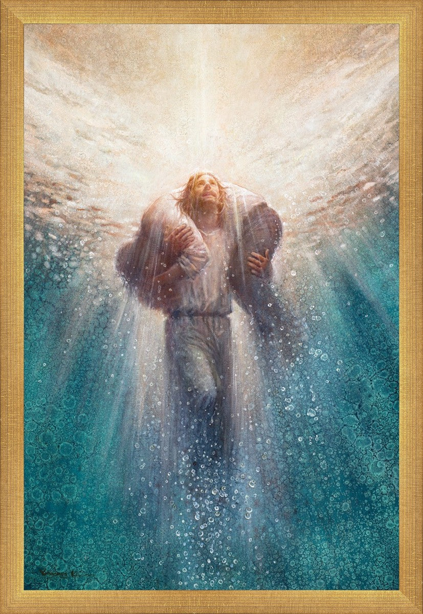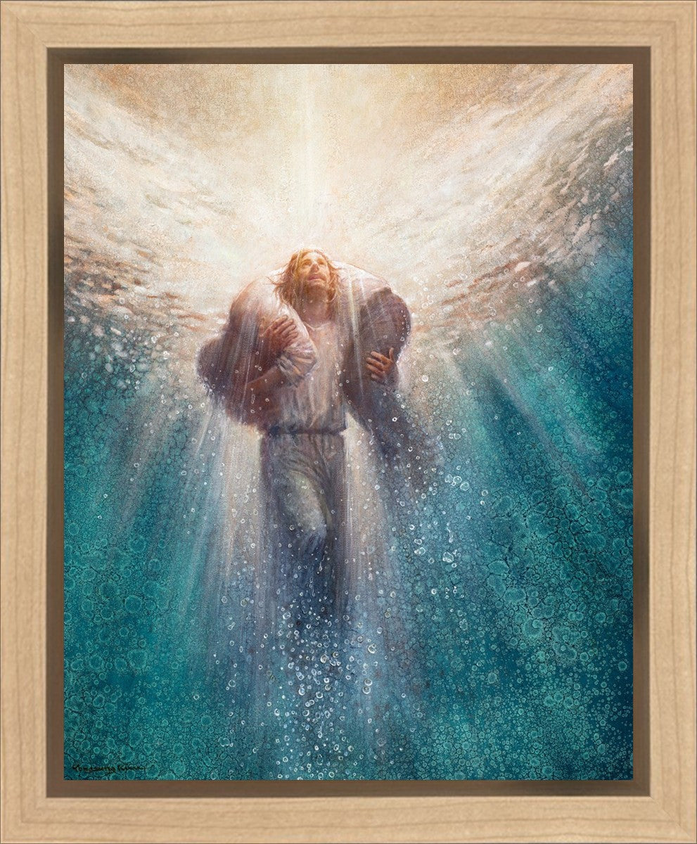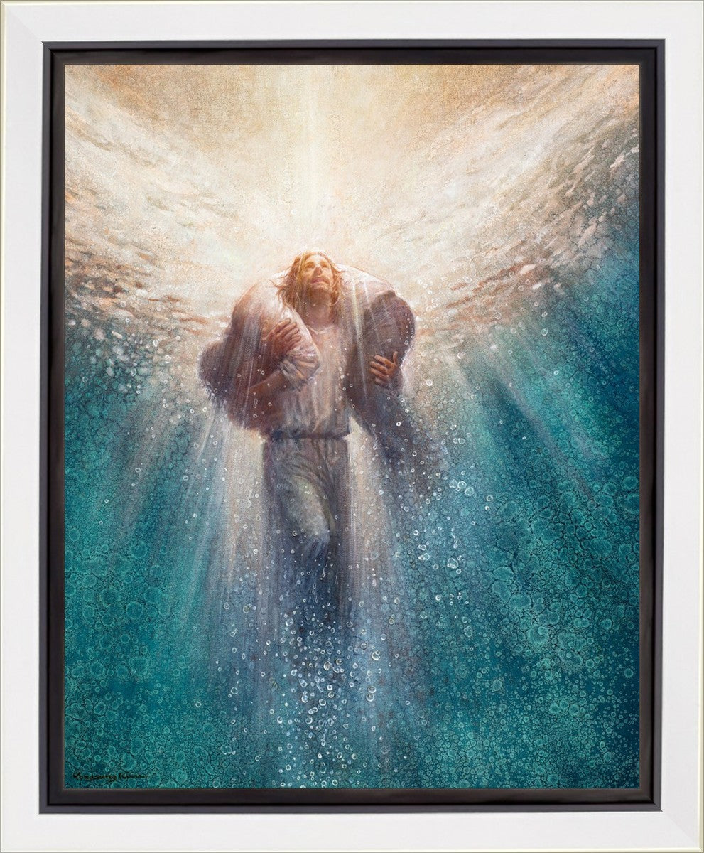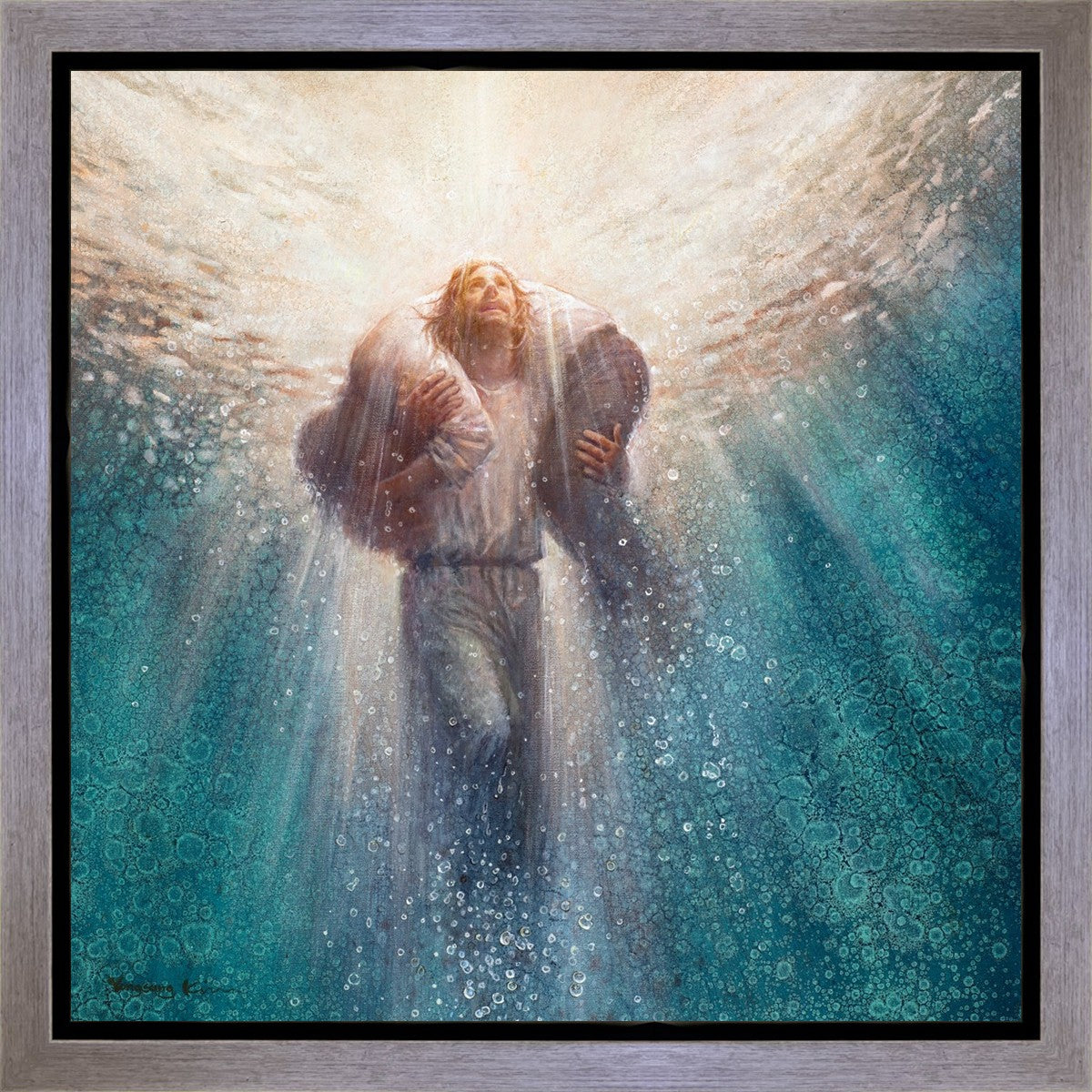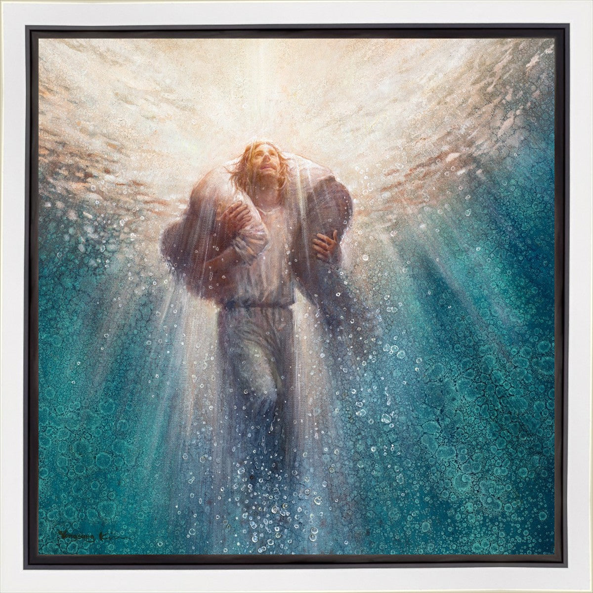 Additionally and to reemphasize, one of Yongsung Kim's most beloved topics to paint is that of Jesus walking on water. Christ reaching in the water to save Peter from drowning is one of the greatest stories in the Bible. Jesus walking on water and then reaching in the water to save His drowning disciple is a parable for us all. It's an awe inspiring example of Christ, His character and love for each of us.