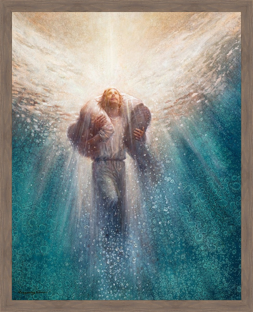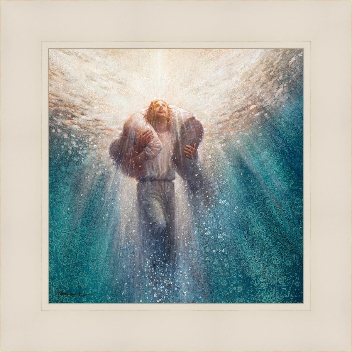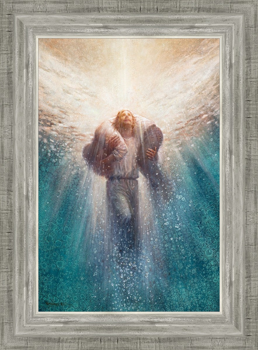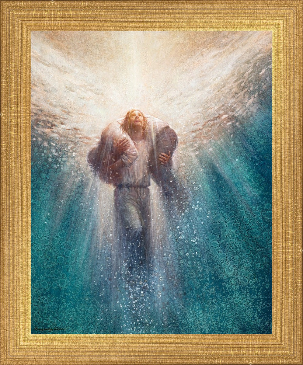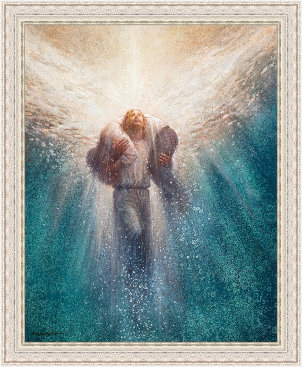 Additionally and to reemphasize, one of Yongsung Kim's most beloved topics to paint is that of Jesus walking on water. Christ reaching in the water to save Peter from drowning is one of the greatest stories in the Bible. Jesus walking on water and then reaching in the water to save His drowning disciple is a parable for us all. It's an awe inspiring example of Christ, His character and love for each of us.