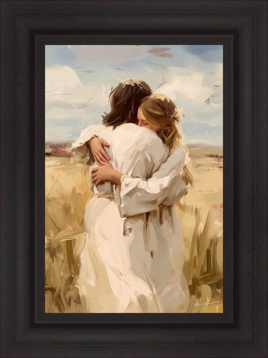 Similar to Arm's of Mercy, I wanted this image to connect people visually and emotionally to Christ's love. His divine embrace surrounds us on an emotional and spiritual level. As we accept the gift of his divine atonement we immediately feel wrapped up in his arms and comforted by Him who took away death's sting and sin's burden. He has encircled me with this love as I have leaned on his strength--and He longs to do the same for you.