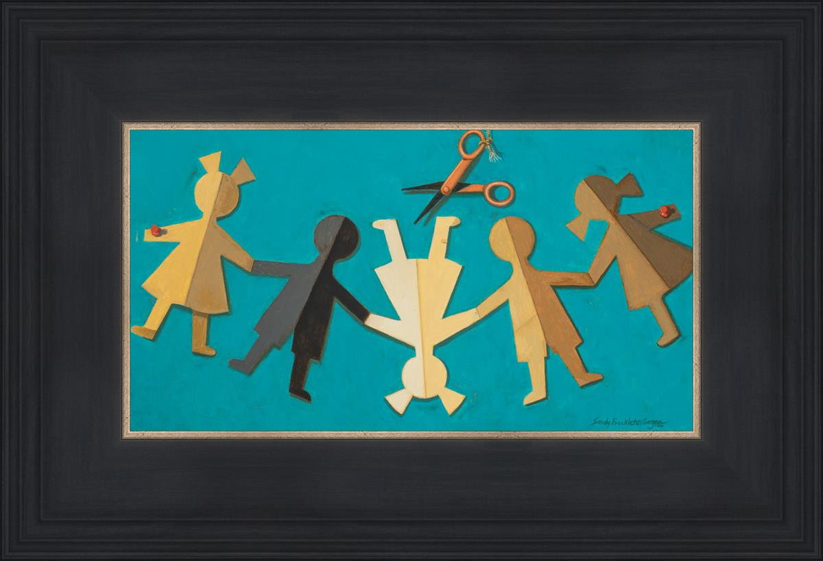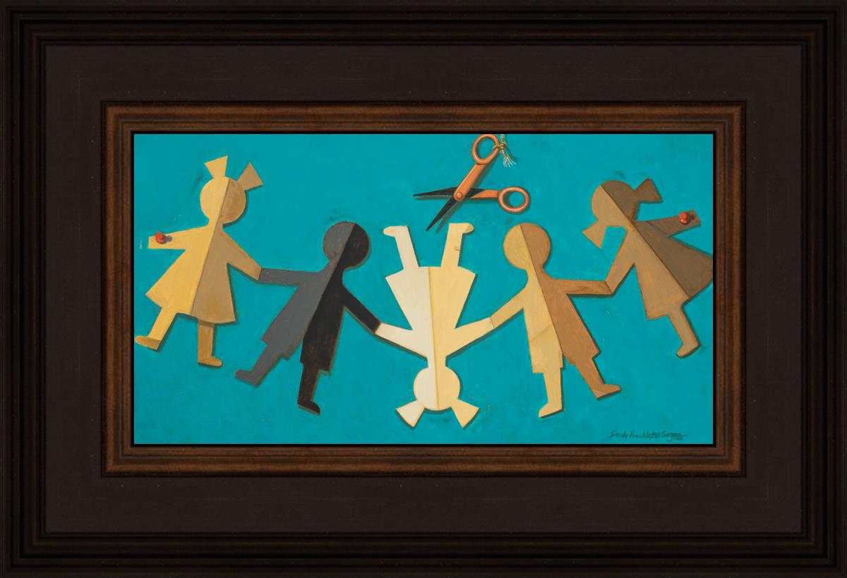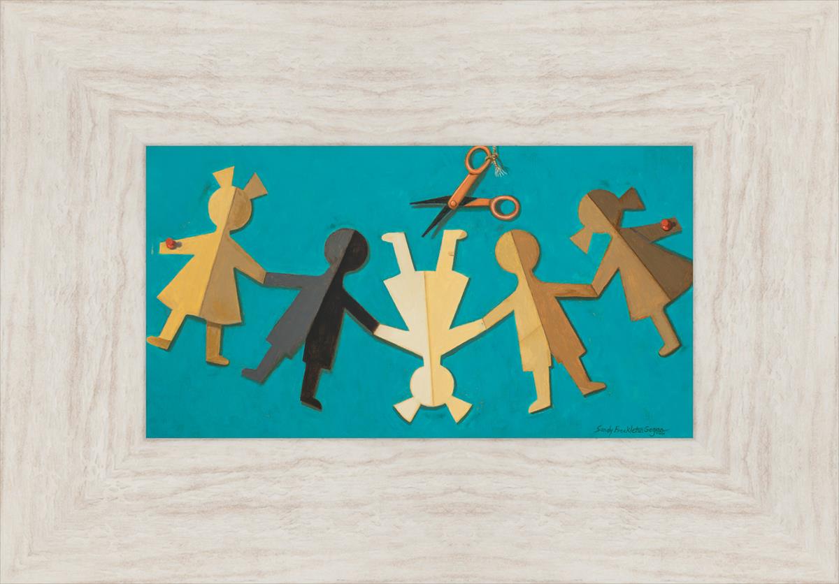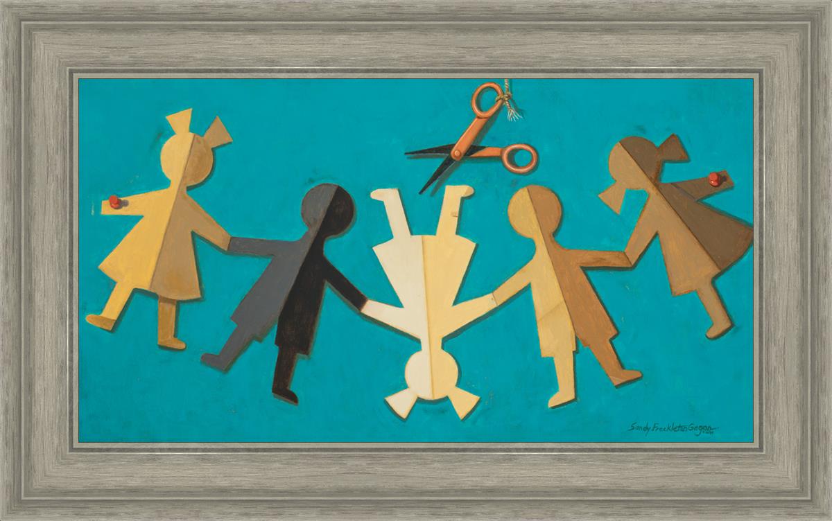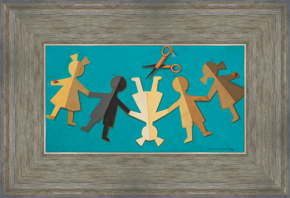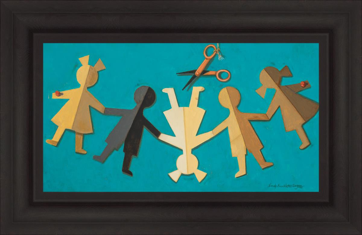 Later in the evening I reflected on my conversation with Bonnie about the golden rule. I remembered making paper doll chains as a little girl. The concept for this painting coalesced.