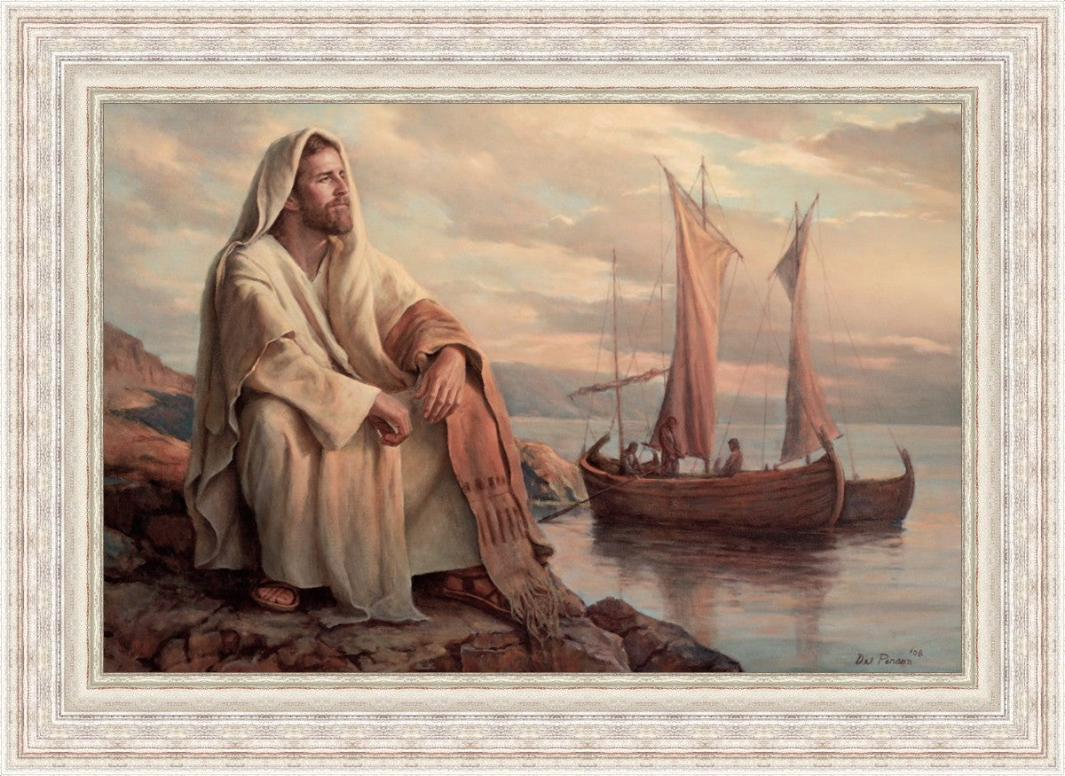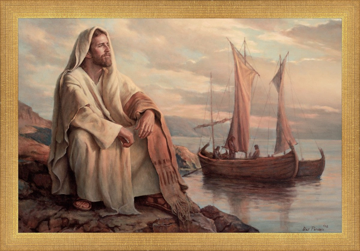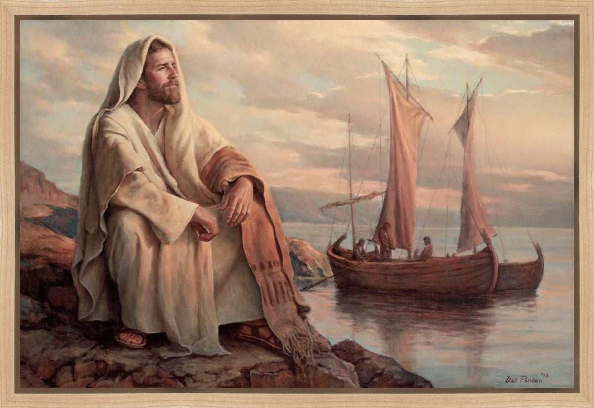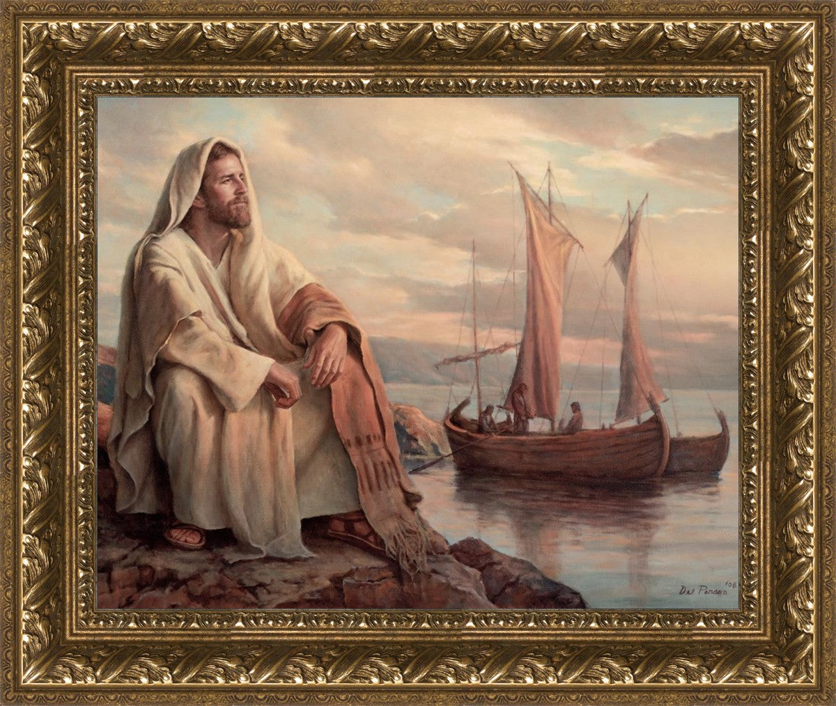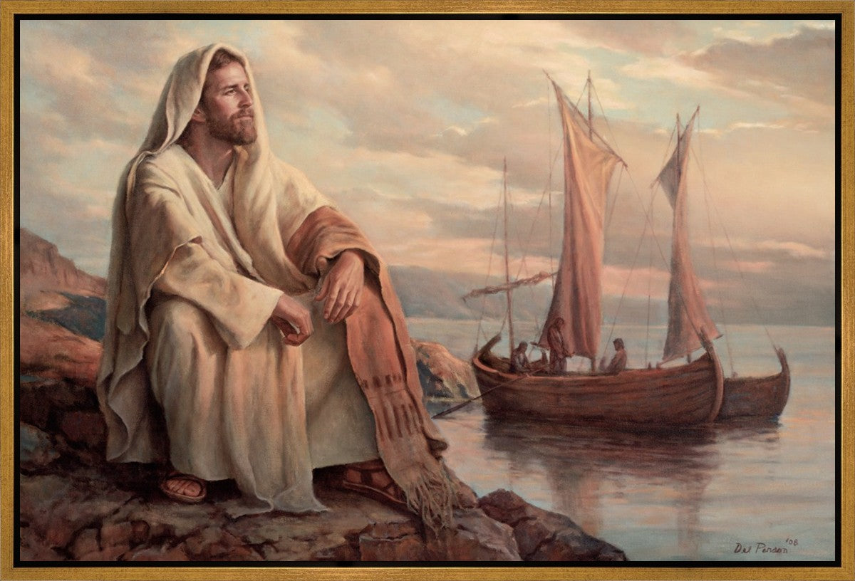 In this painting, Facing Eternity, by Del Parson, we see Christ pondering. Perhaps he was thinking about all there was to do. Perhaps he was thinking of the torture to come as he became the sacrifice for all at the Cross. One thing we know for certain, he loved the people then and he loves us now. Christ came to give us life to the fullest in eternity with God. His thoughts were always Facing eternity.