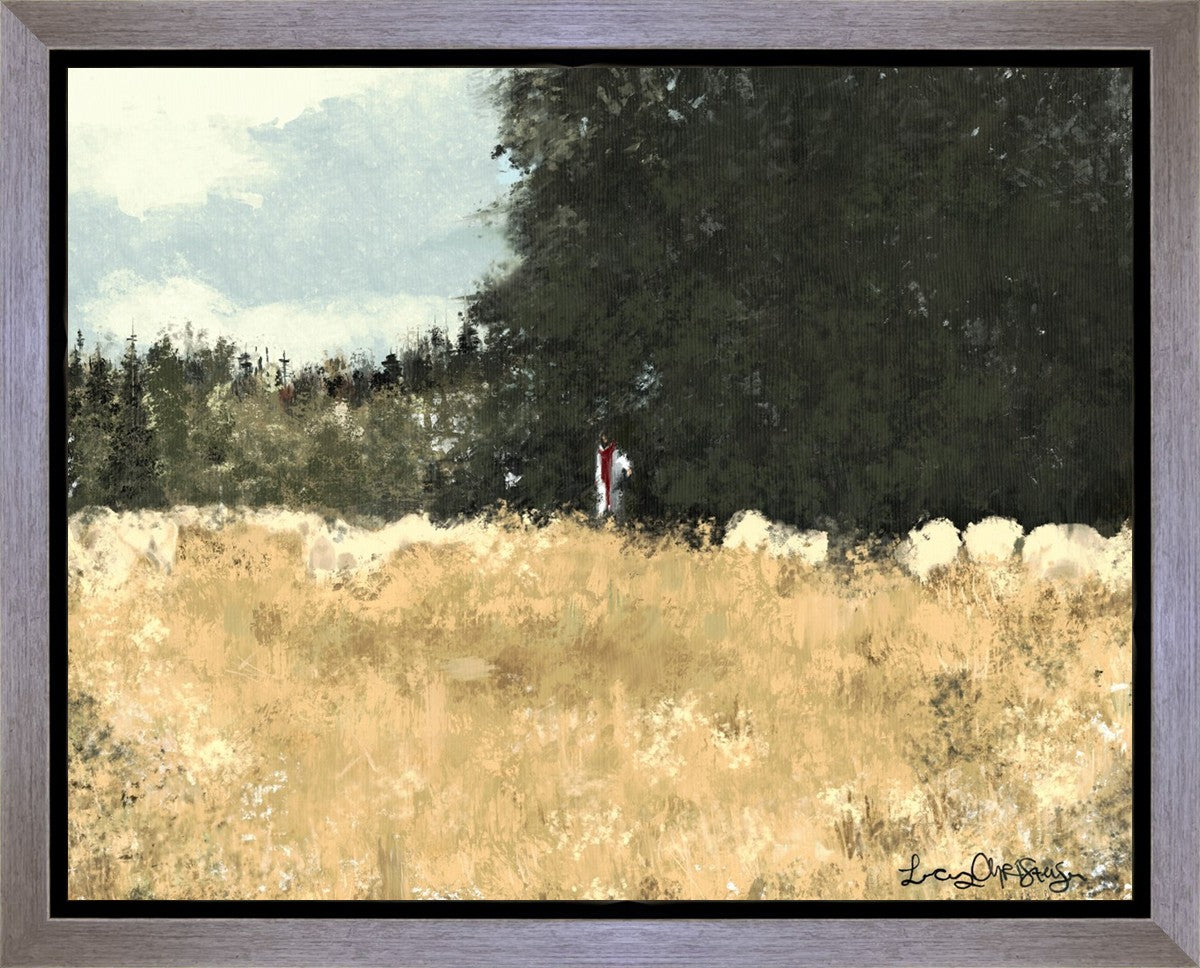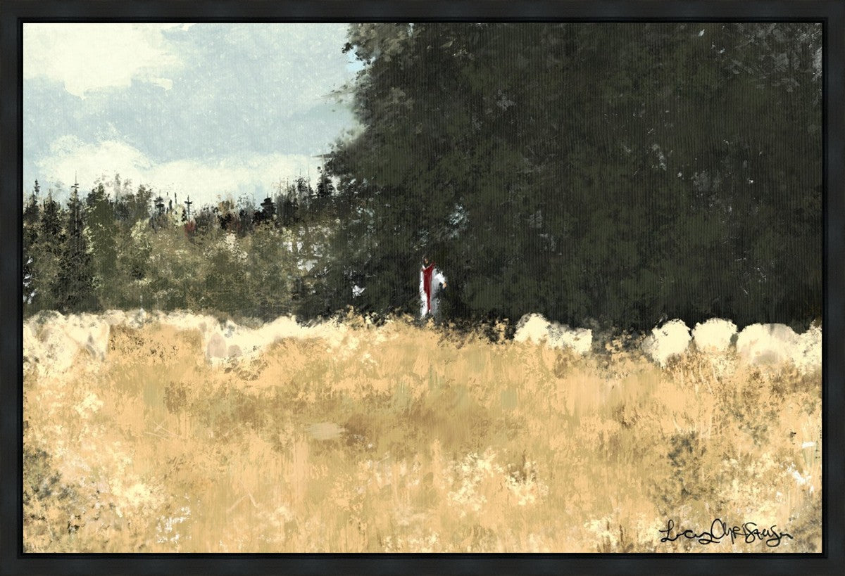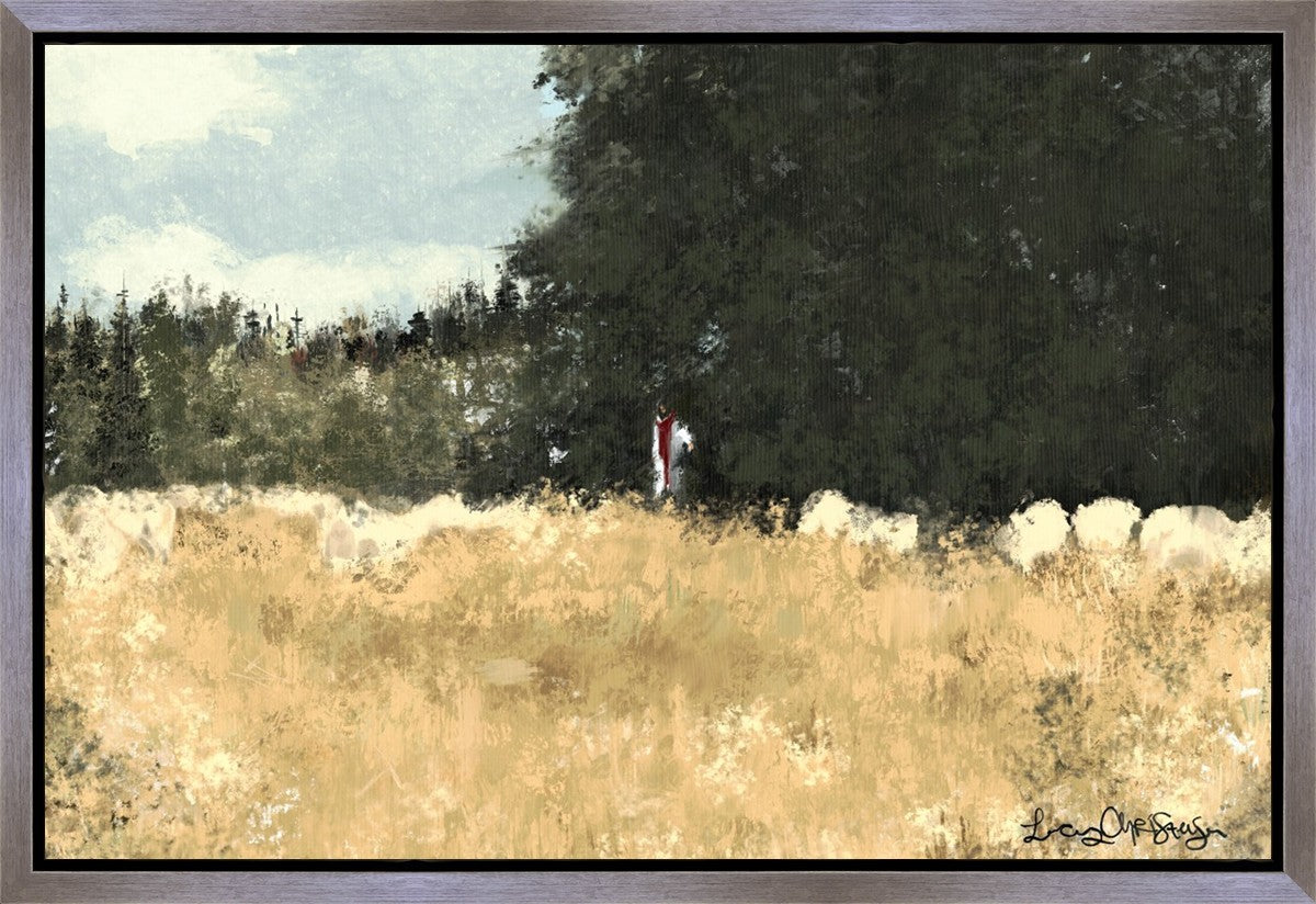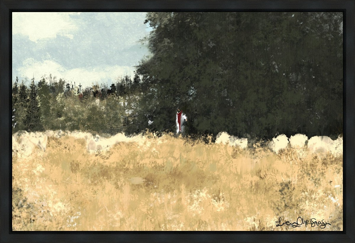 This Painting simply means a lot to me. Again it was something that I let the Spirit guide me on. It seemed as though I always came to this painting when I was trying to figure something out.. most of the time it was me trying to over come Fear about one thing or another. Up until yesterday there was no Christ at all in this painting. I kept wondering why this, its not coming together for me.. I love sheep and nature but Where’s Christ I feel like he should be here. Then I saw him perfectly. It was bone chilling and I covered my mouth even. There he was coming through out of the beautiful dark trees and I could see him perfectly. The whole painting came together with my thoughts I’d been having. Faith over Fear! Christ always triumphs!It was like I opened a door and I felt that happiness and excitement that was waiting.. and the joys I felt seeing Christ in this painting was just the best yet in all my creations. How many times have I simply thought, but where are you? I’ve had complete Faith, what more? And in the nick of time.. There he is. I always feel so bad when I have those moments but they are real.. Just like, Jesus The Christ is real.