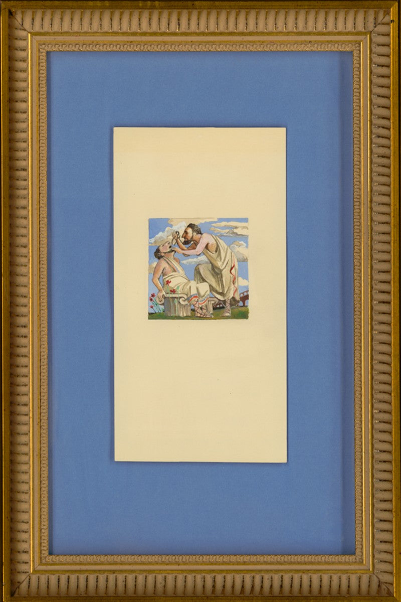 Original Artwork of Gouache on Paper 3 x 3 artwork on 5.5 x 10 paper. Framed at 12.5 x 18.5.