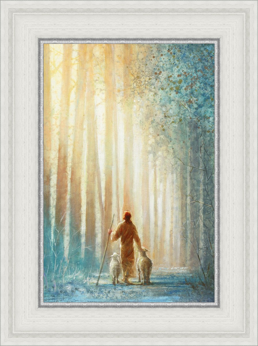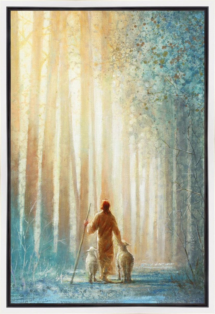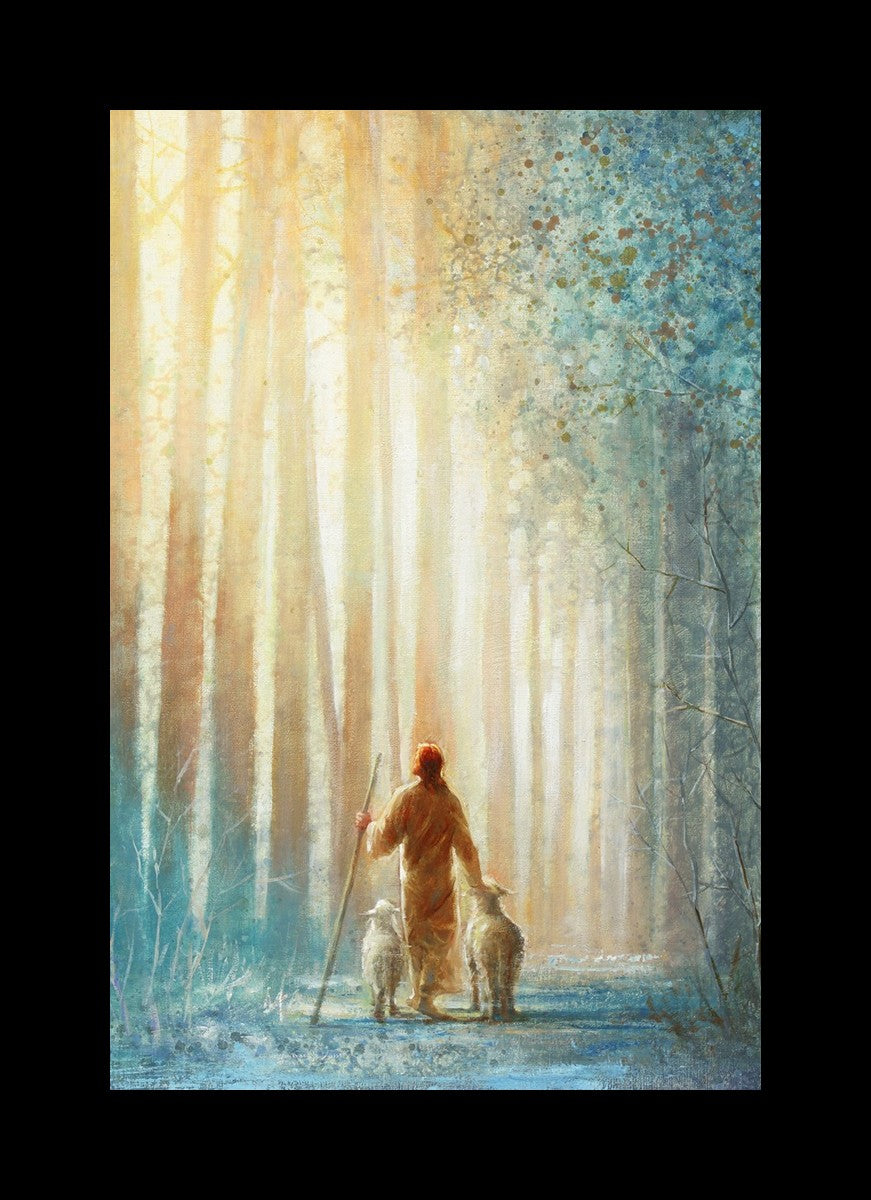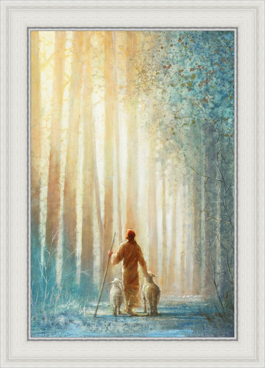 "He Leadeth Me" by Yongsung Kim captures Jesus' guidance as depicted in John 10, where He leads and protects His sheep. This poignant artwork showcases Jesus walking with a sheep, symbolizing divine guidance and companionship through life's storms. Yongsung Kim's renowned Christian art brings peace, calm, and joy, enriching lives with spiritual inspiration.