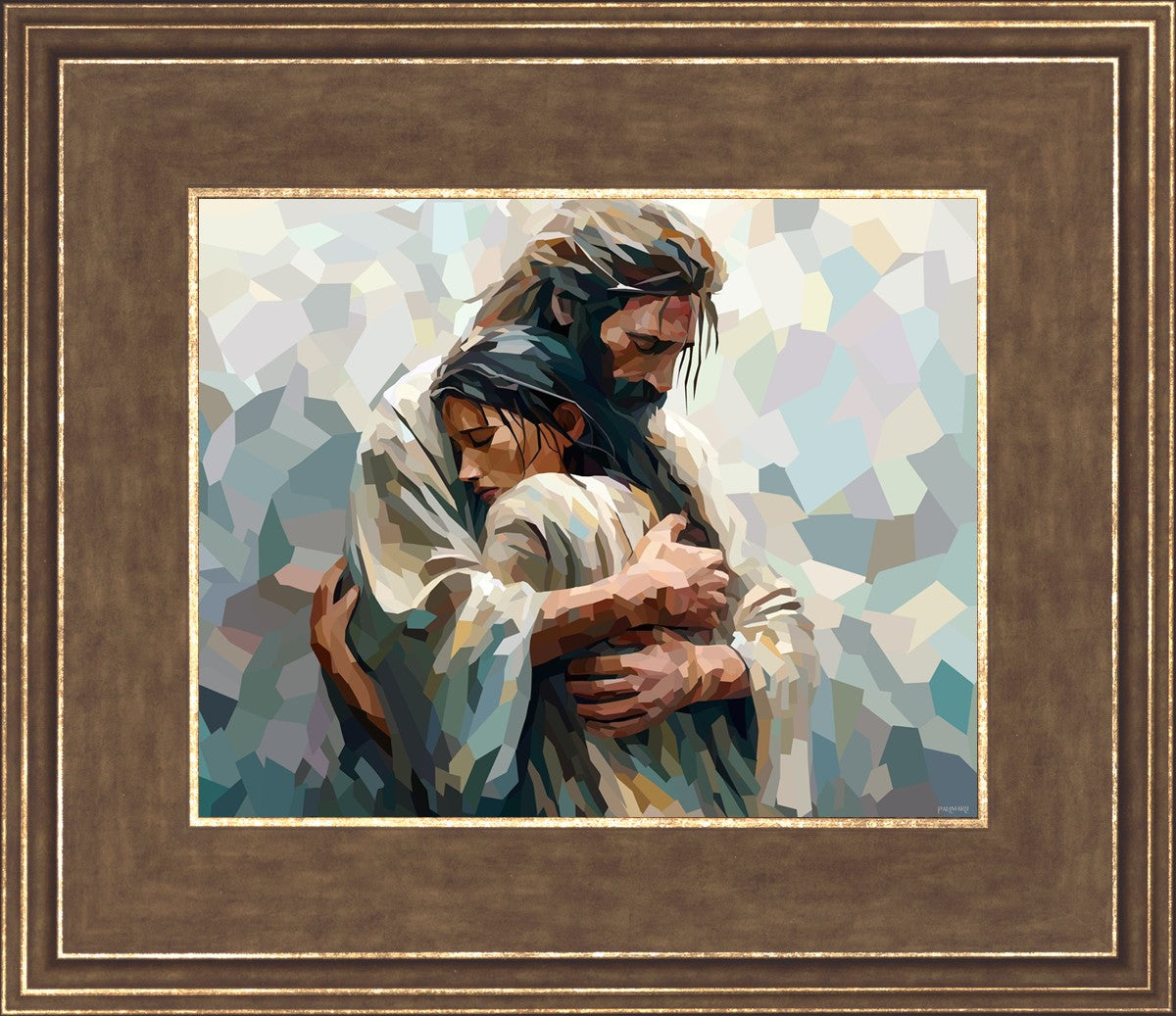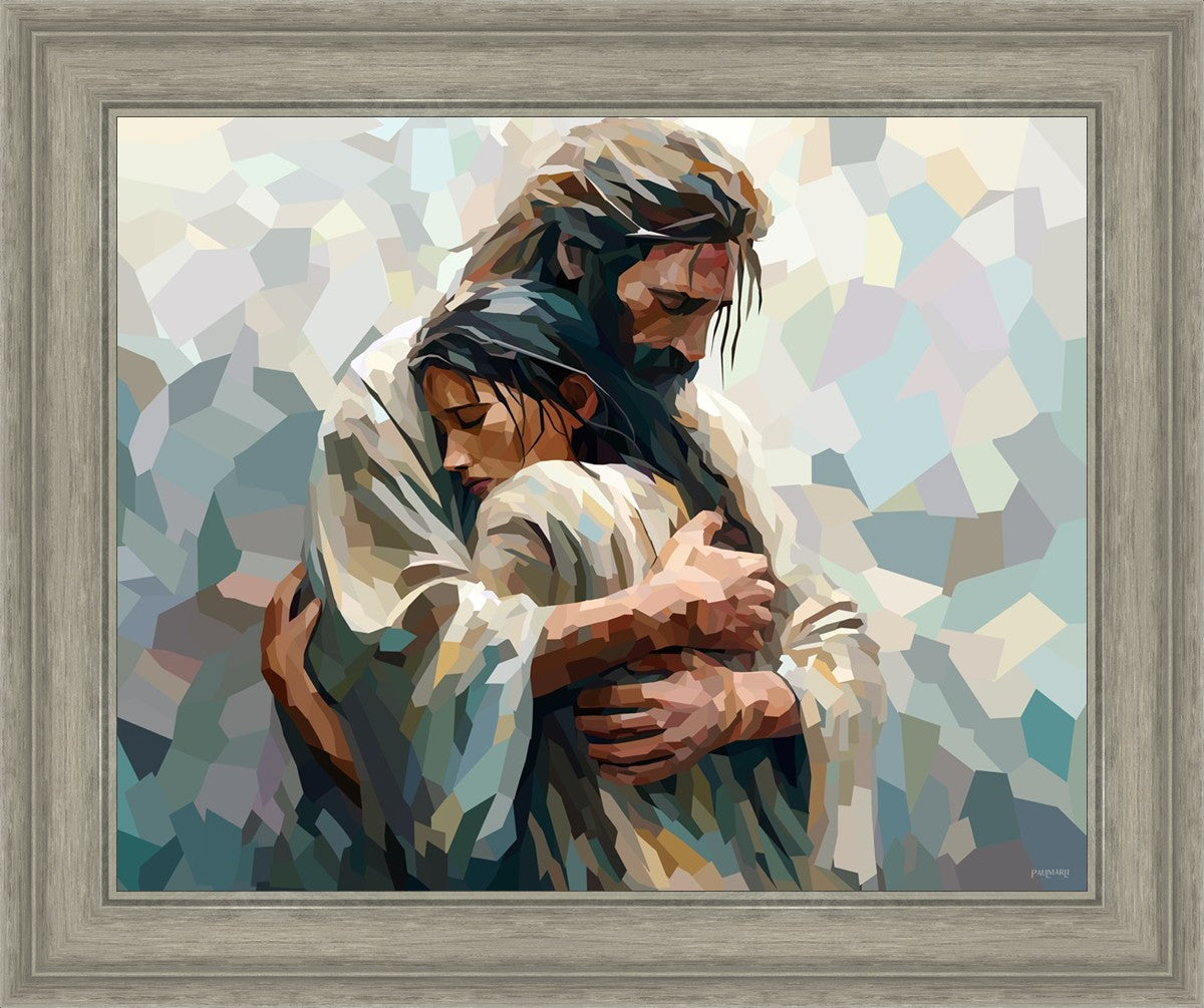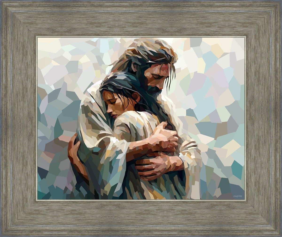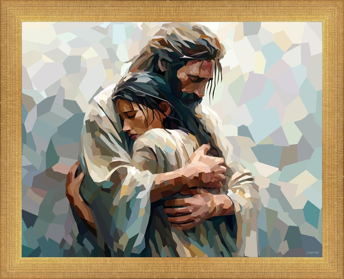 In this particular piece, a woman is embraced by Christ who not only perfectly understands, but perfectly feels every experience (generic or unique) that she has felt.