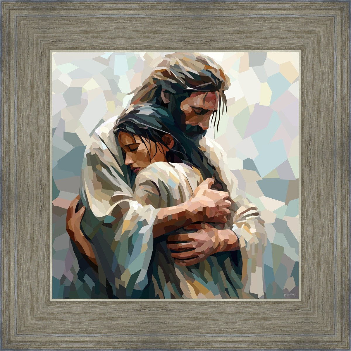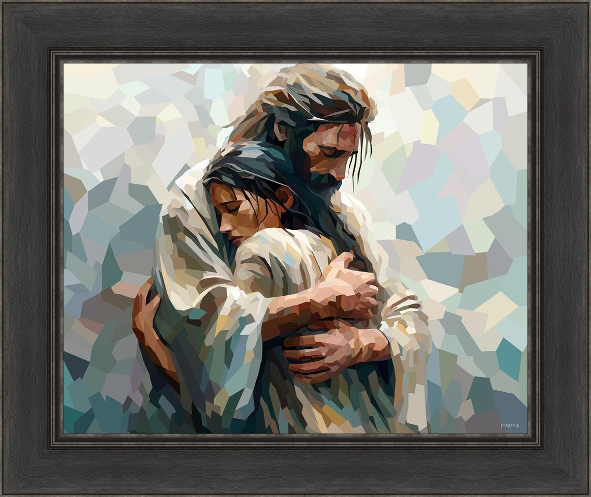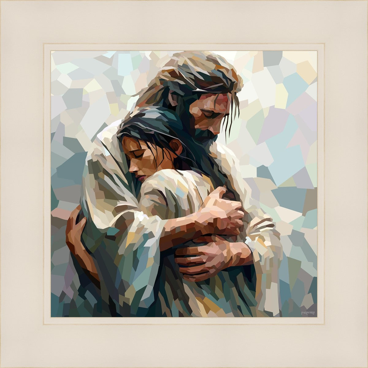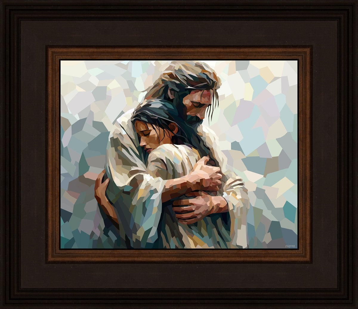 In this particular piece, a woman is embraced by Christ who not only perfectly understands, but perfectly feels every experience (generic or unique) that she has felt.