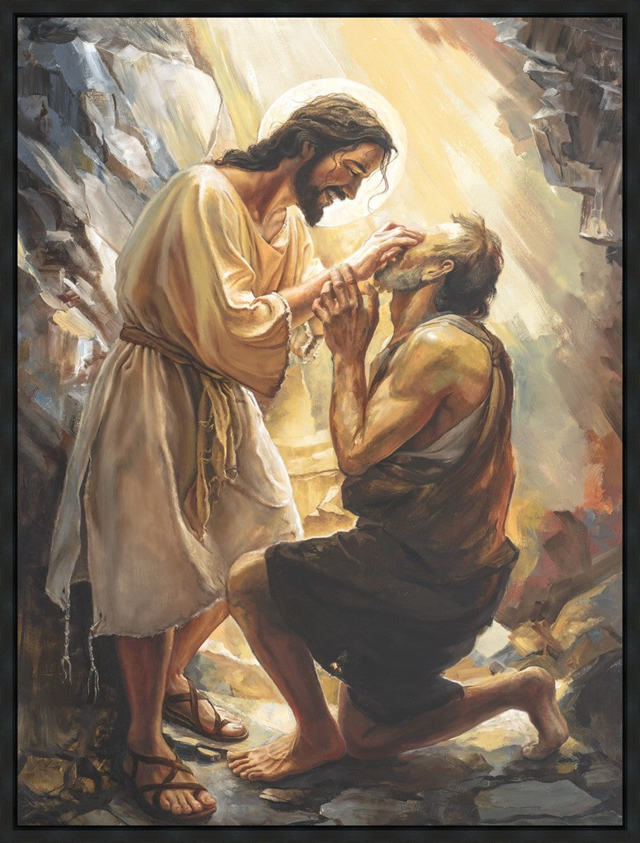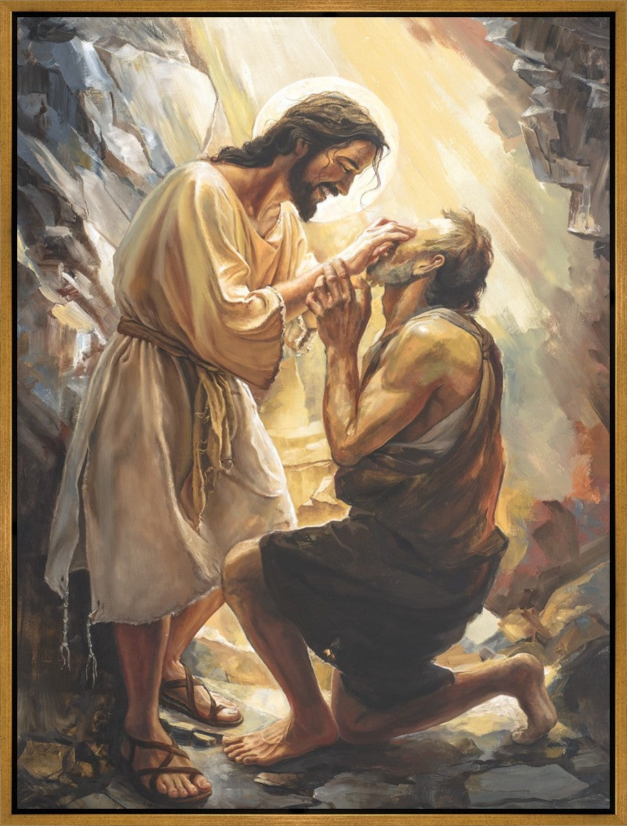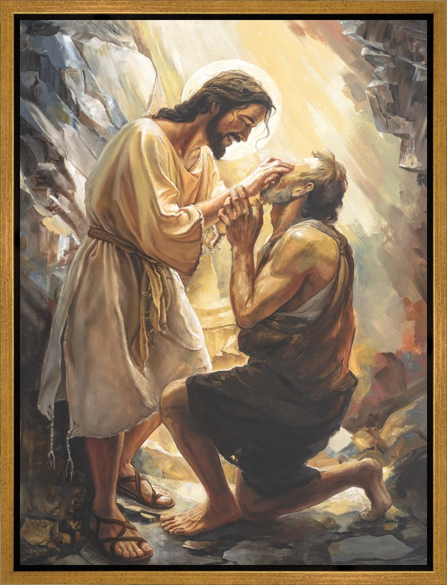 HEALED captures the profound moment when Christ restores sight to a blind man, symbolizing His unparalleled ability to bring clarity and redemption. This painting is not only a portrayal of physical healing but also a deeply personal reflection of my own journey. Before finding faith, I grappled with addiction for over a decade, experiencing a spiritual blindness that kept me distant from truth and honesty. Through my conversion to Christianity, I discovered the love and healing power of Christ, who, in His mercy, lifted the burdens that had weighed on me. This artwork stands as a testament to the transformation that is possible when we surrender our struggles to Him, acknowledging that true freedom can only be found in His embrace.