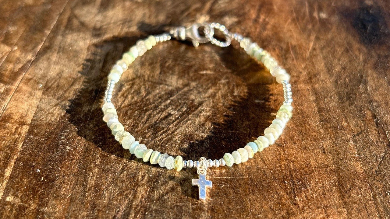 I love the flashes of color light creates as it passes through Opal. I like to think of this as the energy that helps to release and balance our emotions and encourages healing, peace and love. The number seven is referenced 700 times in the Bible.The prophet Elisha uses the number seven when he instructs Naaman, the leper, to bathe in the Jordan River seven times to be healed. The three sets of seven sterling silver beads reminds us of the seven healing miracles that Jesus performed on the Sabbath, or, the seventh day of the week.