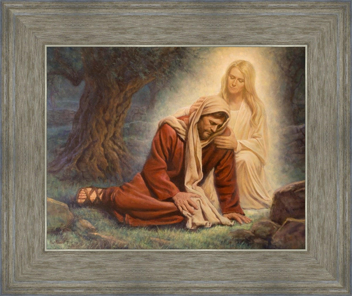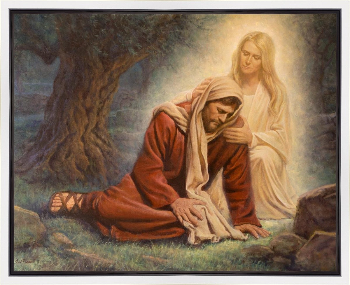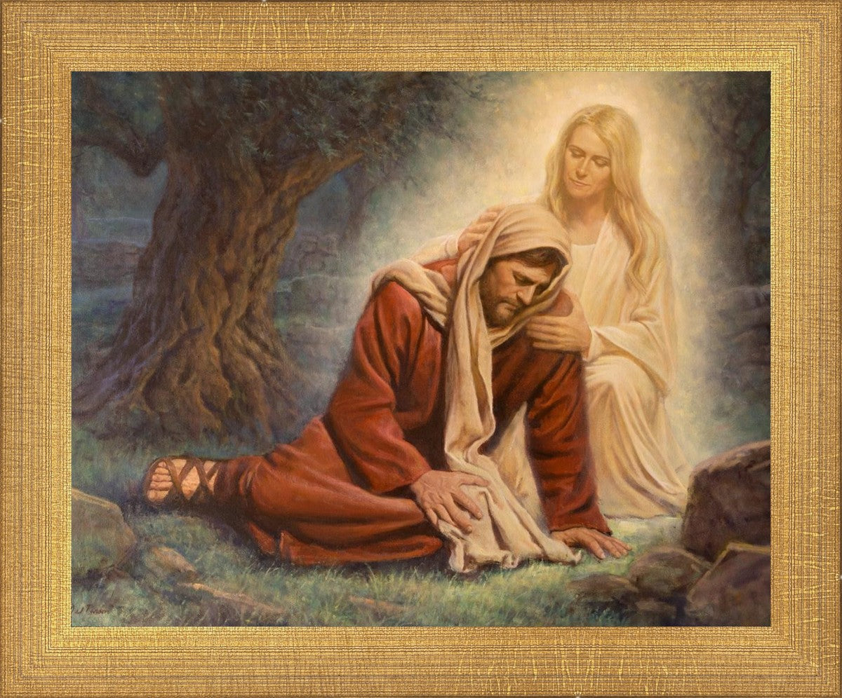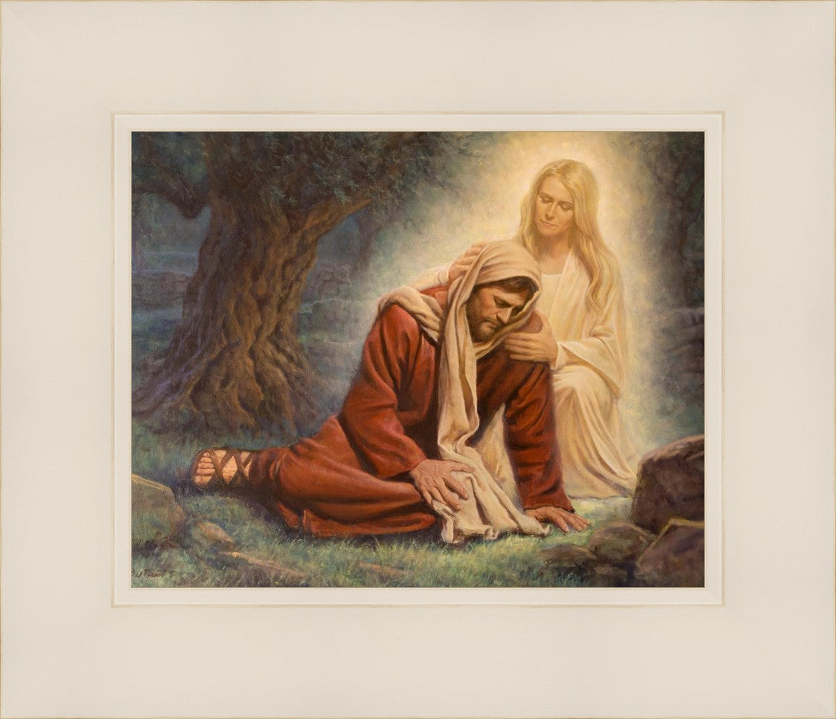 When I saw this picture advertised here I received such a strong feeling of pure love that it brought me to tears. I HAD to buy it and I am loving having in my home. I had never thought about Heavenly Mother being that angel who comforted the Savior but it just feels right somehow.