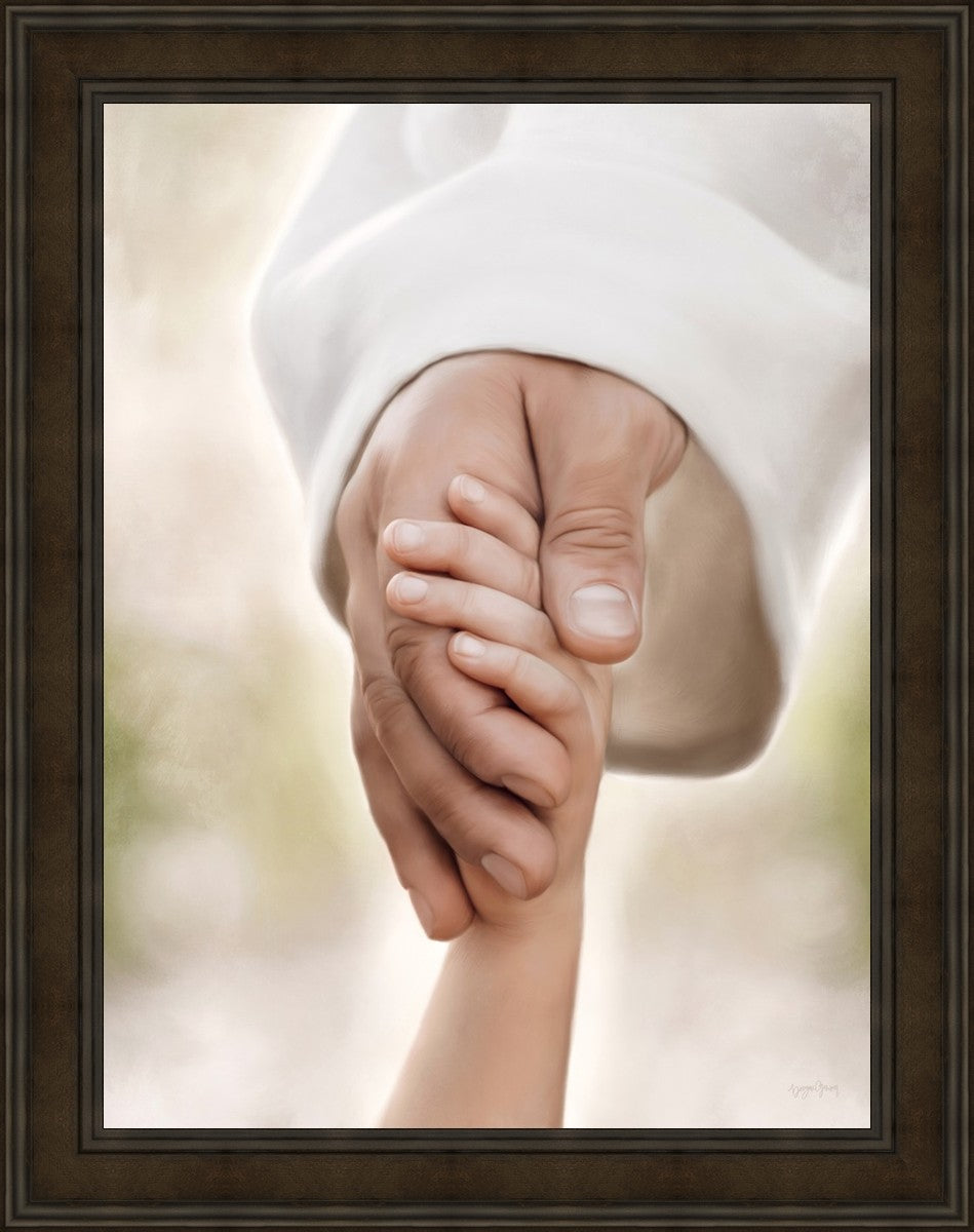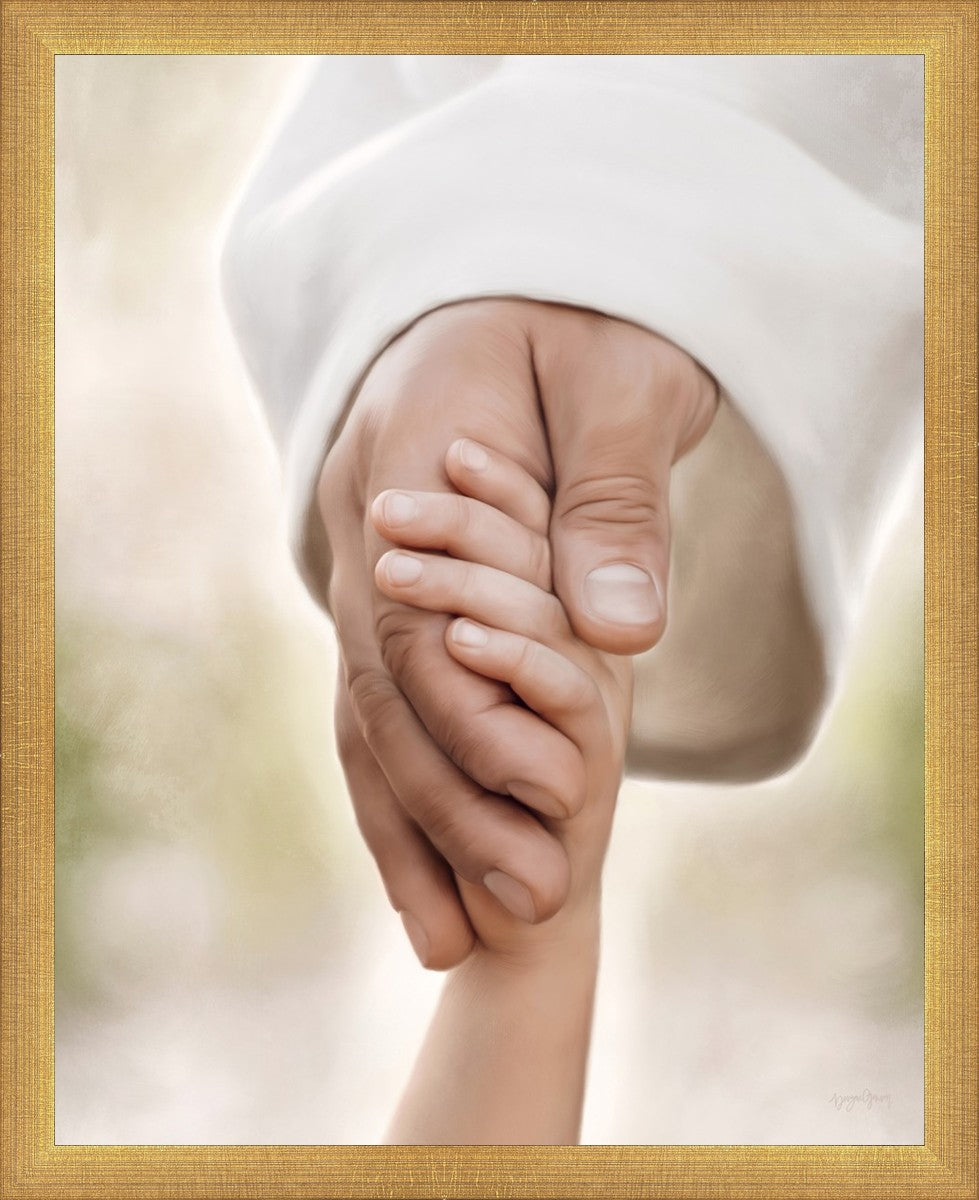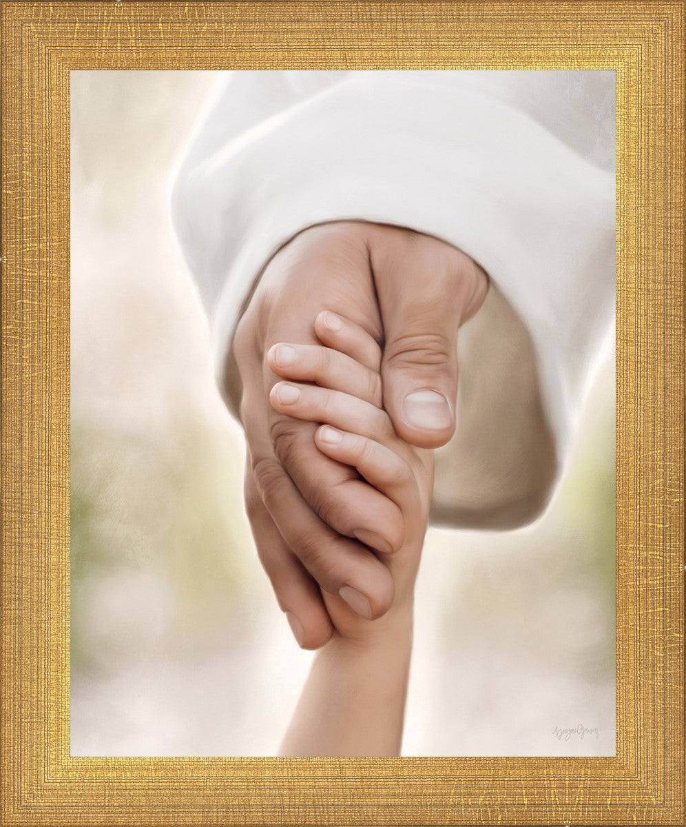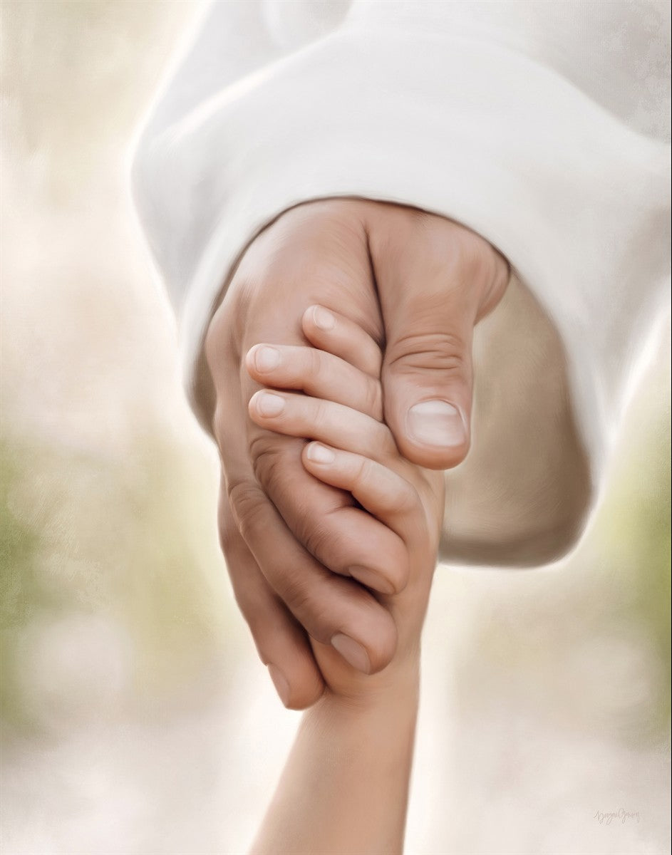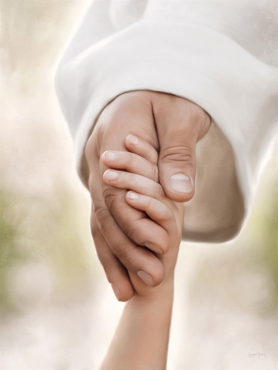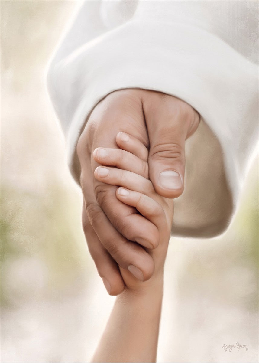 A beautiful painted portrait of the Savior holding a little child's hand as they walk.