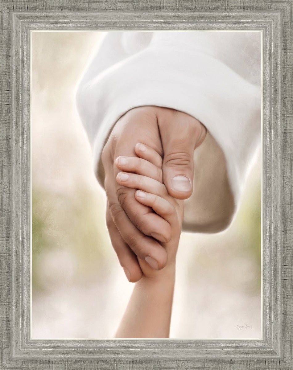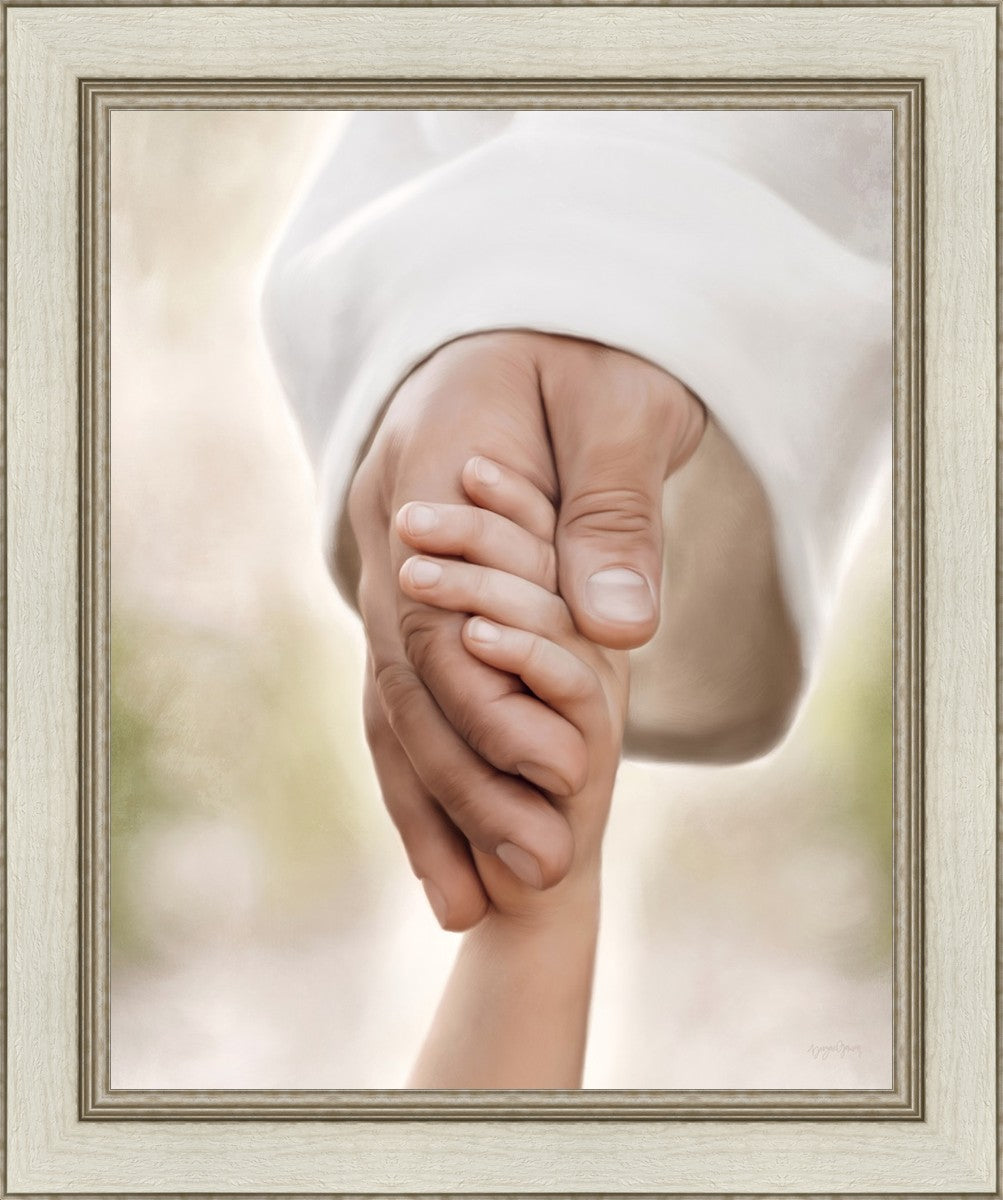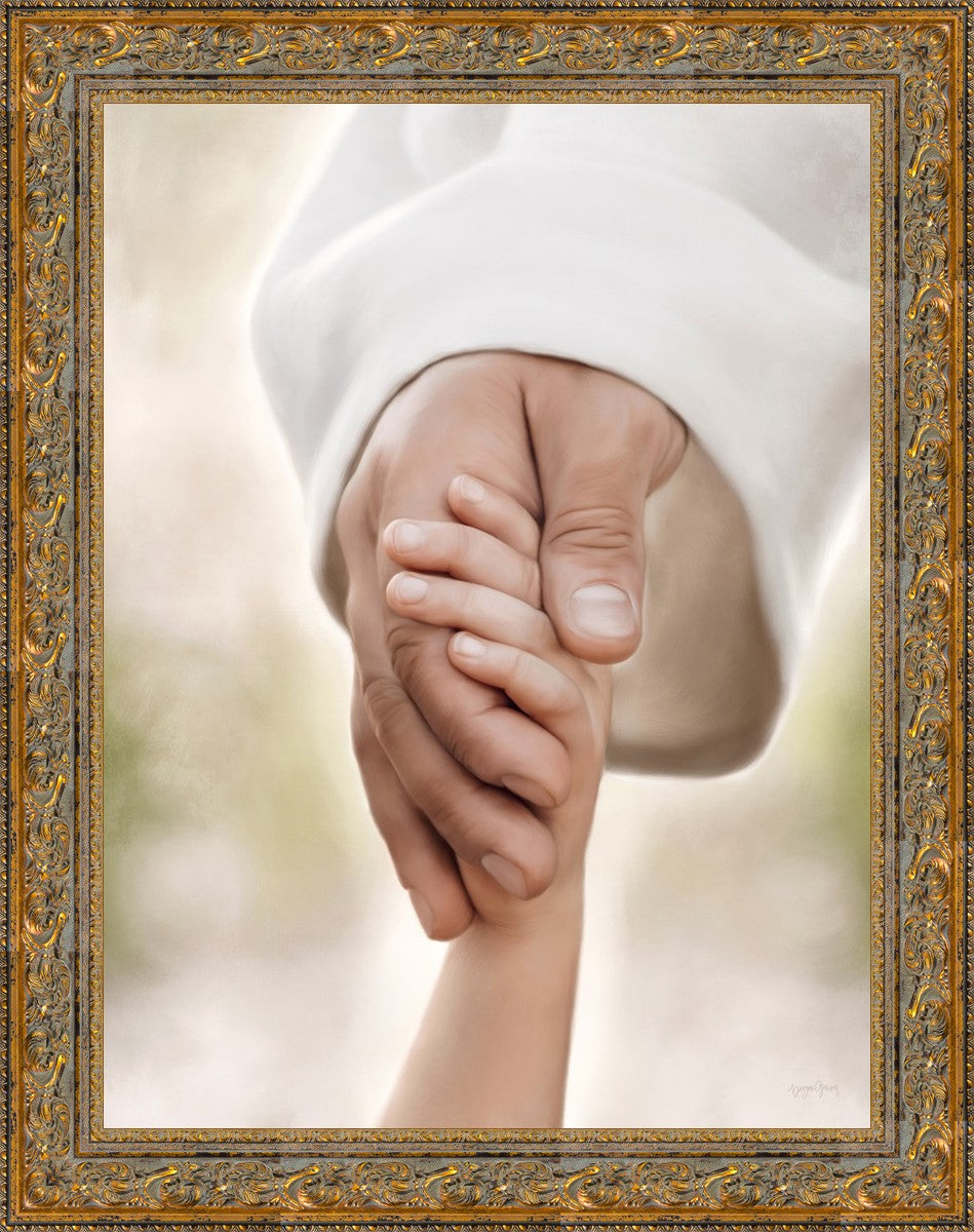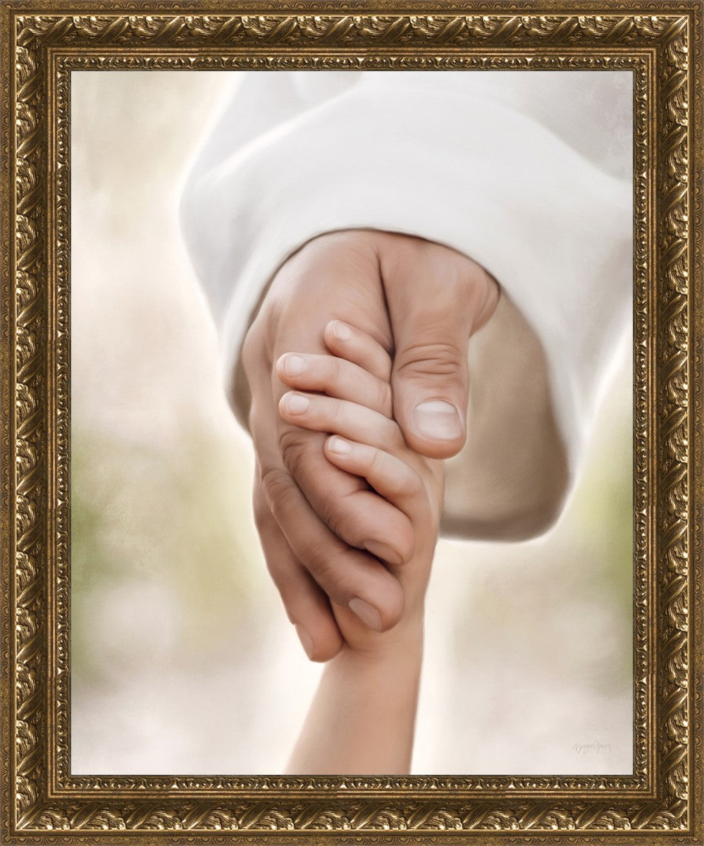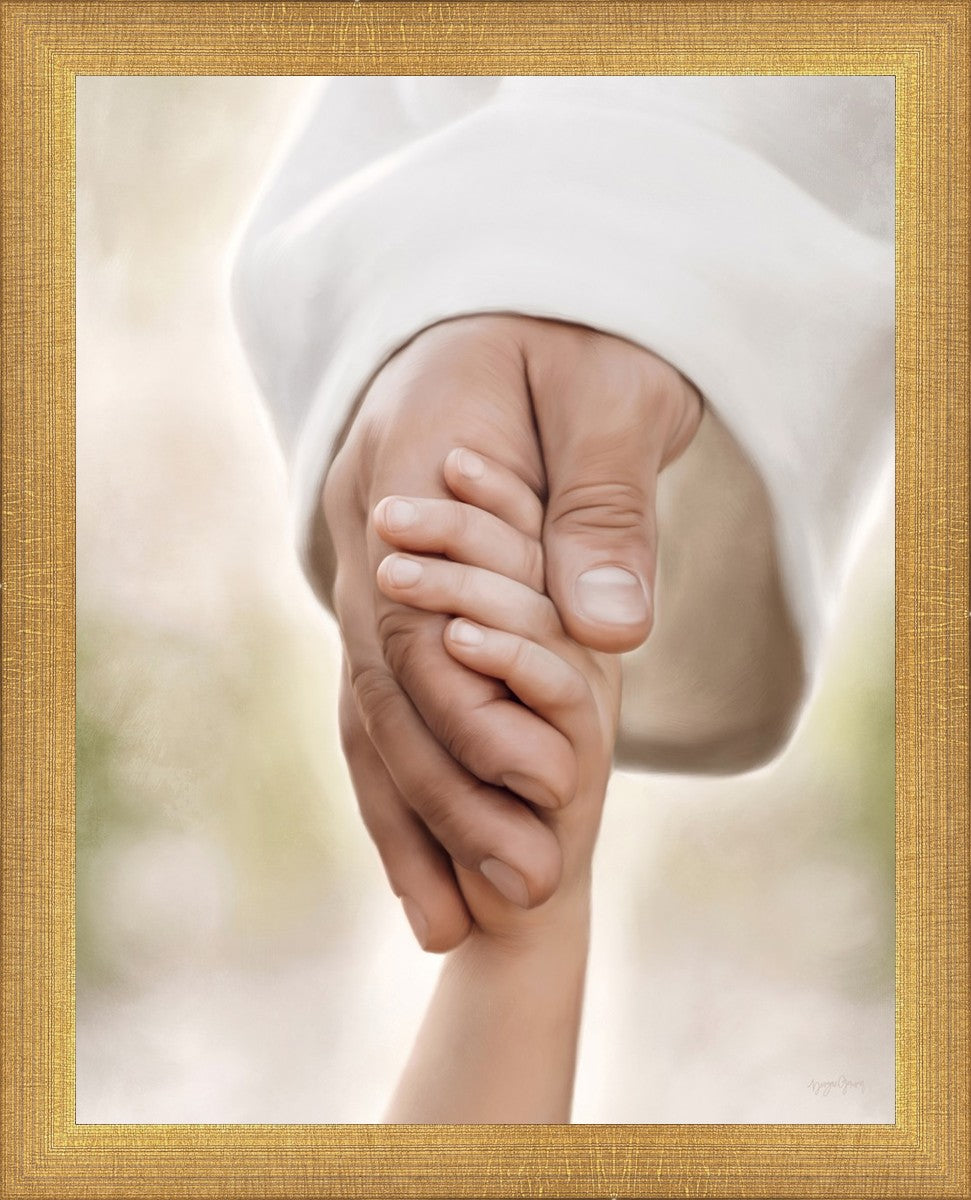 A beautiful painted portrait of the Savior holding a little child's hand as they walk.