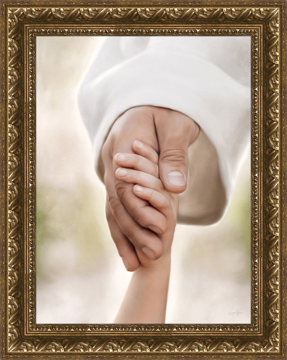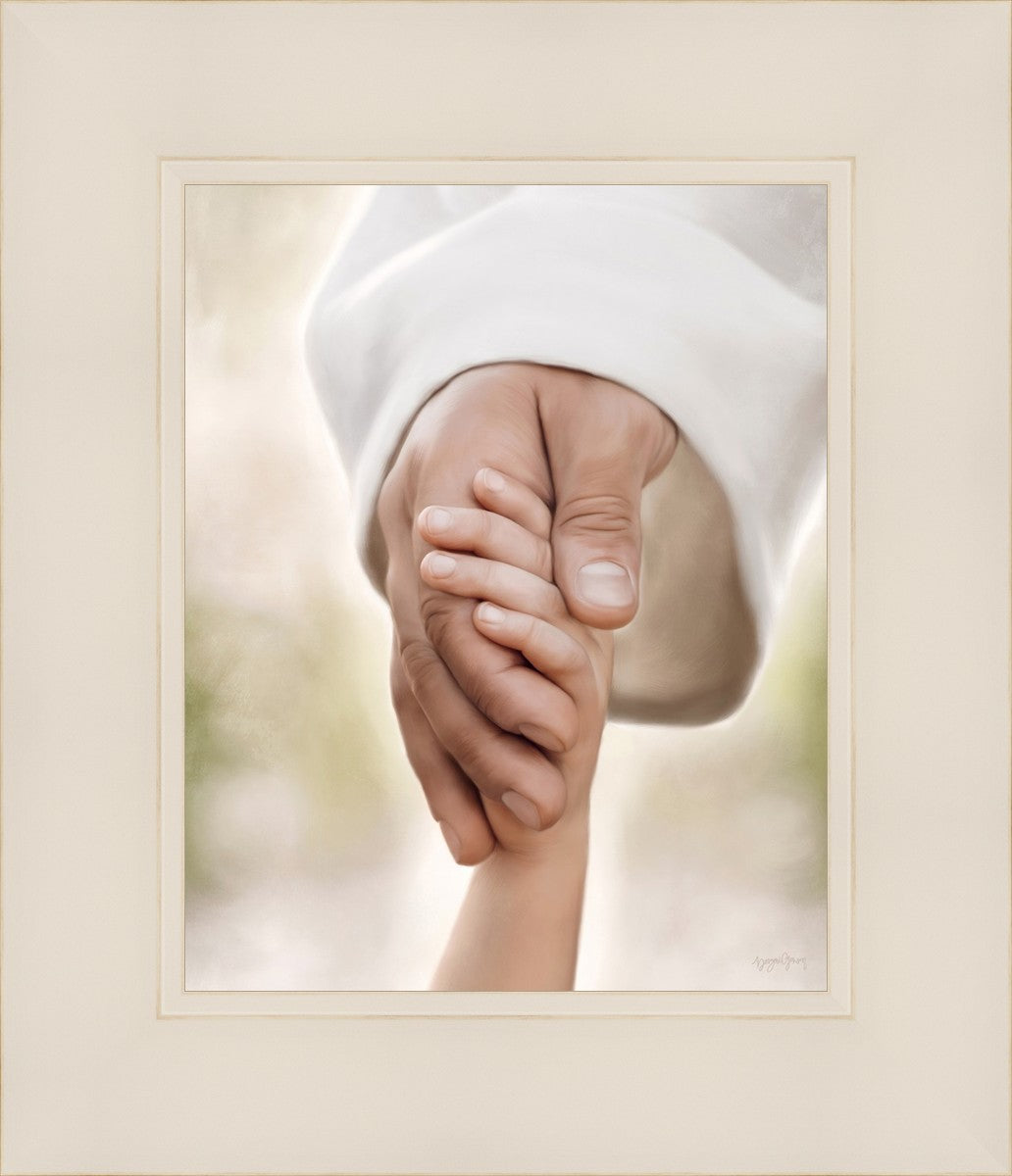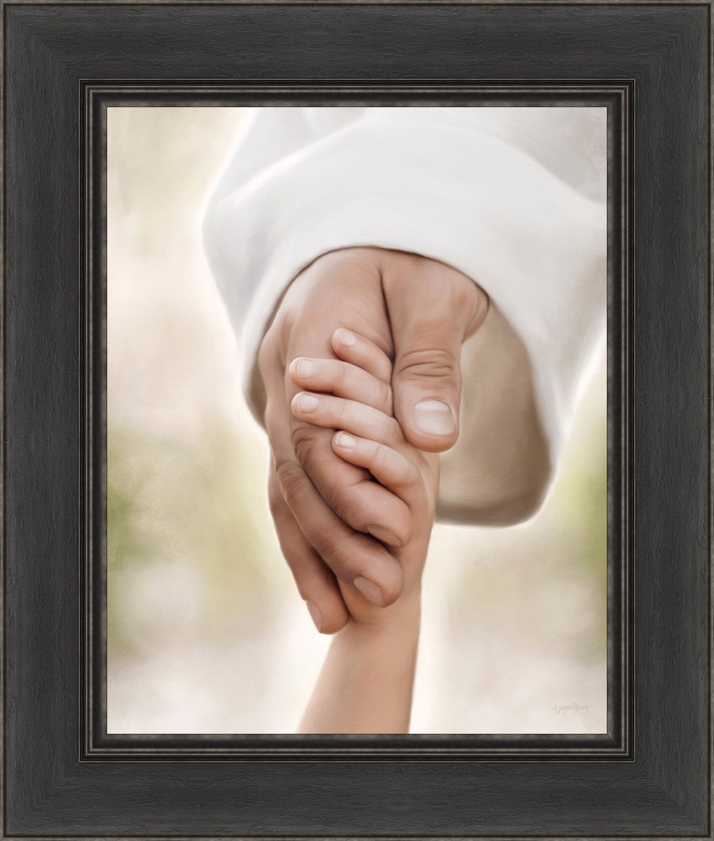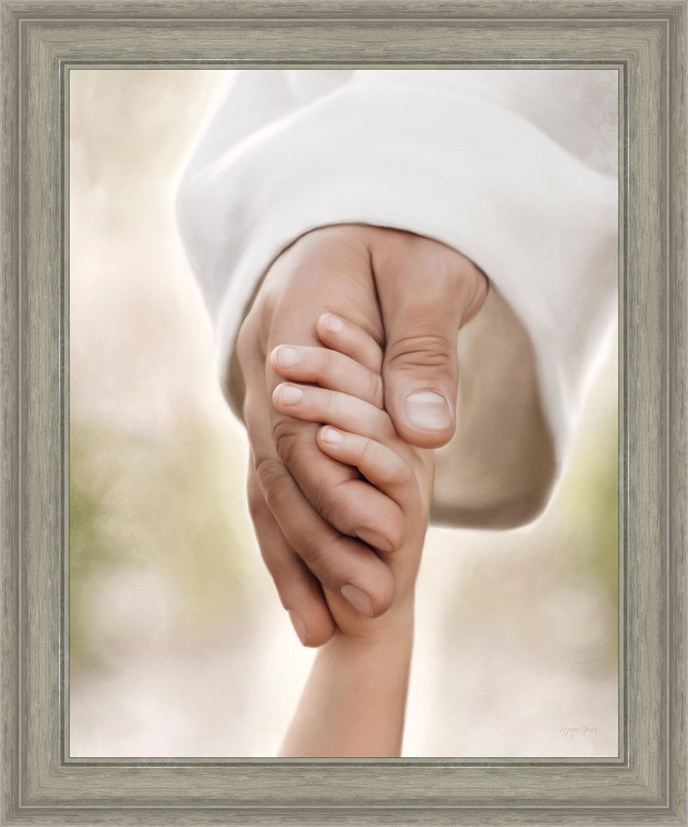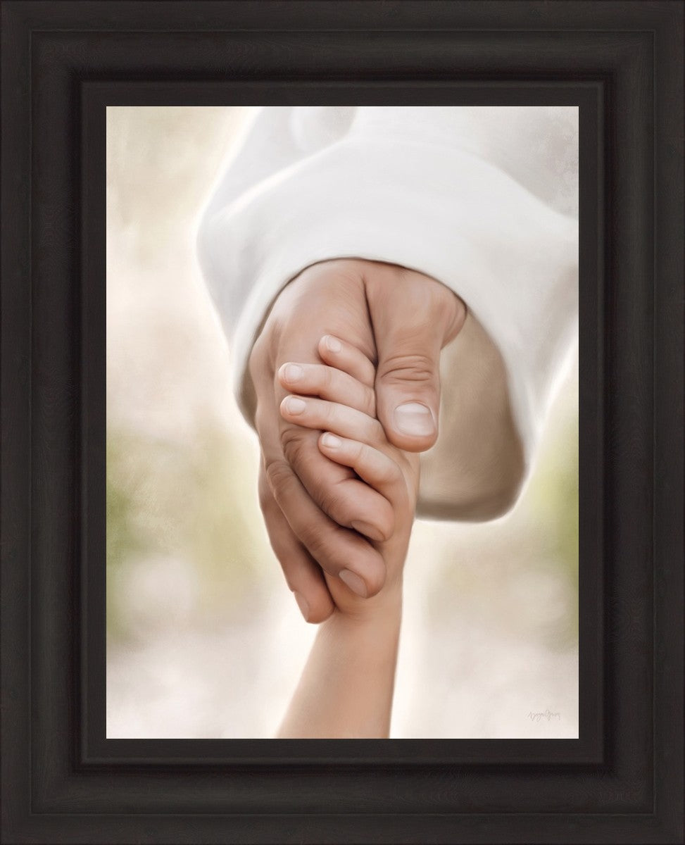 A beautiful painted portrait of the Savior holding a little child's hand as they walk.