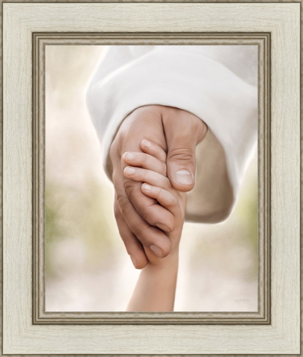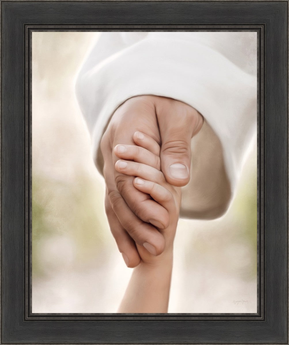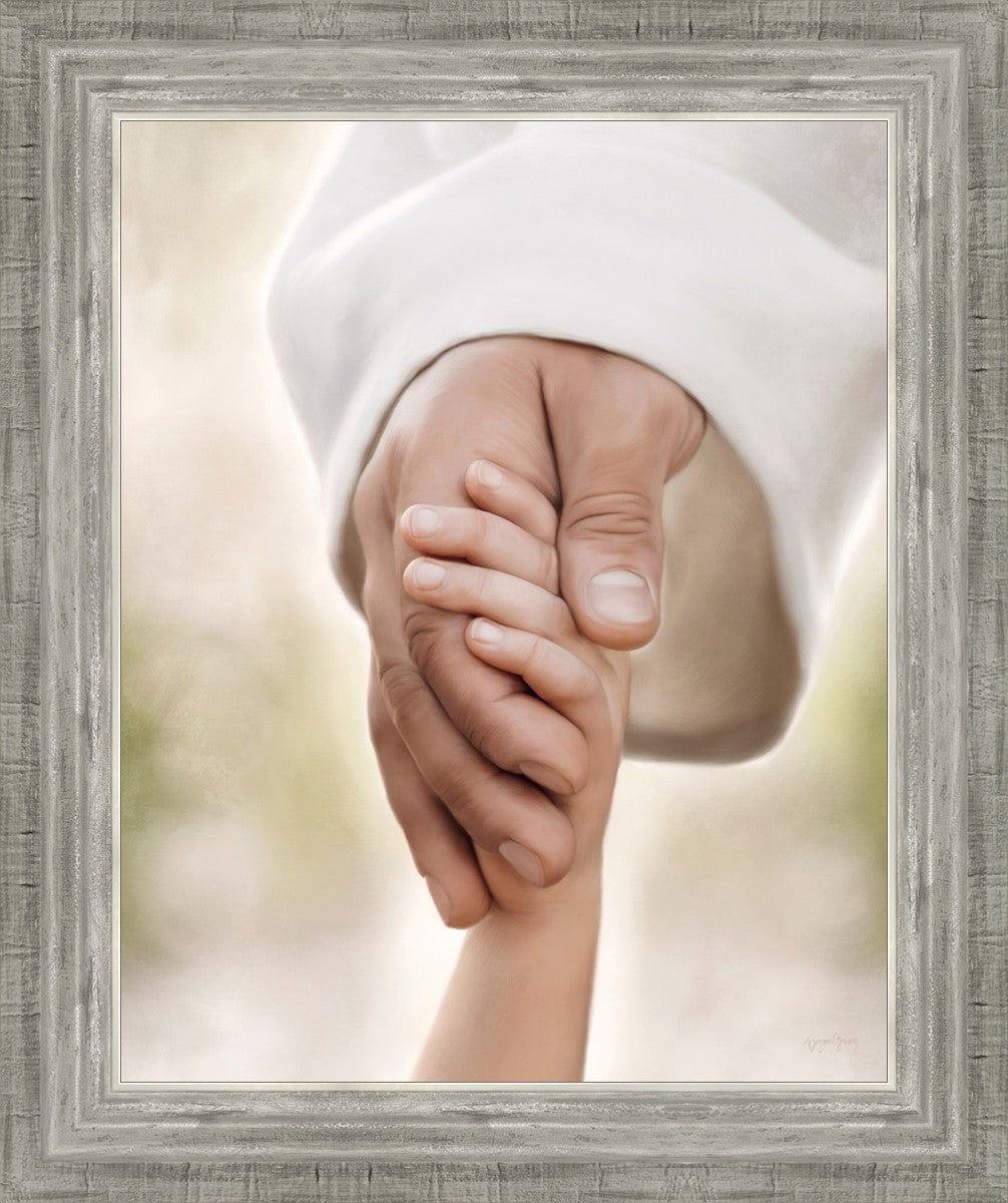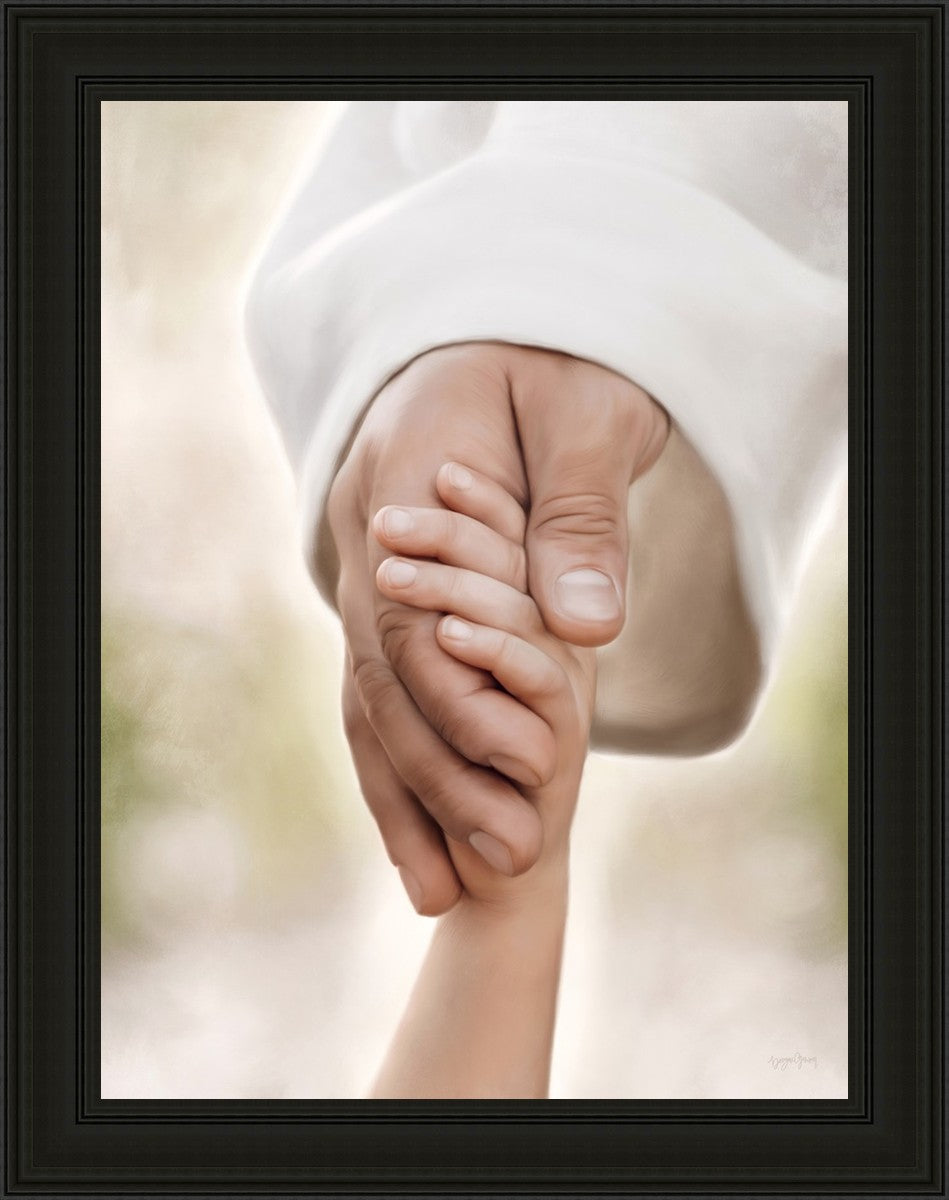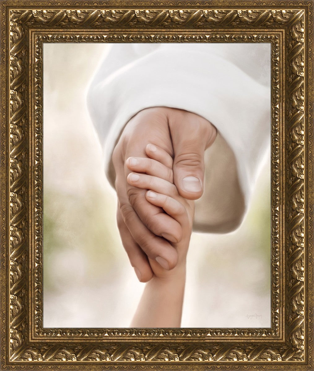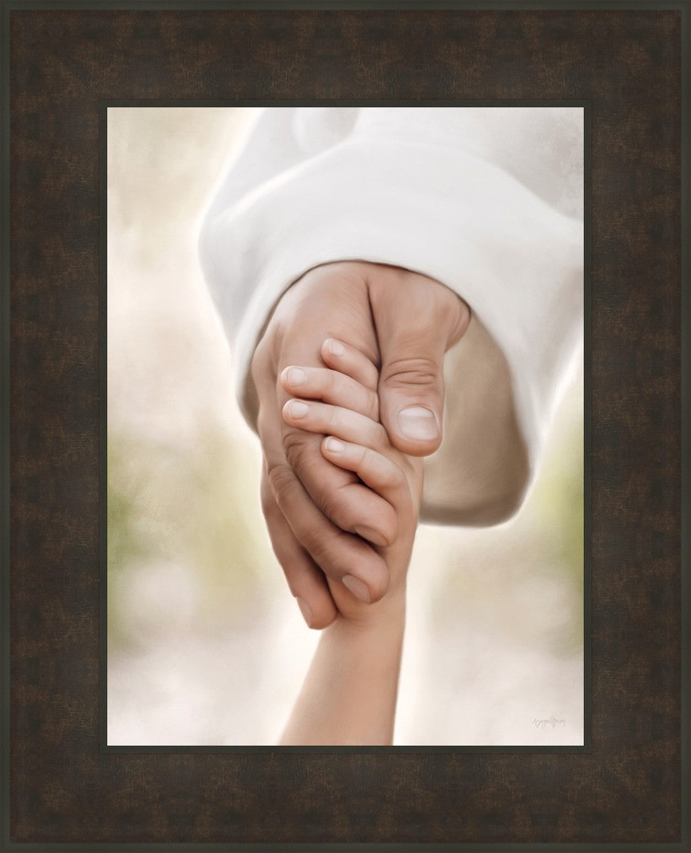 A beautiful painted portrait of the Savior holding a little child's hand as they walk.