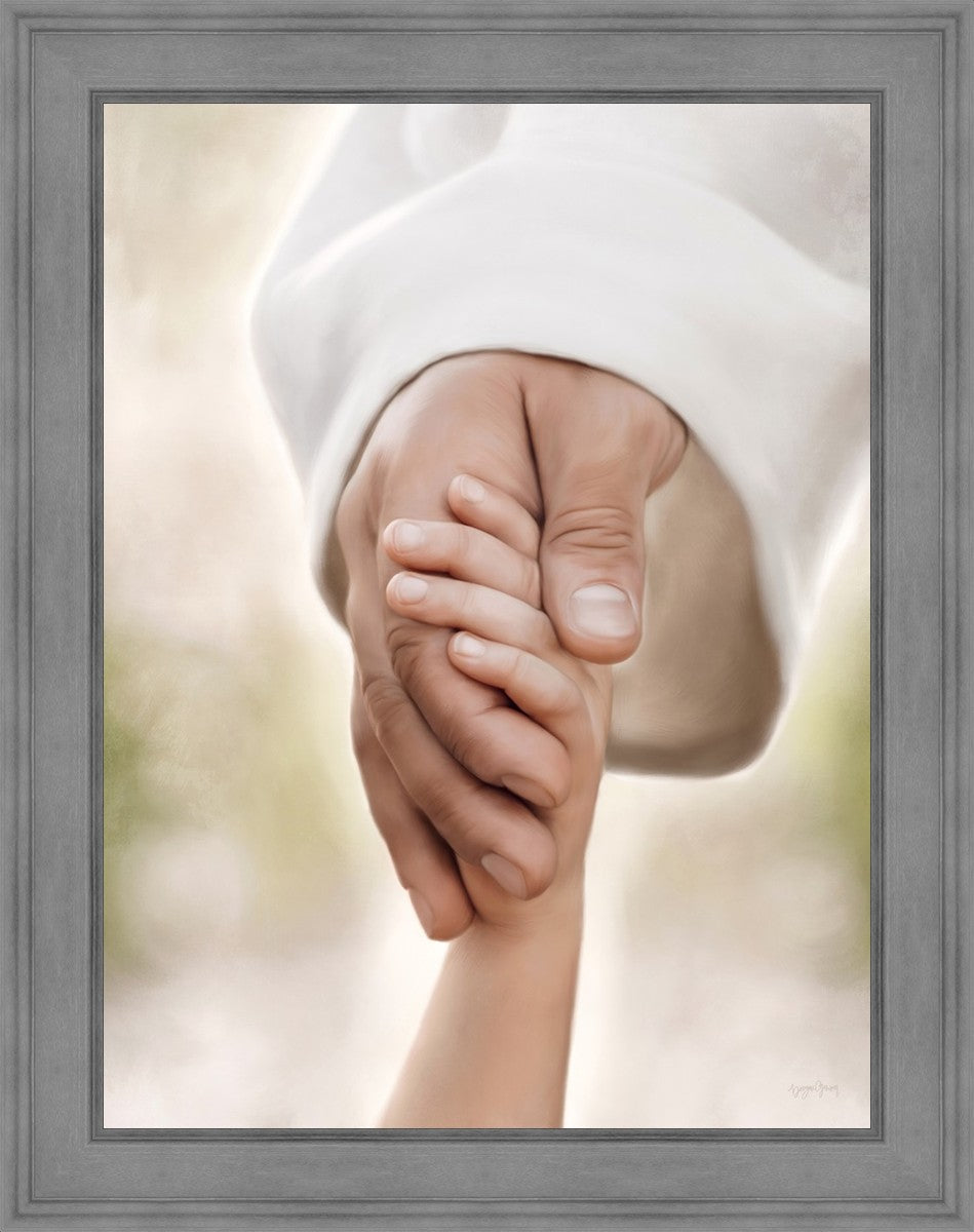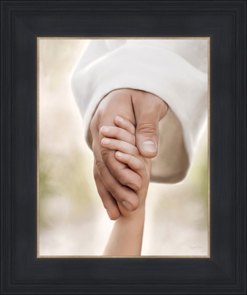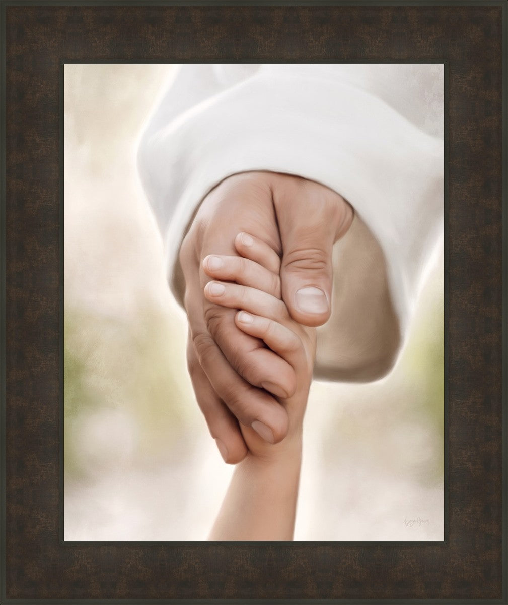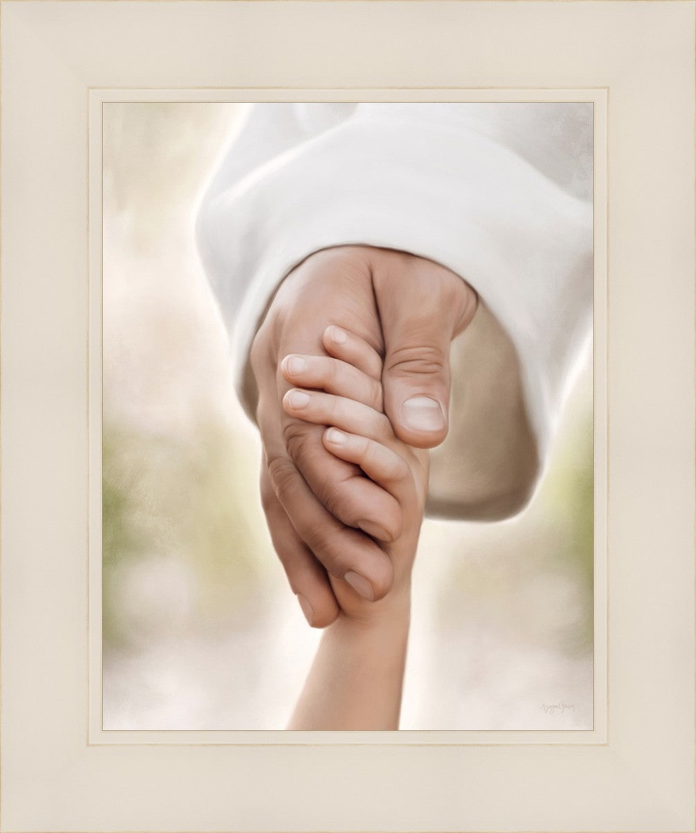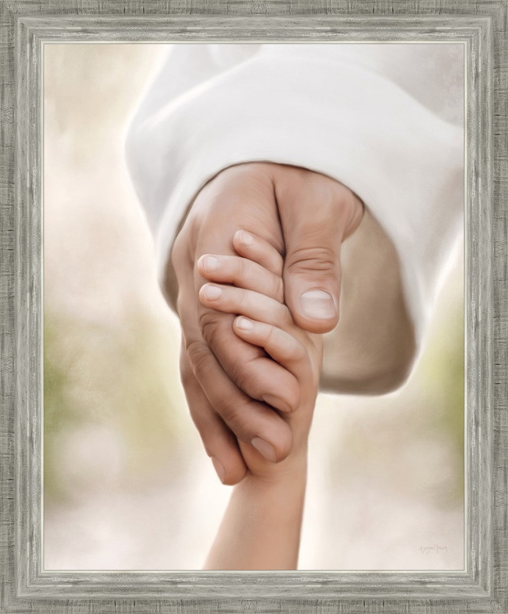 A beautiful painted portrait of the Savior holding a little child's hand as they walk.