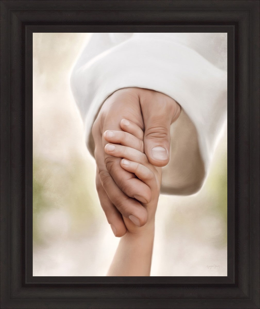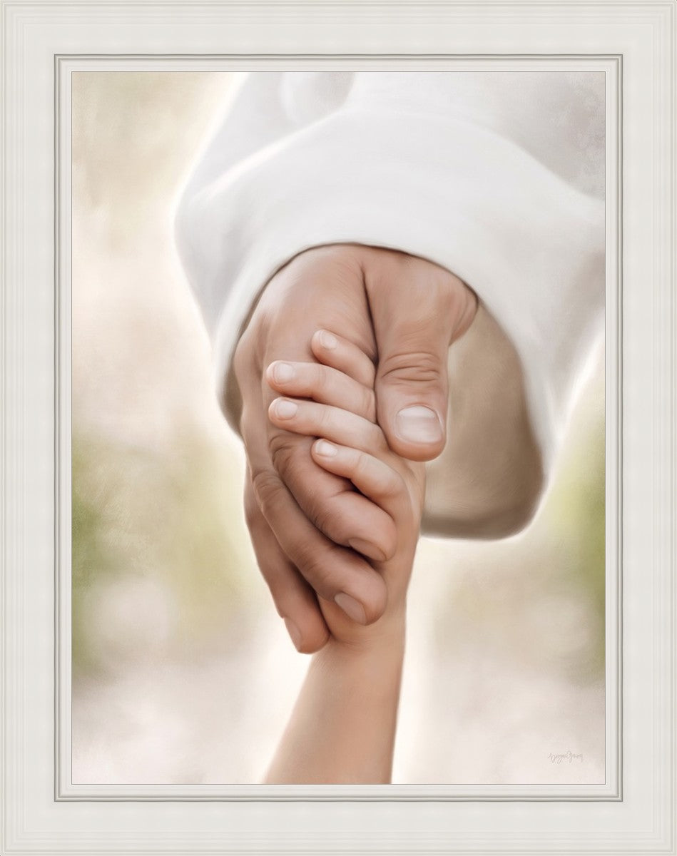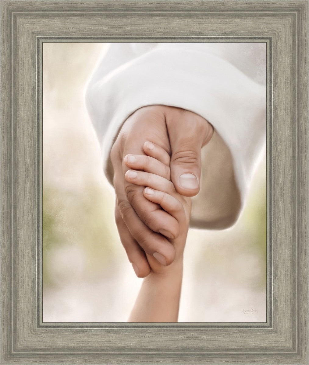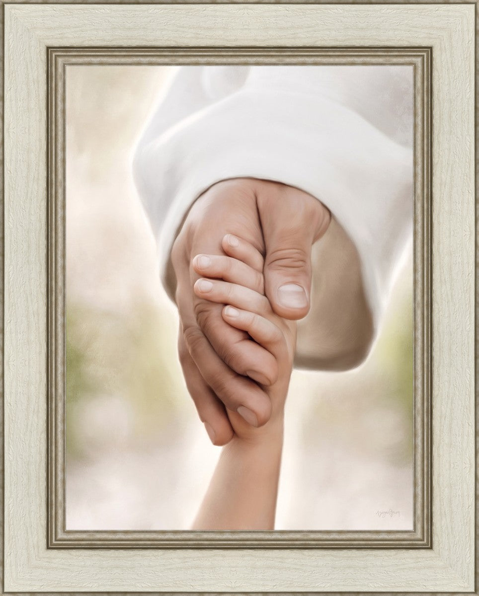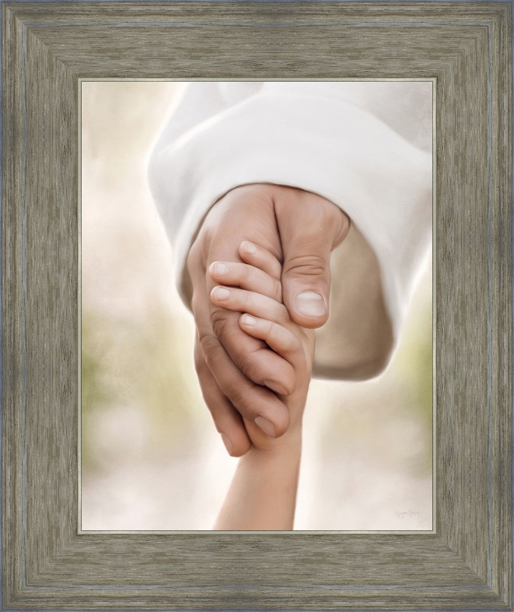 A beautiful painted portrait of the Savior holding a little child's hand as they walk.