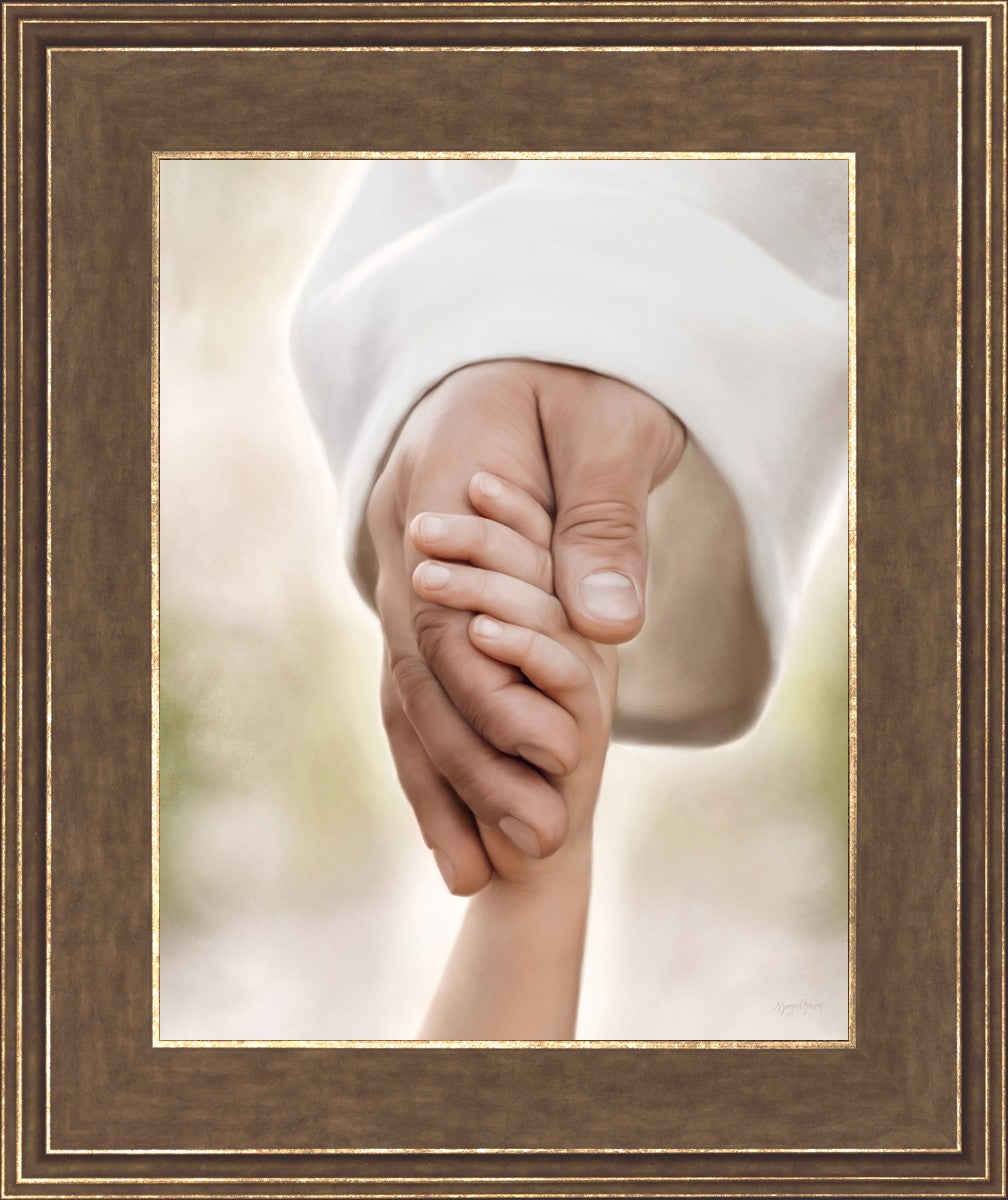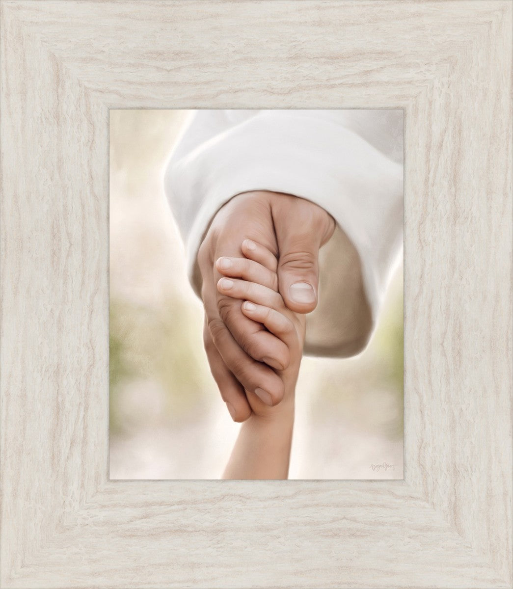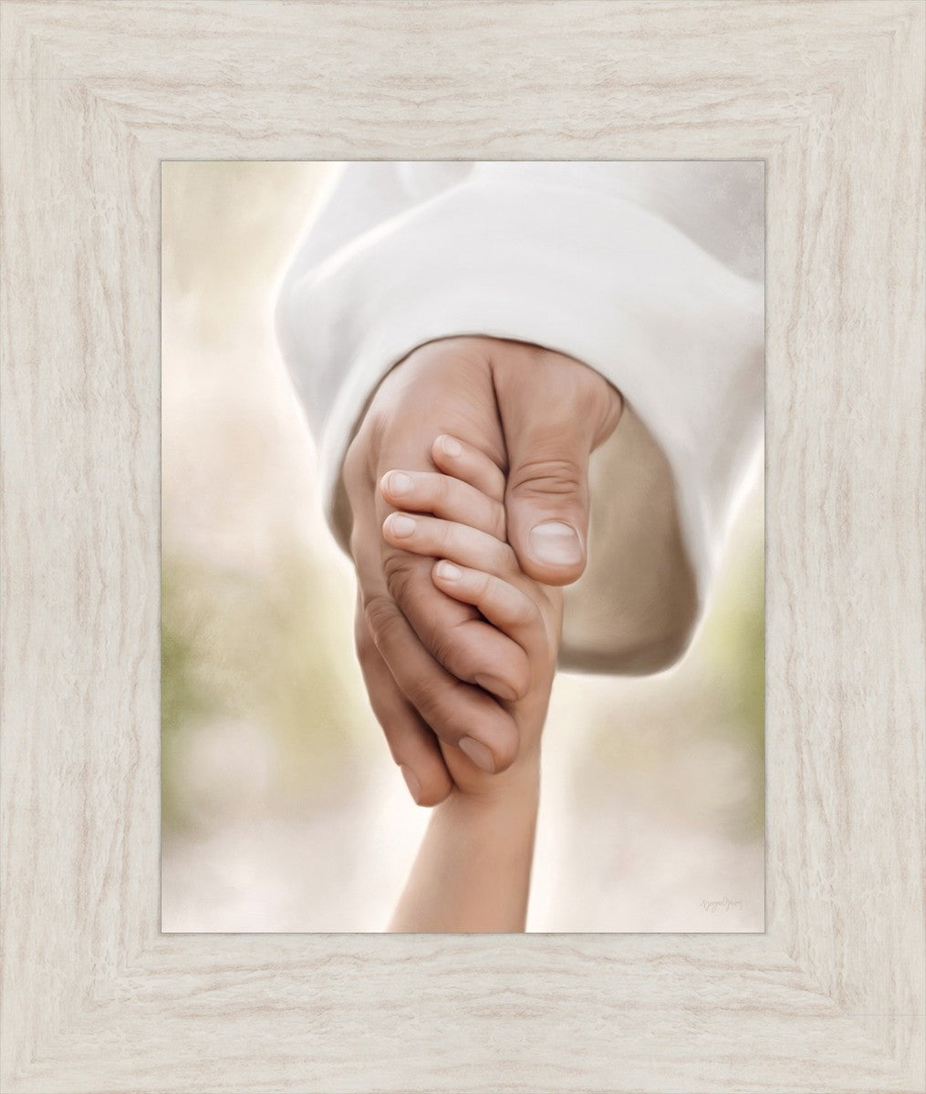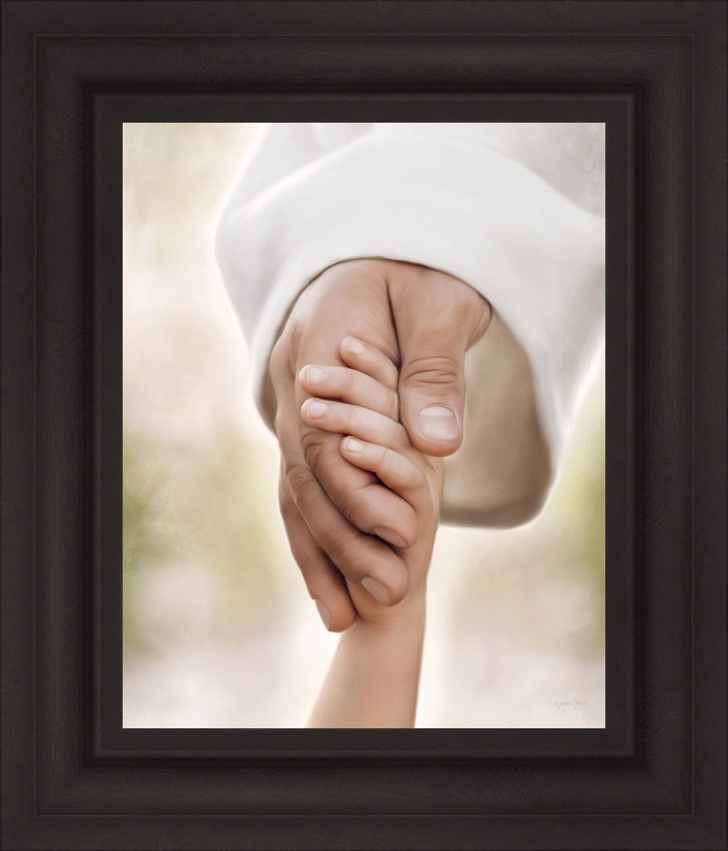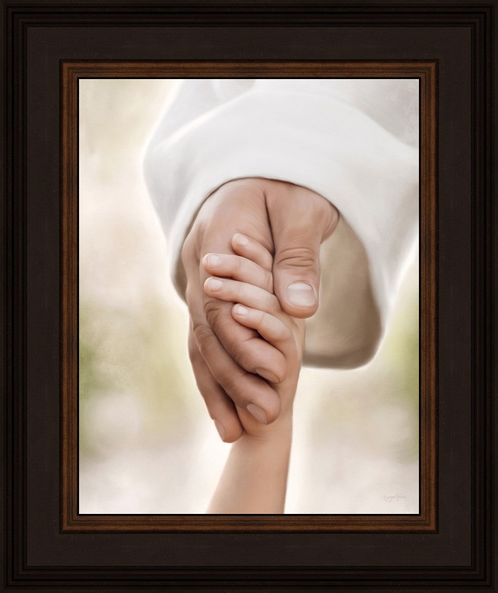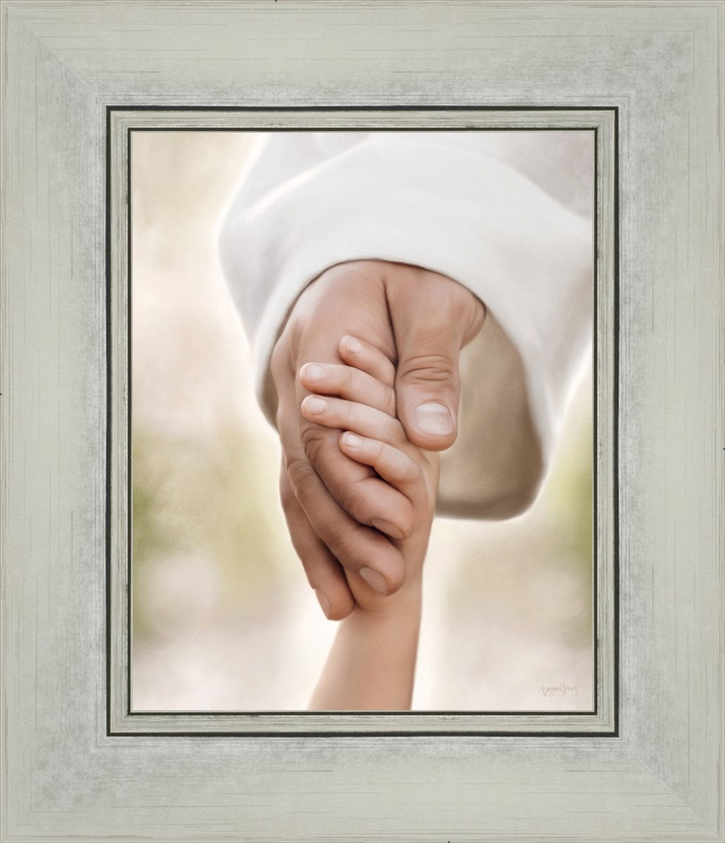 A beautiful painted portrait of the Savior holding a little child's hand as they walk.