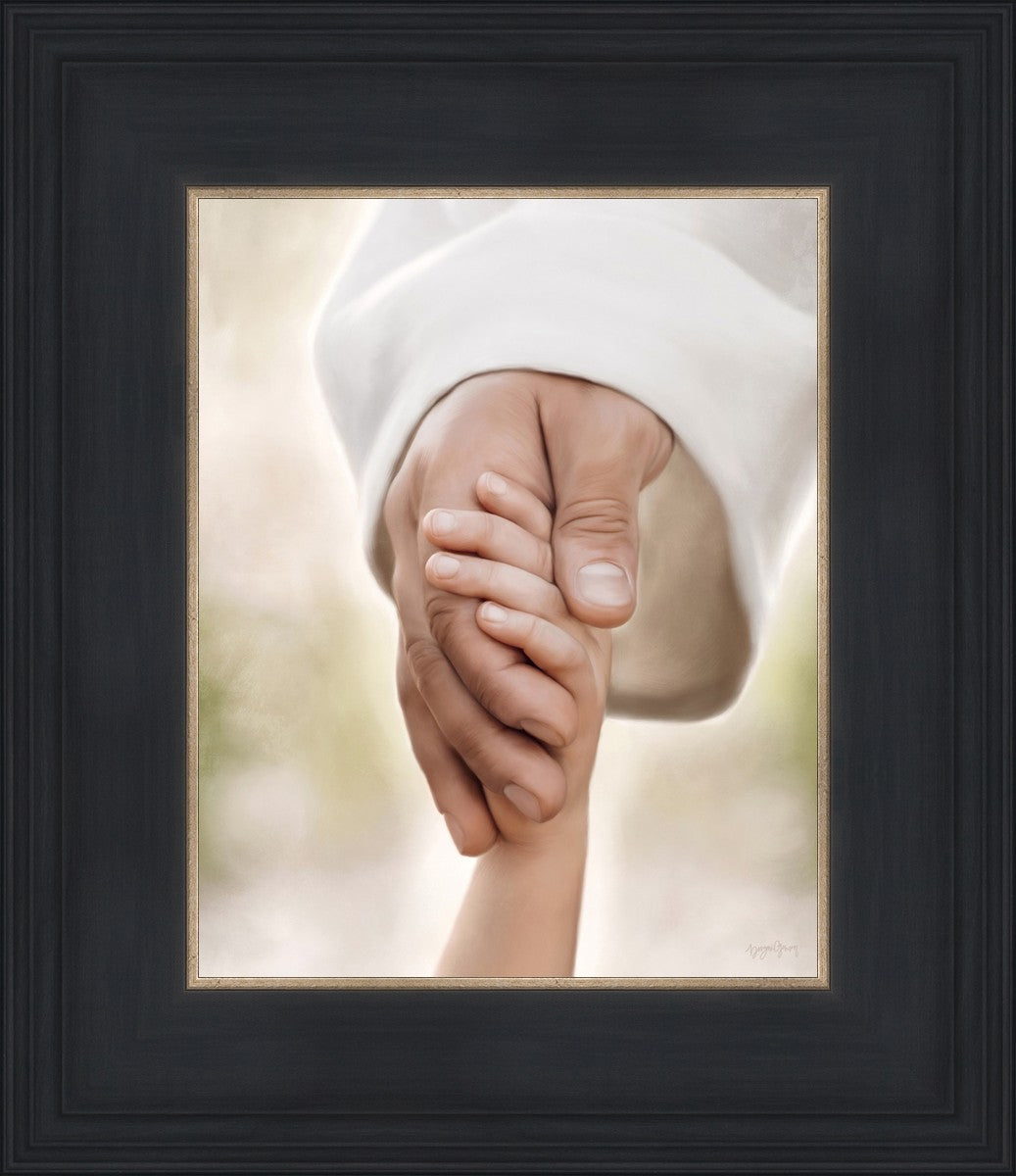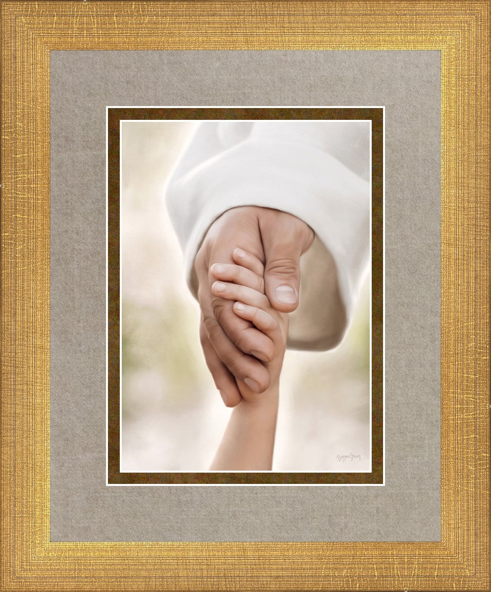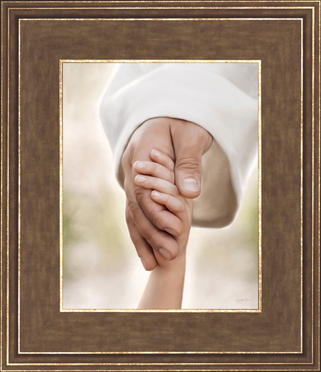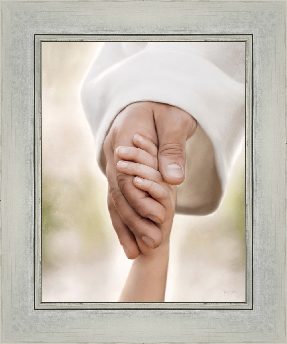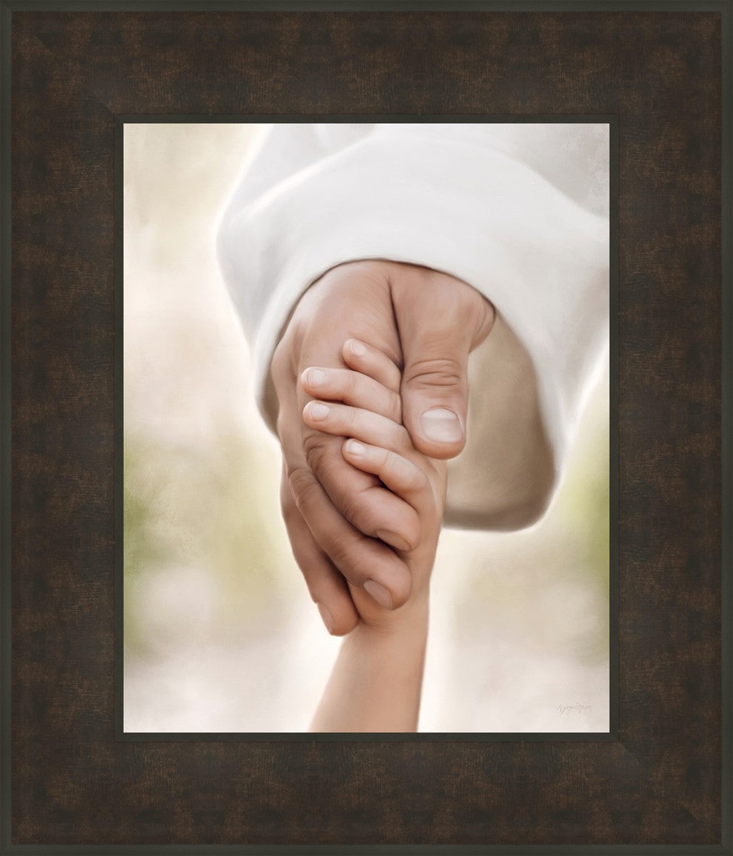 A beautiful painted portrait of the Savior holding a little child's hand as they walk.
